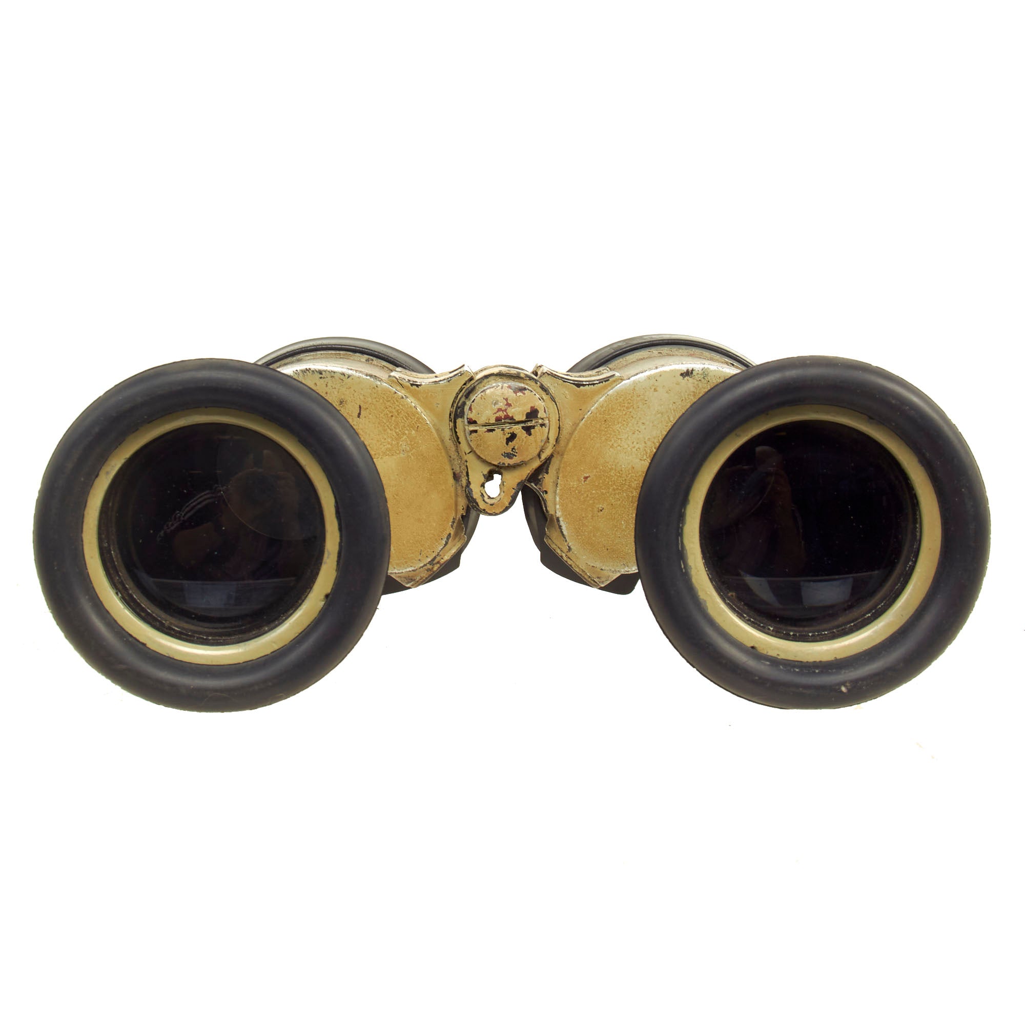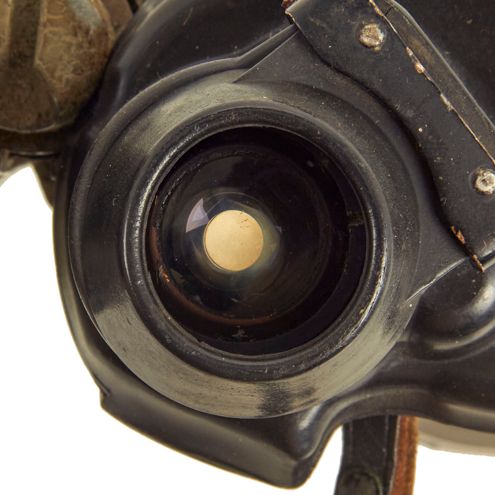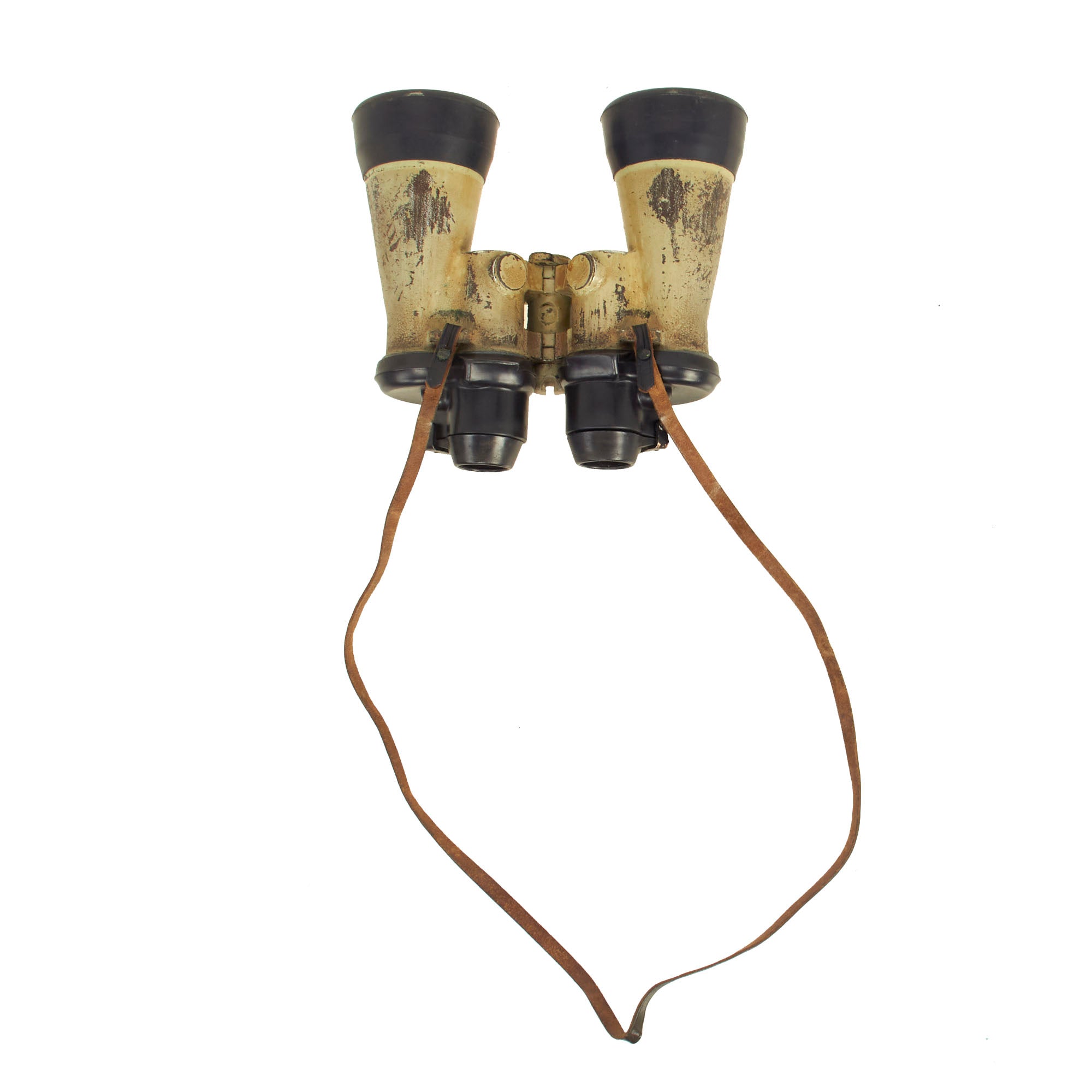 Original Item: Only One Available. This is a very good pair of extremely rare German WWII Kriegsmarine U-boat 7x50 binoculars, made by Carl Zeiss of Jena, a specialist lens maker, and one of the finest makers of the time. They are equipped with rubber fittings around the objective lenses though it does appear that these may have had more rubber pieces but were removed. Rubber fitted optics made them virtually impervious to moisture, possibly even if immersed in water for a short time, definitely a plus on a U-boat! As they normally have the rubber fittings, the eyepieces do not have bakelite cups, as they are part of the rubber molding.