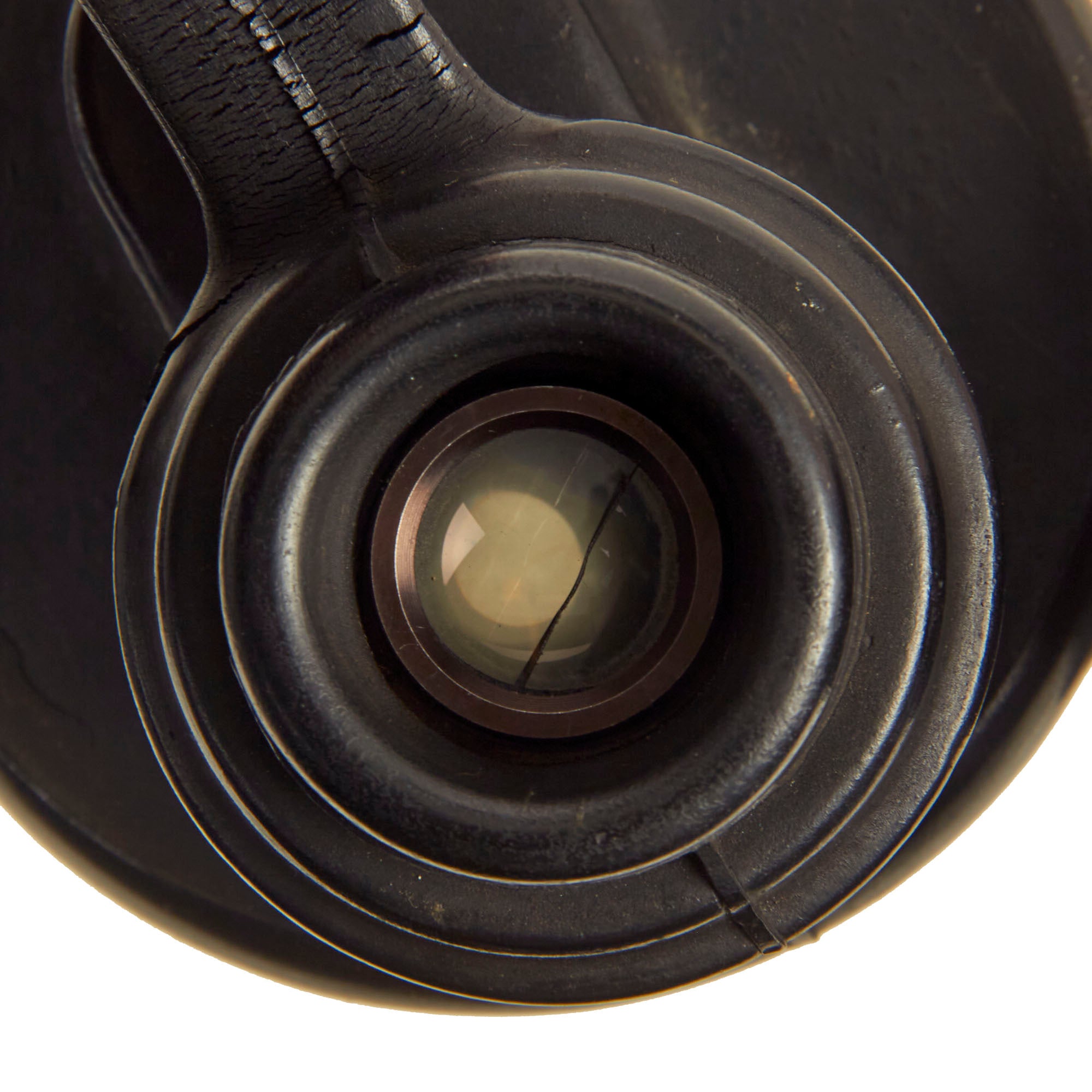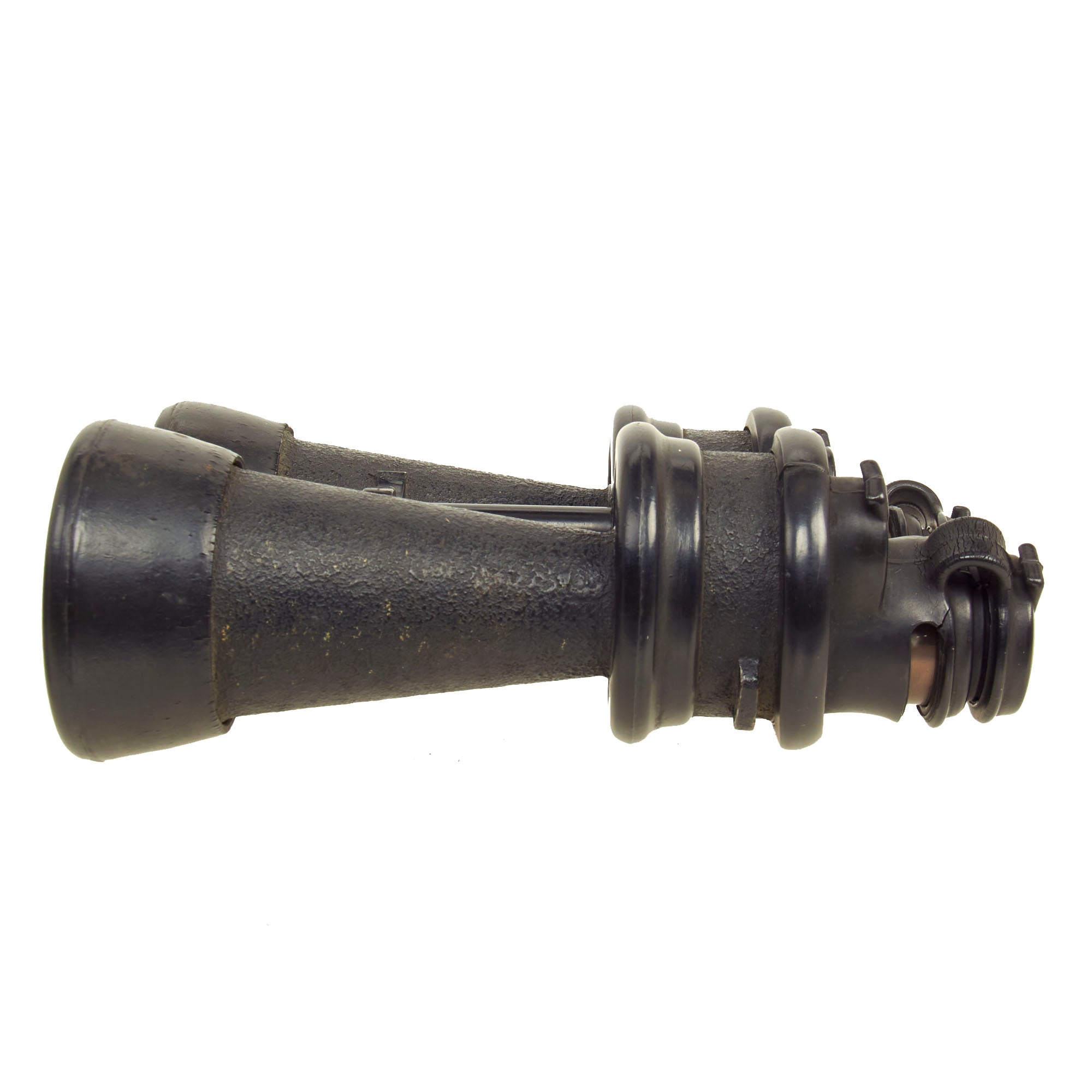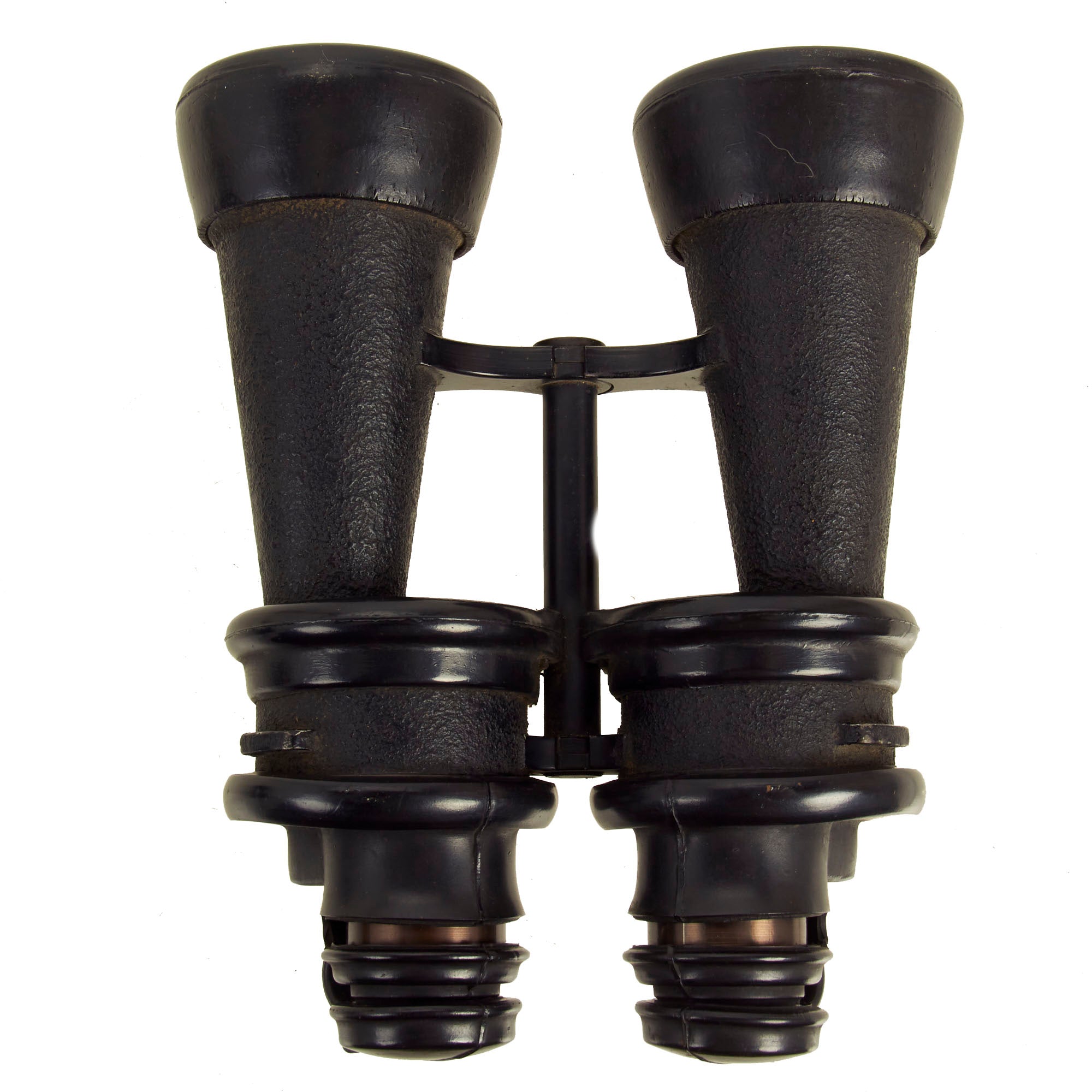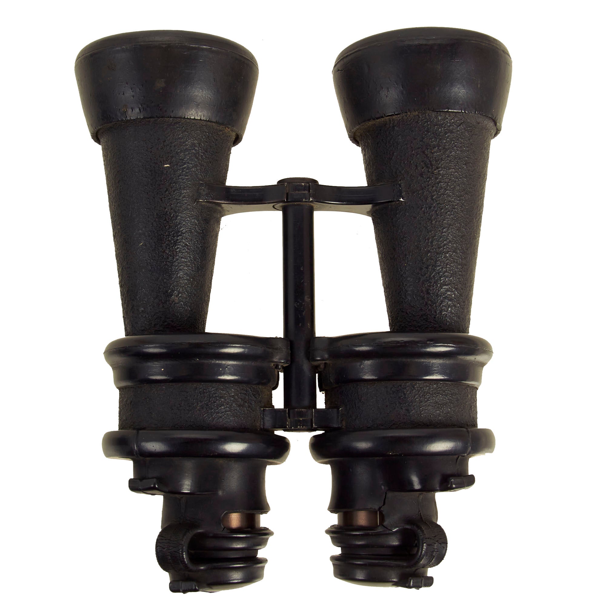 Original Item: Only One Available. This is a very good pair of extremely rare German WWII Kriegsmarine U-boat 7x50 binoculars, made by Ernst Leitz GmbH of Wetzlar, a specialist lens maker, and one of the finest makers of the time. They are equipped with rubber fittings around the eyepieces, the objectives, and even around the drum shaped mirror housing. This made them virtually impervious to moisture, possibly even if immersed in water for a short time, definitely a plus on a U-boat! As they have the rubber fittings, the eyepieces do not have bakelite cups, as they are part of the rubber molding.