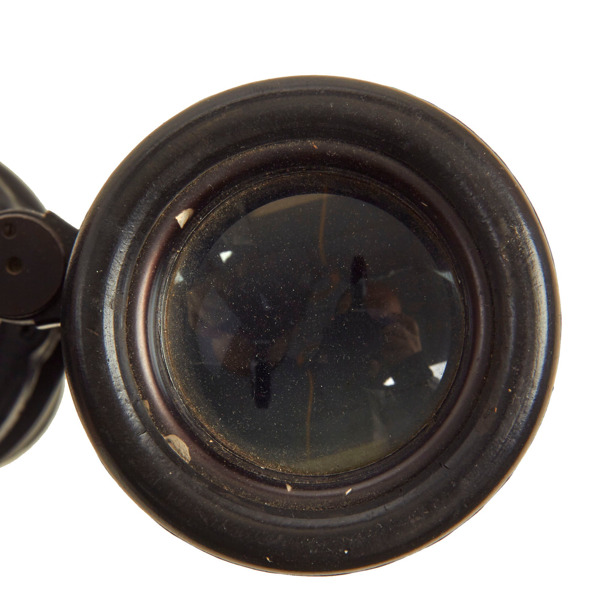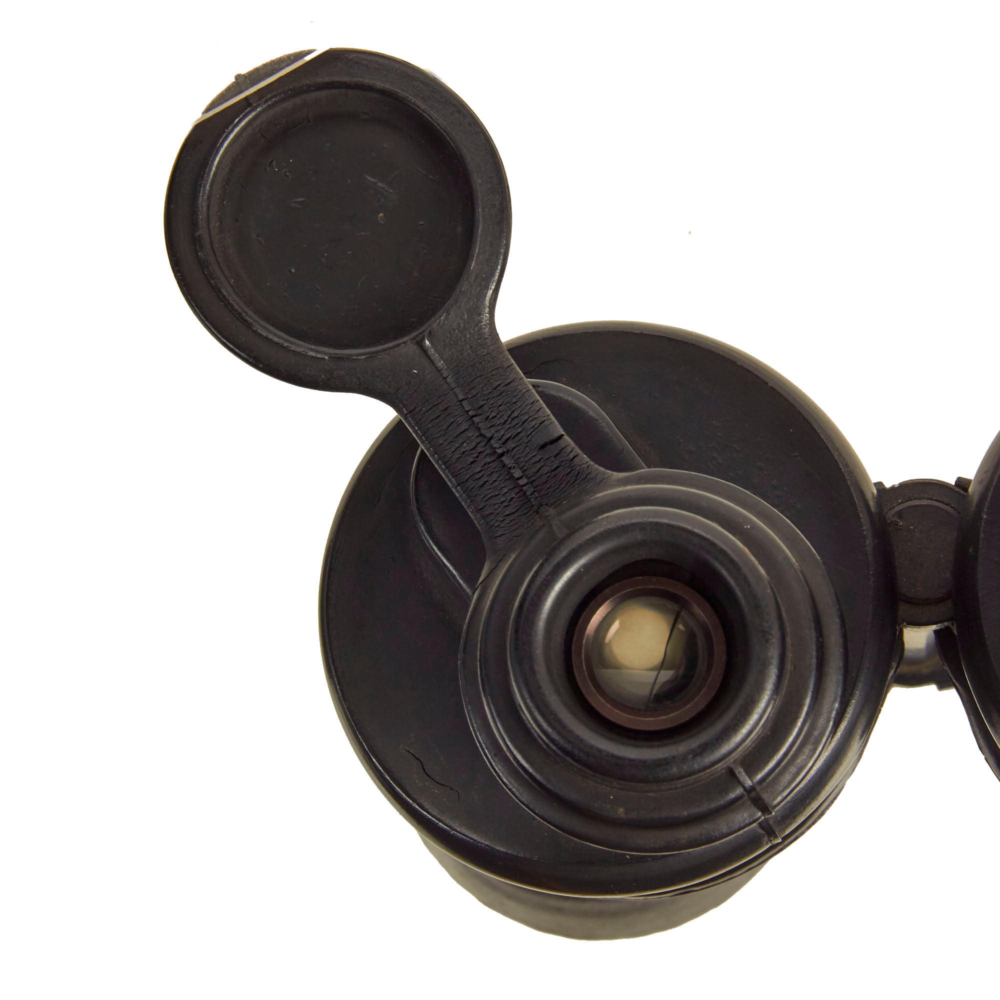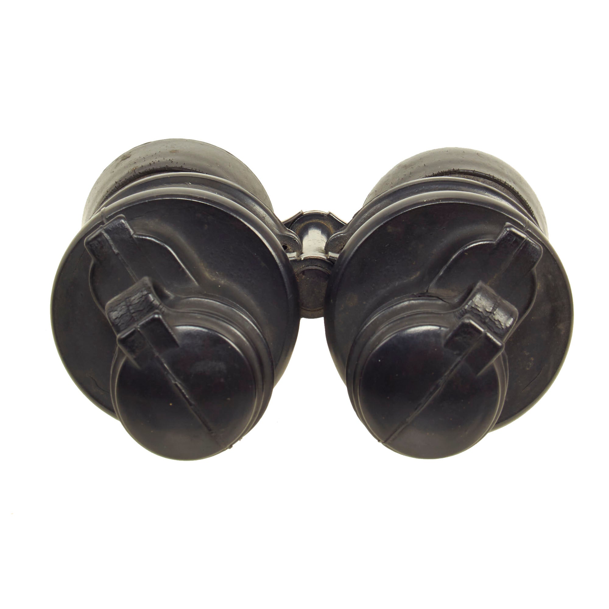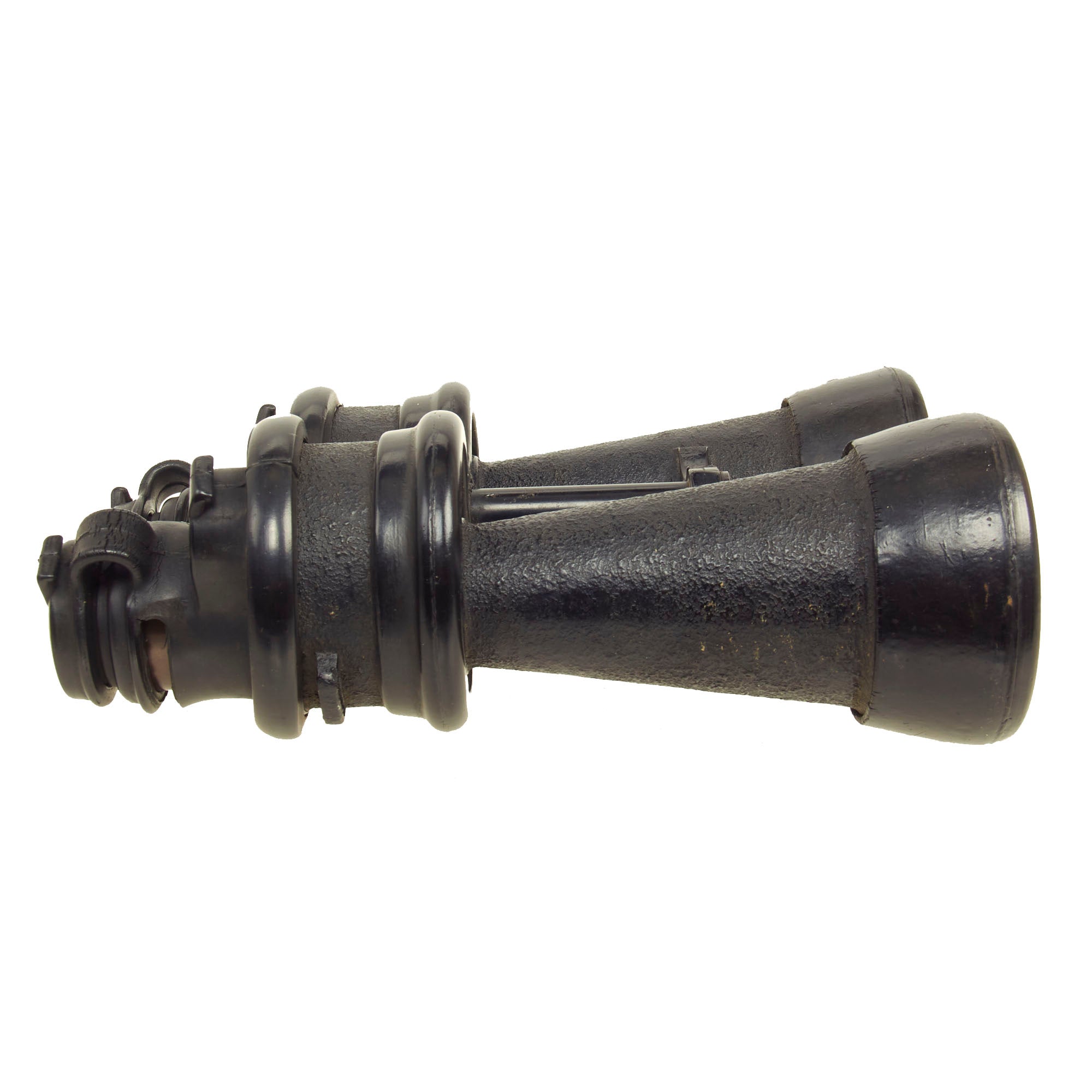 Original Item: Only One Available. This is a very good pair of extremely rare German WWII Kriegsmarine U-boat 7x50 binoculars, made by Ernst Leitz GmbH of Wetzlar, a specialist lens maker, and one of the finest makers of the time. They are equipped with rubber fittings around the eyepieces, the objectives, and even around the drum shaped mirror housing. This made them virtually impervious to moisture, possibly even if immersed in water for a short time, definitely a plus on a U-boat! As they have the rubber fittings, the eyepieces do not have bakelite cups, as they are part of the rubber molding.