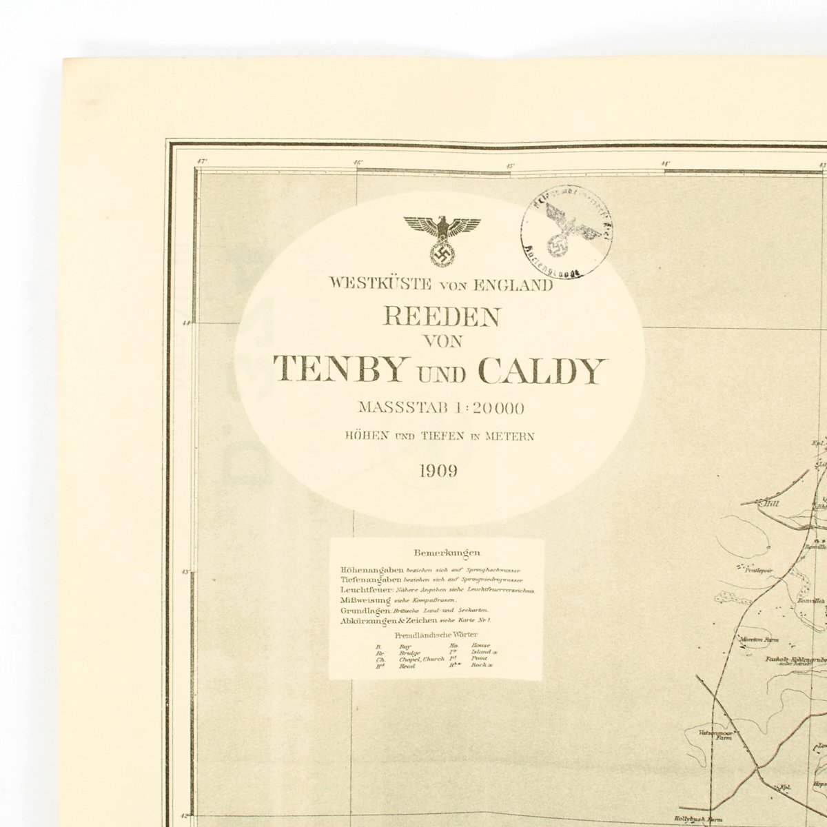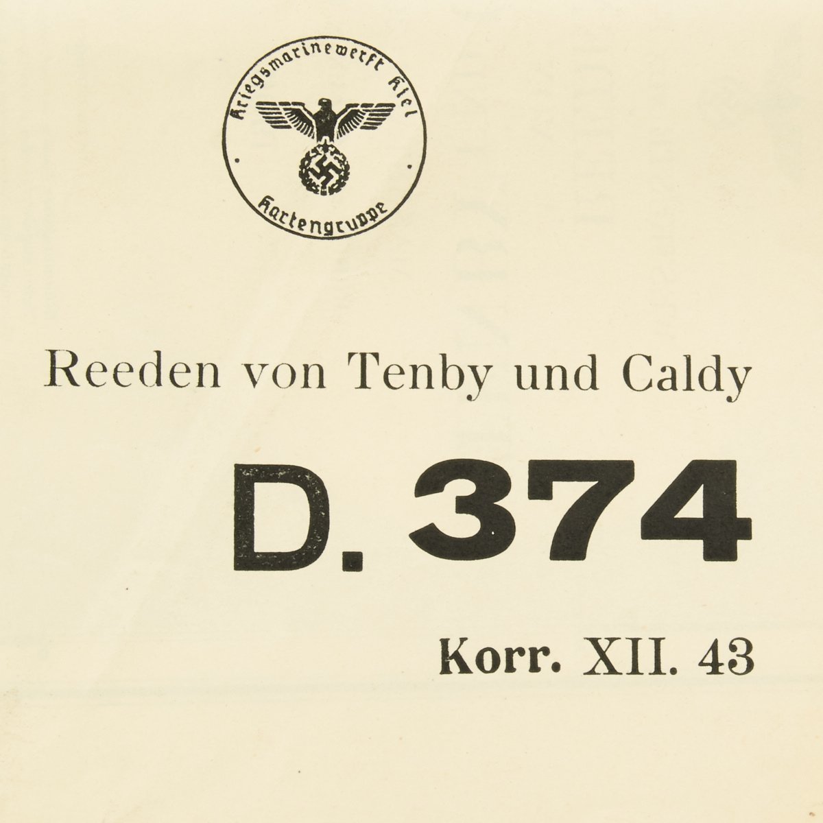 This fantastic map is marked Kriegsmarine with an issue date of 1943 across the bottom. It is a single side map constructed of heavy paper and is marked:
