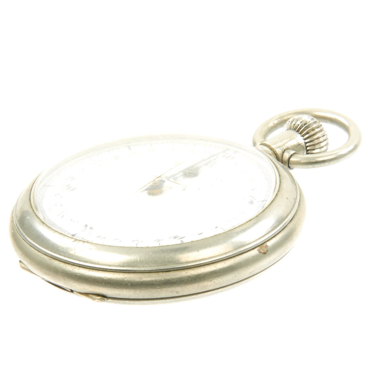 This is the classic design for Torpedo timing and used in U-Boats and E-Boats in the North Atlantic, and is offered in great fully functional condition. The fluted knob on the top controls everything. You wind it up and when you push it in once the single seconds hand starts moving immediately. On the second push, the second hand freezes at the time elapsed position. On the third push the timer resets itself to zero ready for reuse. There is a minutes hand as well, which along with the second row of numbers, gives the watch a maximum measured time of 15 minutes, accurate to a tenth of a second.