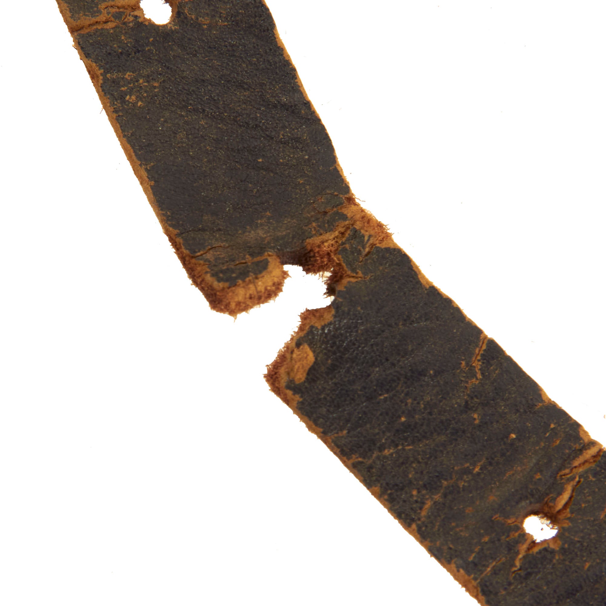 All straps, buckles and snaps are complete. However, the leather is definitely degraded and stretched out, so we do not recommend trying to undo some of the buckles, as the leather may crack.
