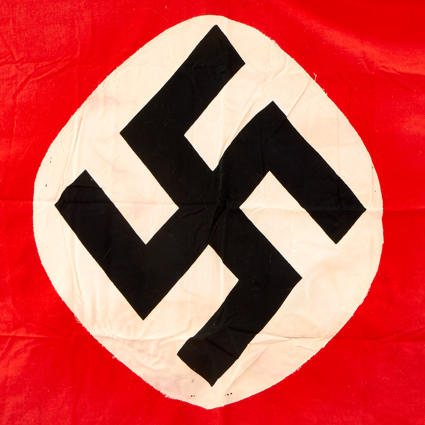 Original Item: Only One Available. This a very good condition multi-piece construction German WWII Swas (hook cross) identification flag, as used for Panzer tanks and other vehicles. It measures a quite large 38 x 72 inches and has the standard NSDAP Swas (Hook Cross) dyed onto a circular white field. This was then sewn onto the red cotton body of the flag on both sides. Condition is very good, and this looks to have seen only light use in the field. The colors are vibrant, and there are just a few small tears and areas of light staining.