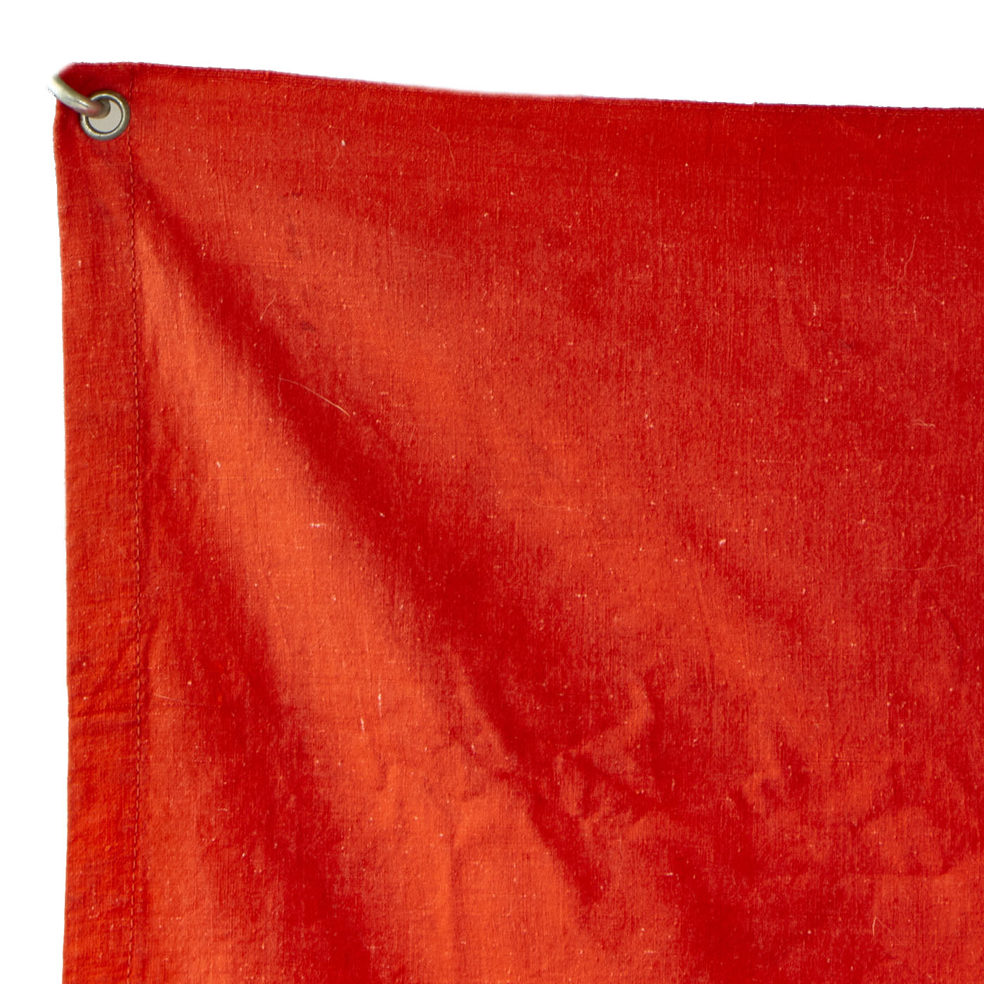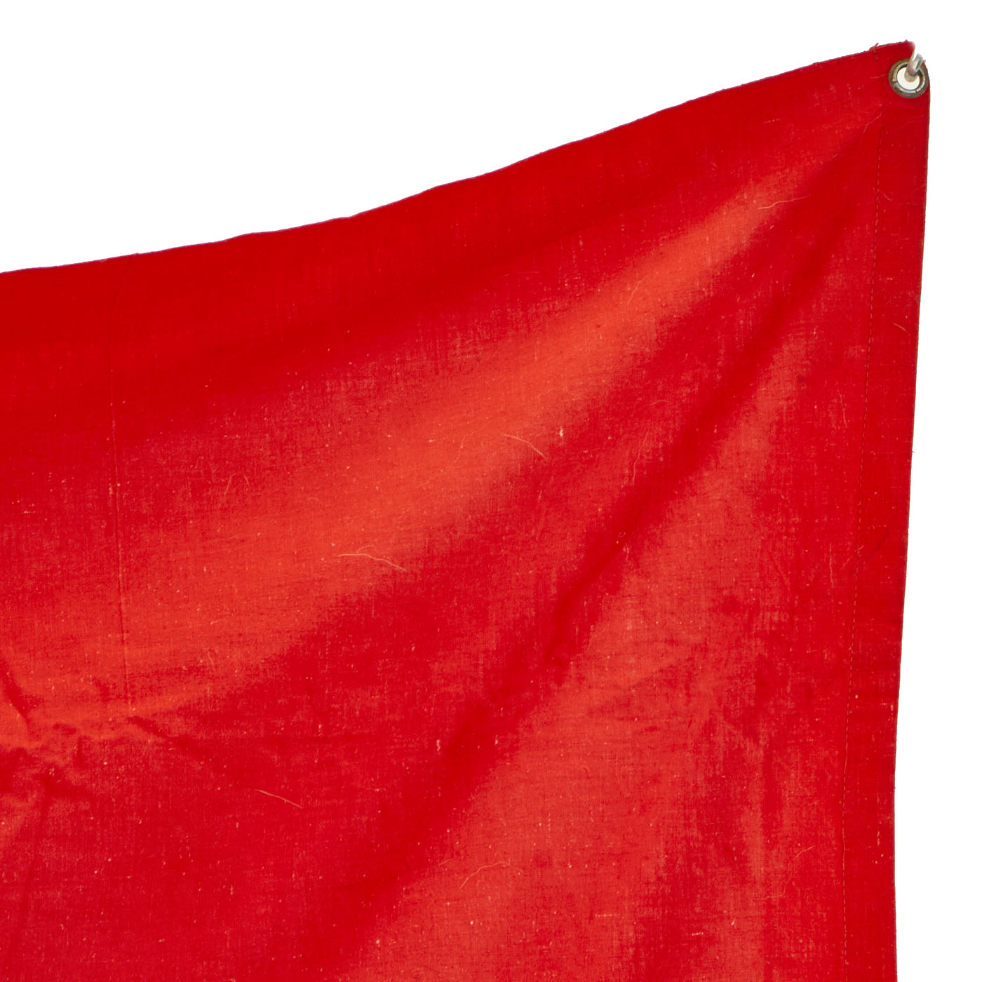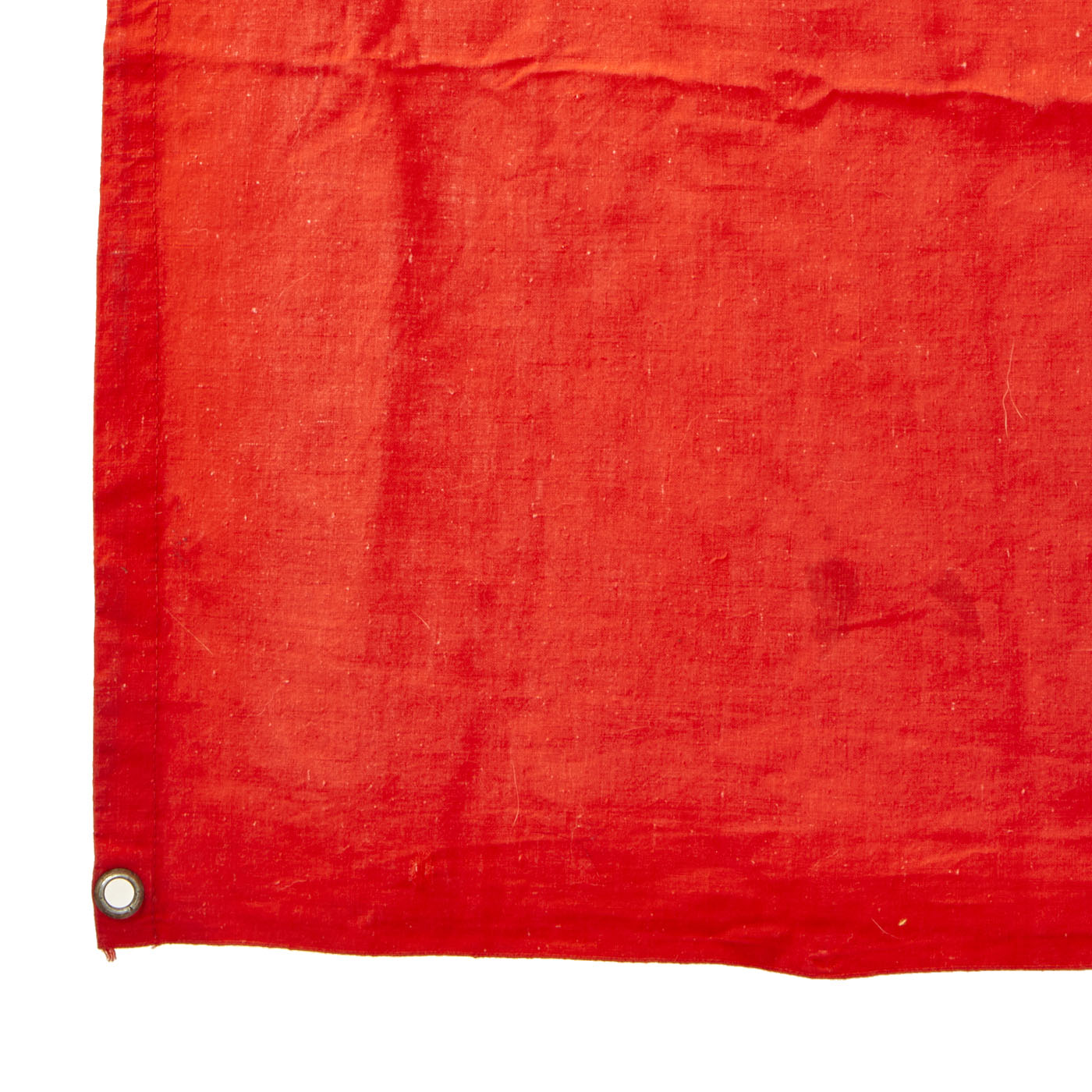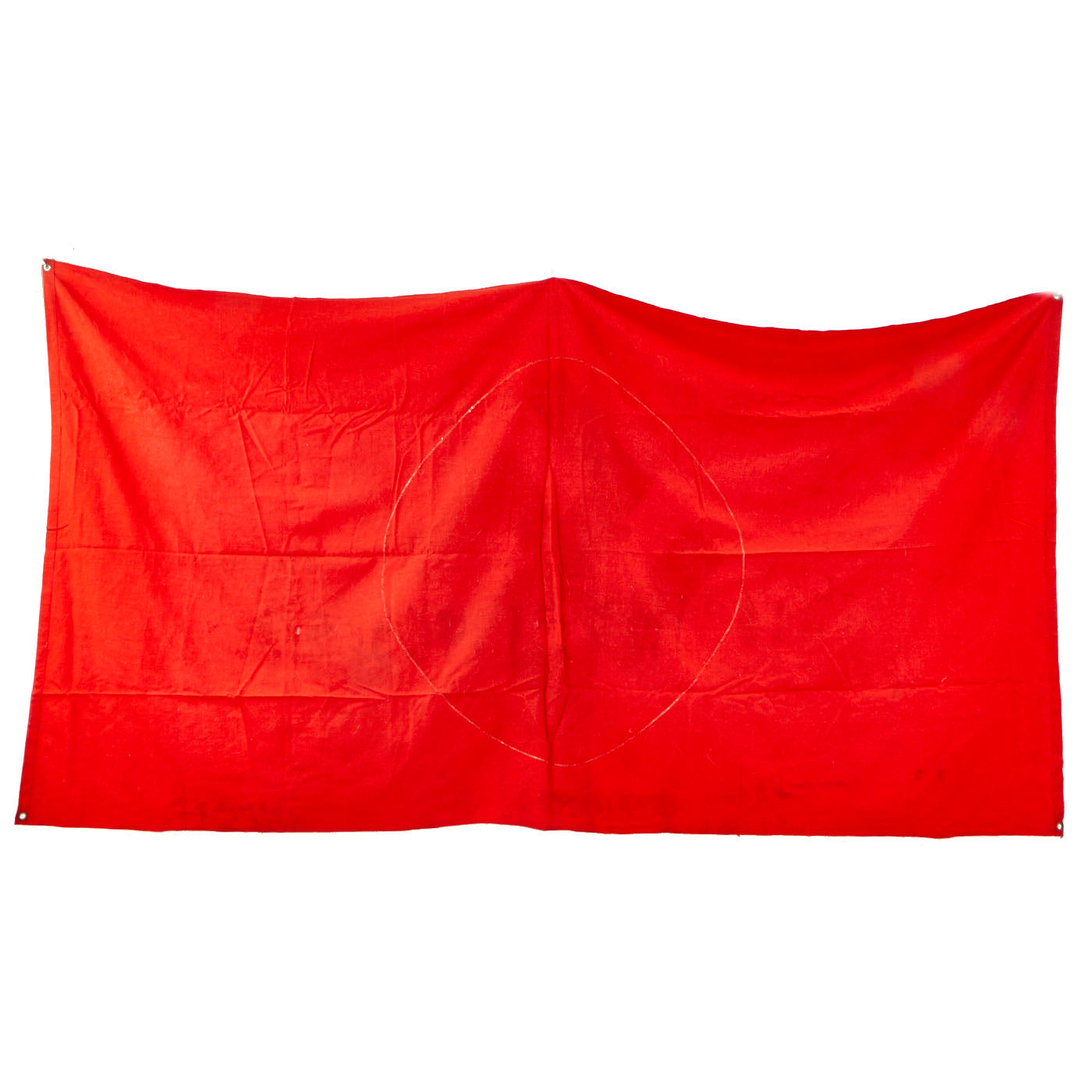 This flag features multi-piece construction and is double sided with plated steel grommets located in each corner. These grommets were secured to tension lines that secured the flag to the back of the tank laying flat. Thereby the flag was only visible to persons located above the tank. Generally these flags were intended to be seen by German airplanes so as not to be struck by friendly fire.