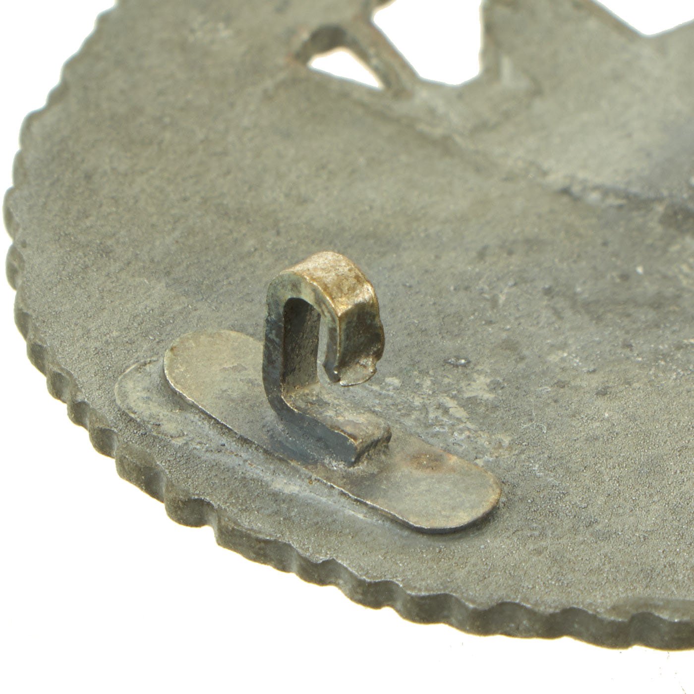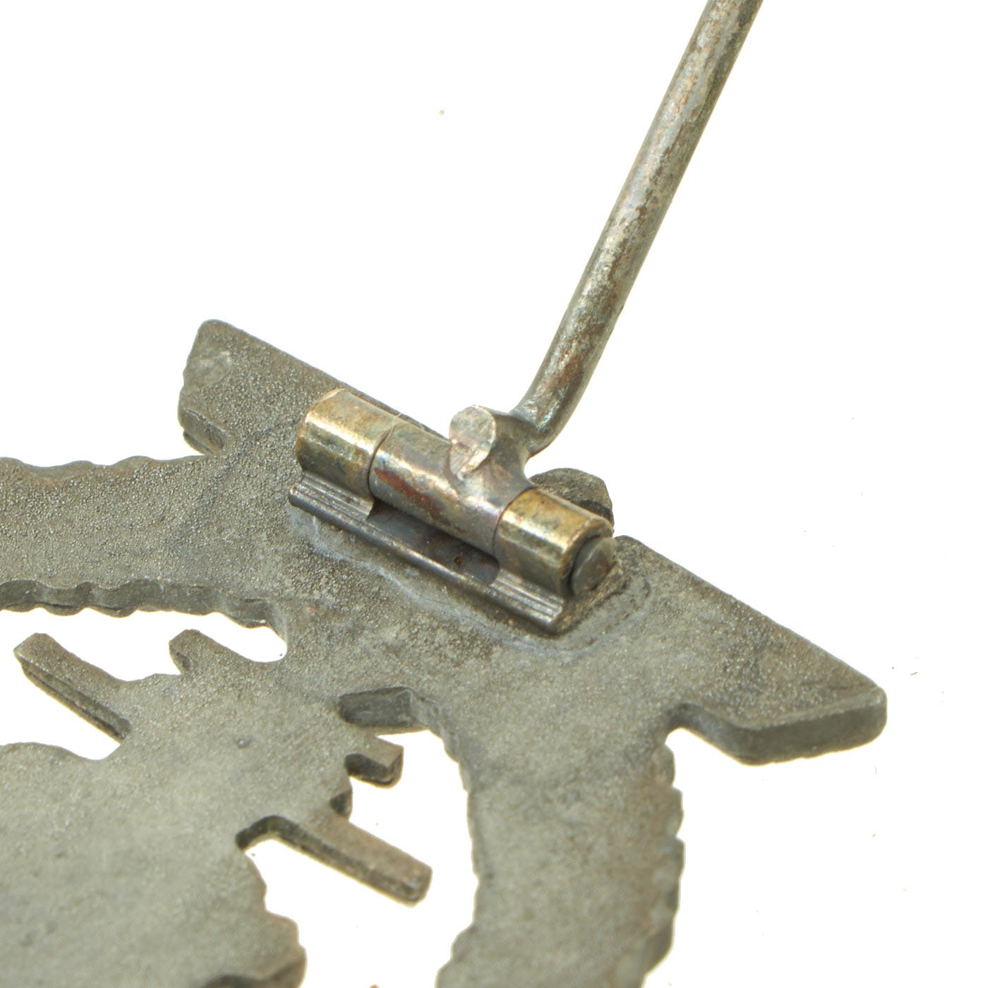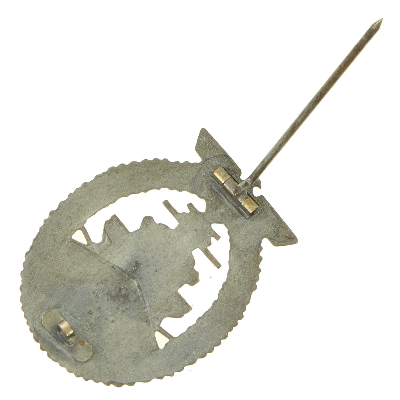 Original Items: Only One Available. This is a very good condition Late War Flottenkriegsabzeichen der Kriegsmarine - High Seas Fleet Badge, made of Zinc alloy. Earlier in the war, these had been made of Brass with a blacked battleship in the middle, but as the war went on, they moved to zinc.