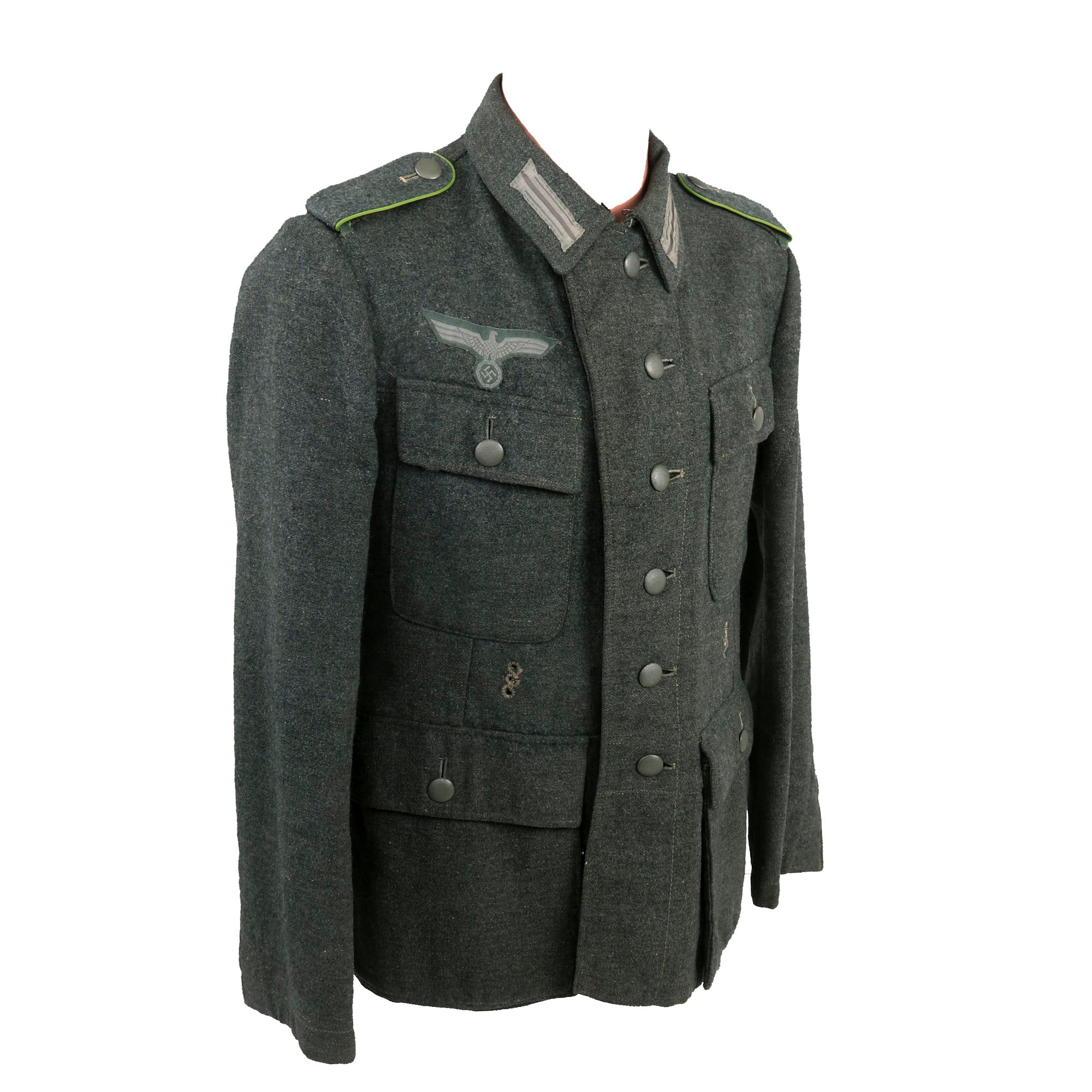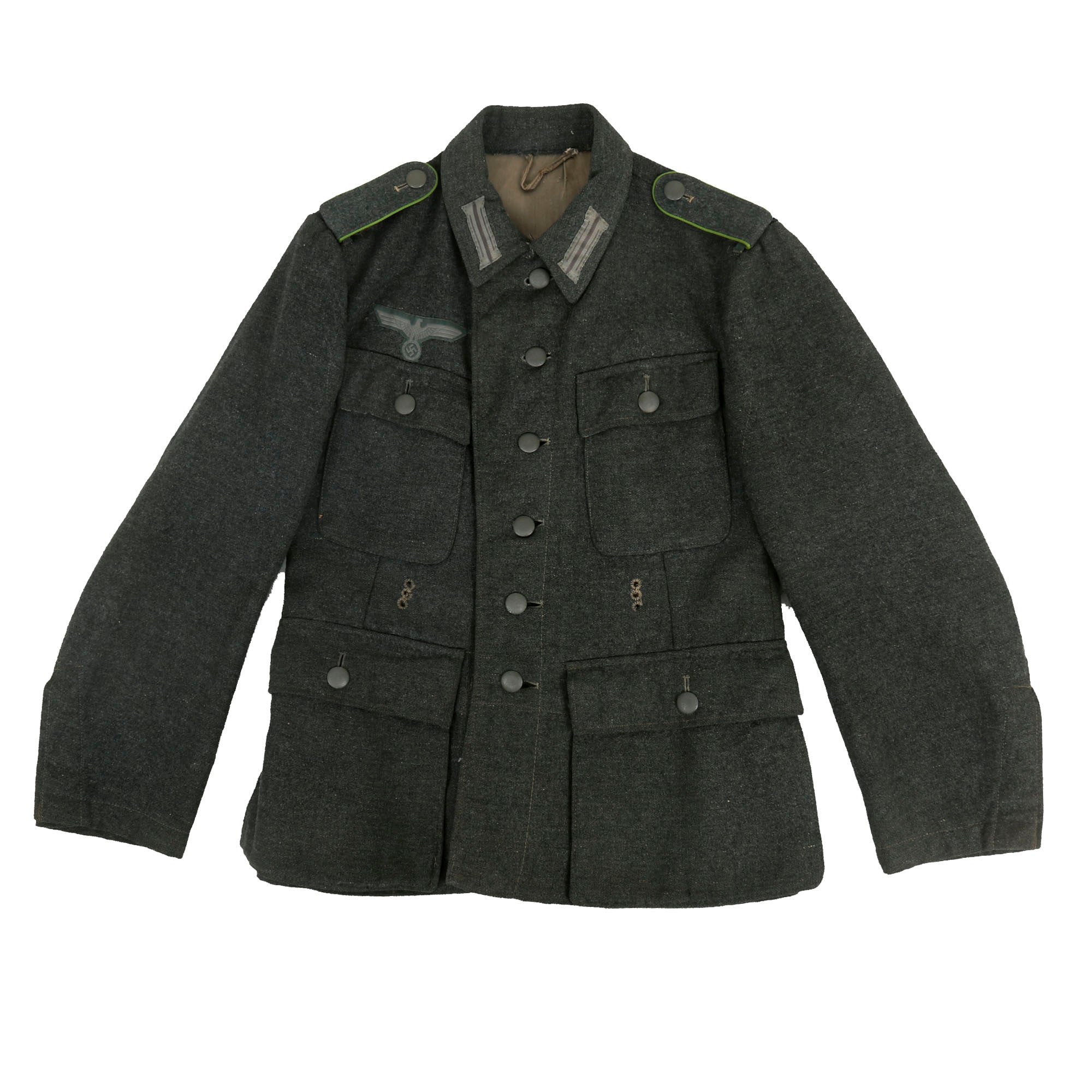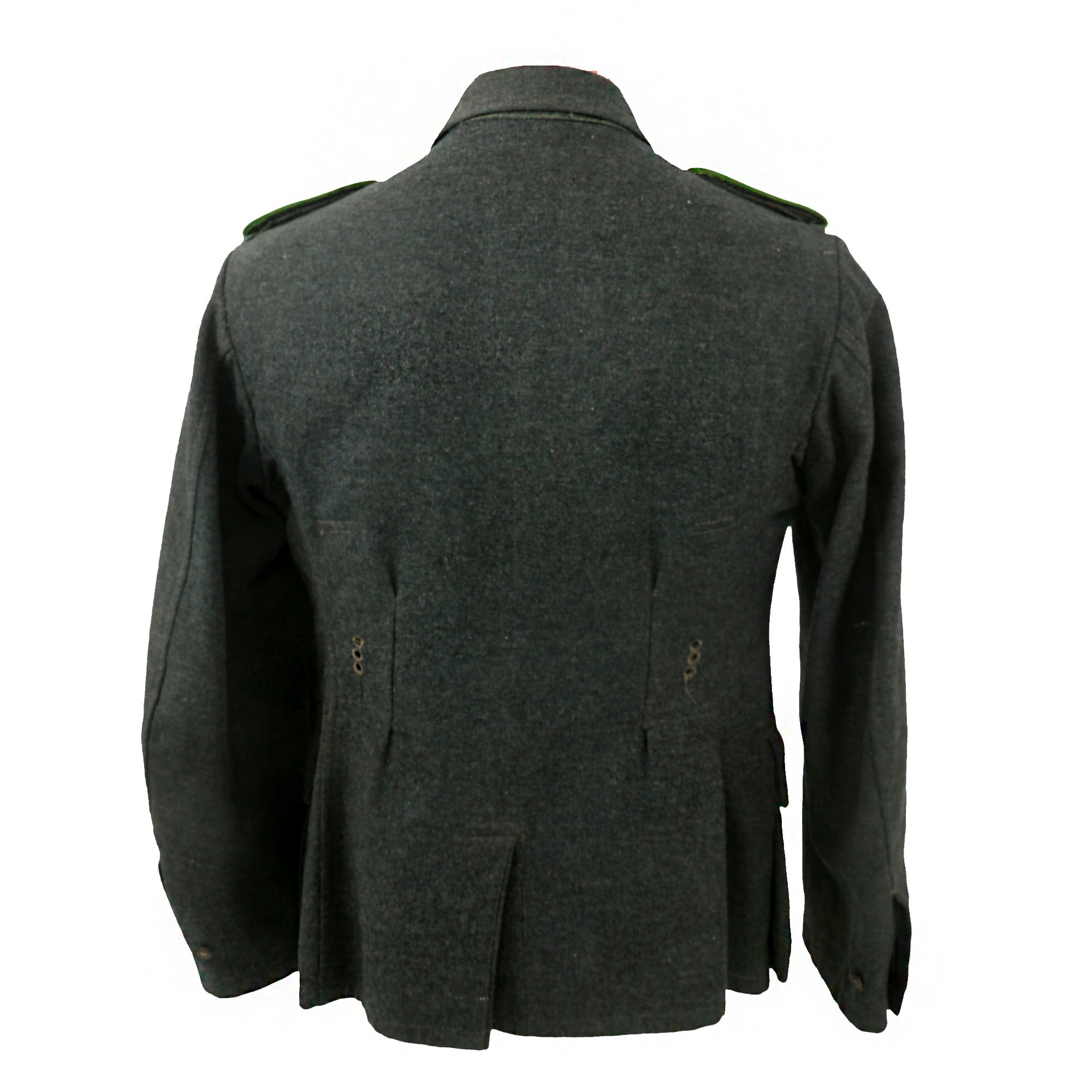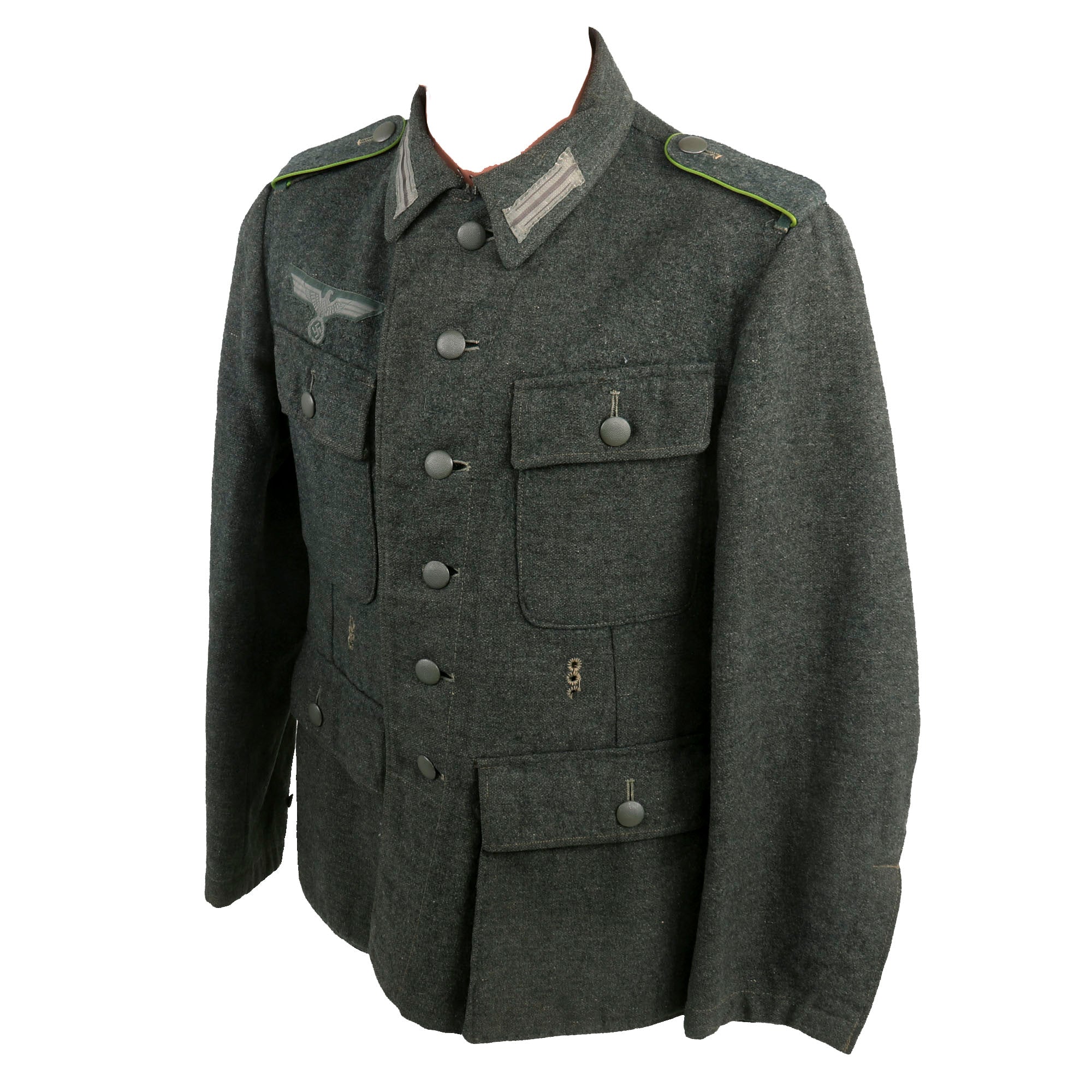 Original Item: Only One Available. This is a very nice service used late war pattern German WWII Heer Army Panzergrenadier Mannschaften (Enlisted Personnel) M-40 Field Tunic, a more rugged and simplified version of the M-36, intended for real combat use. Gone is the "bottle green" collar, and the overall construction is more rugged, using a rougher weave feldgrau wool on the exterior.