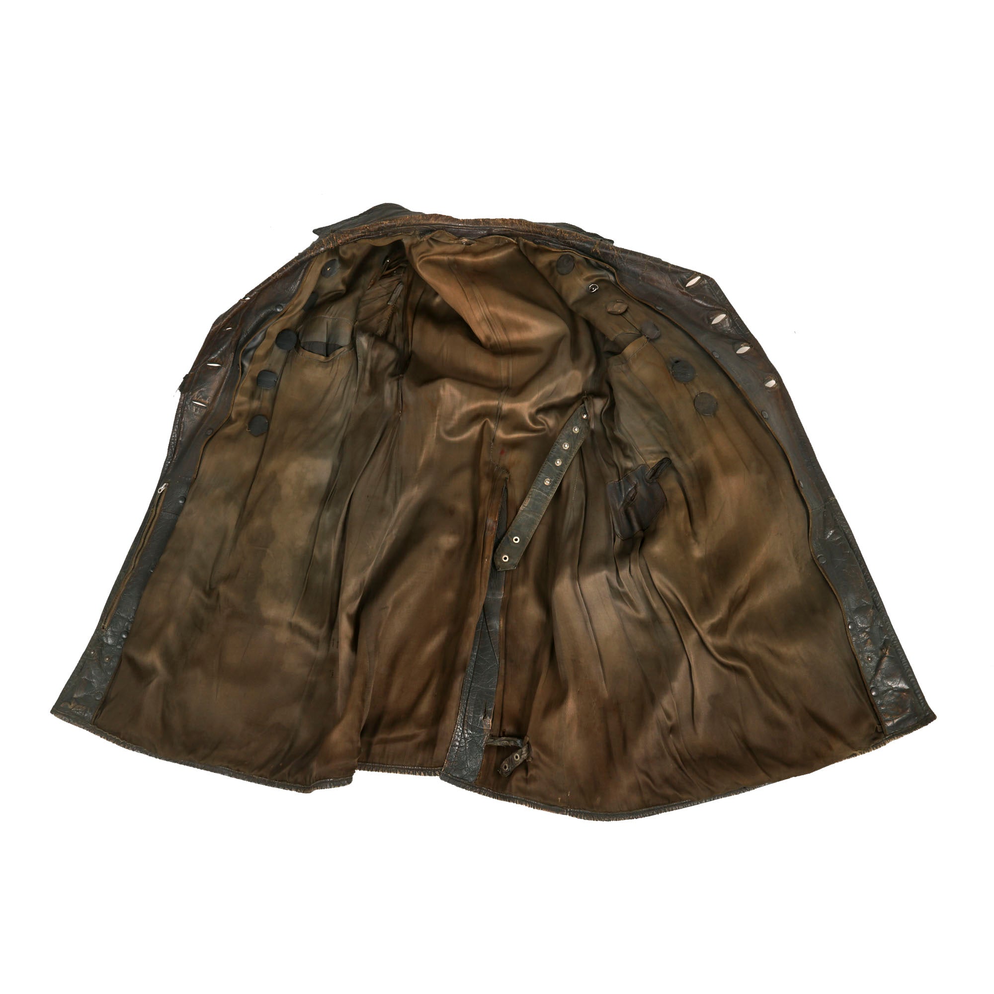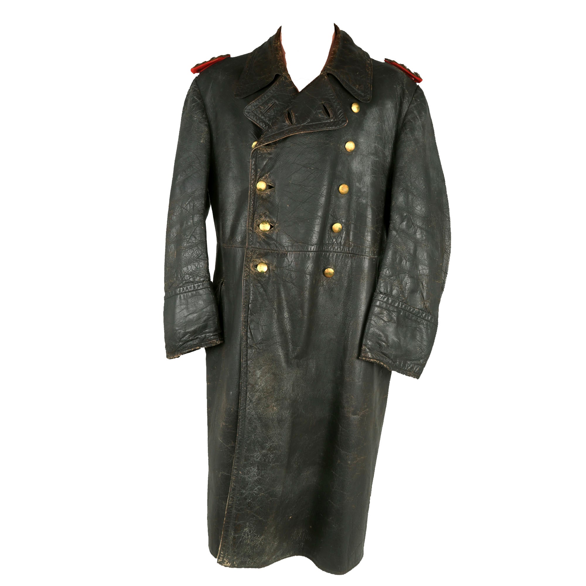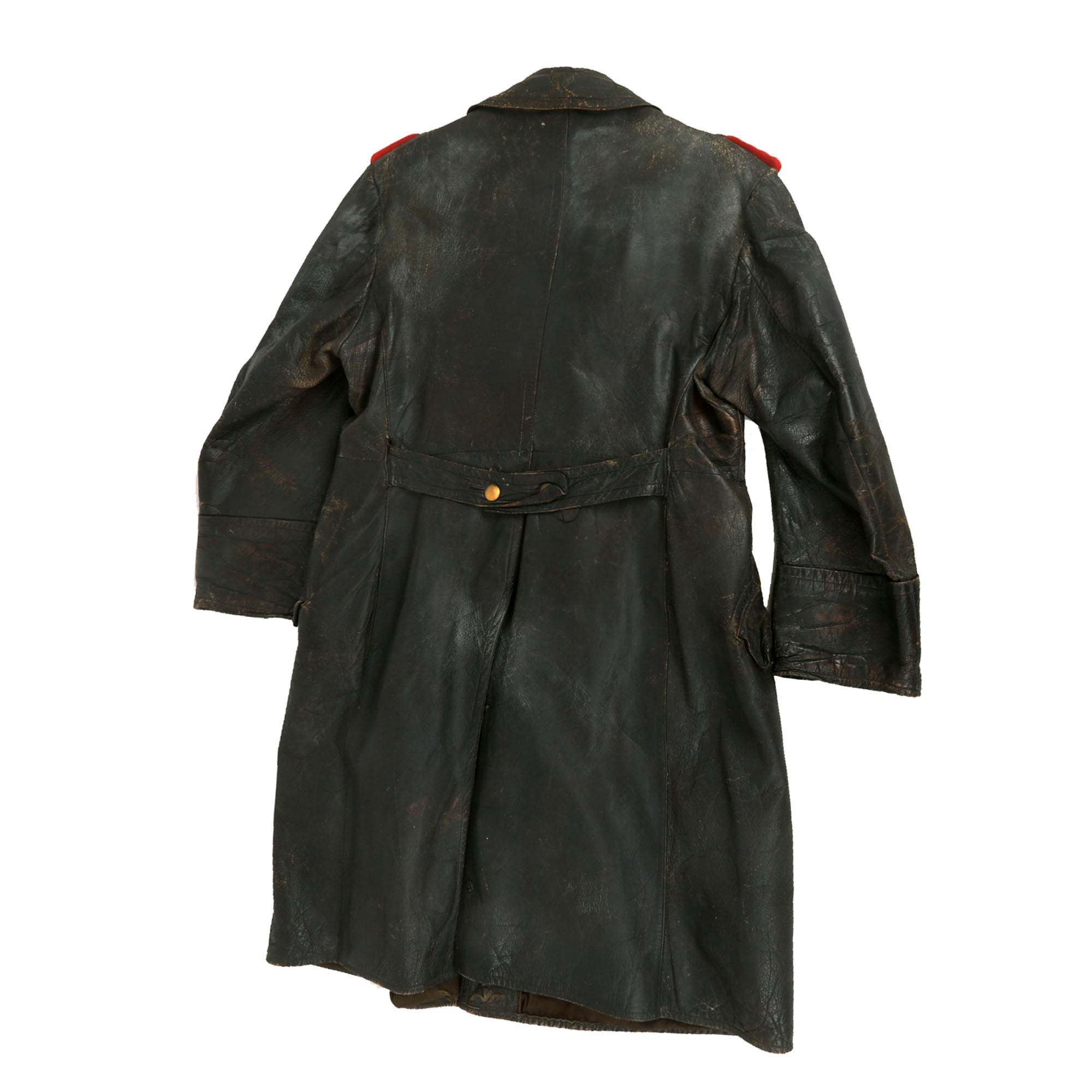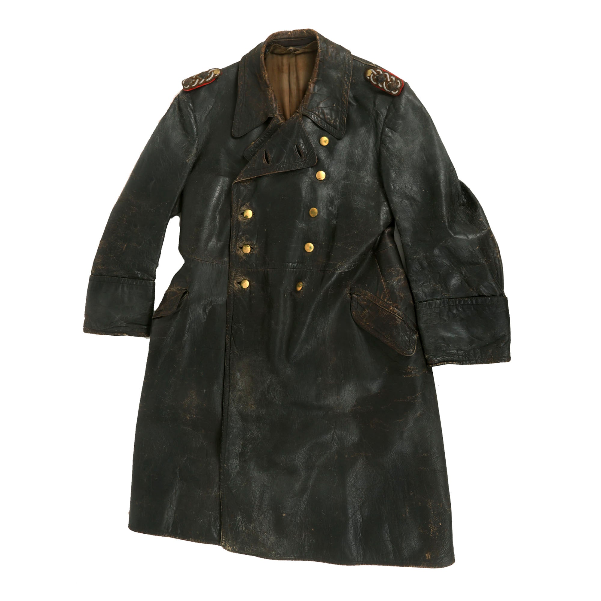 A lovely German WWII leather greatcoat, attributed to a legendary Panzertruppe General. Ready to research and display!