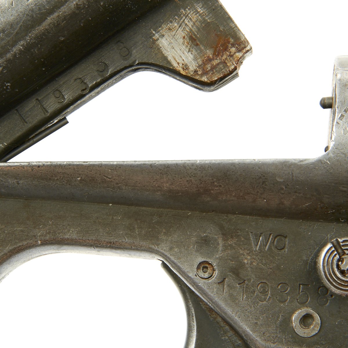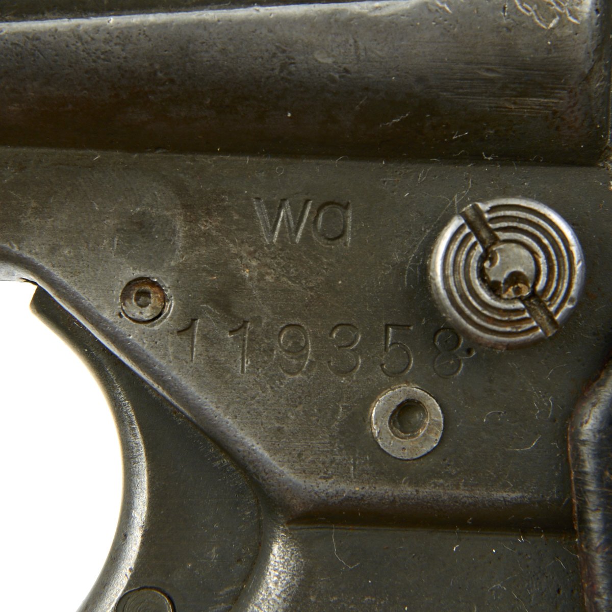 These flare pistols are completely Original German WW2 manufacture and in very good complete condition. Most of the finish is intact, though some have been arsenal repaired at least once, as in most cases the serial numbers on the barrel and frame will not match. Grip panels may also have been replaced during long service. These are very hard to find World War Two items with a fascinating history.