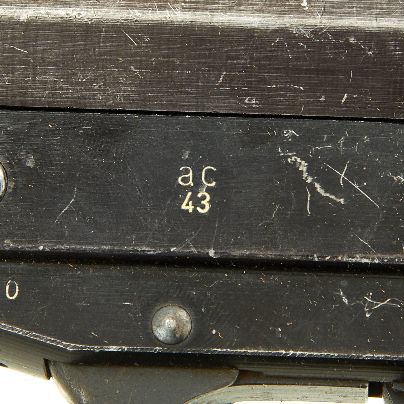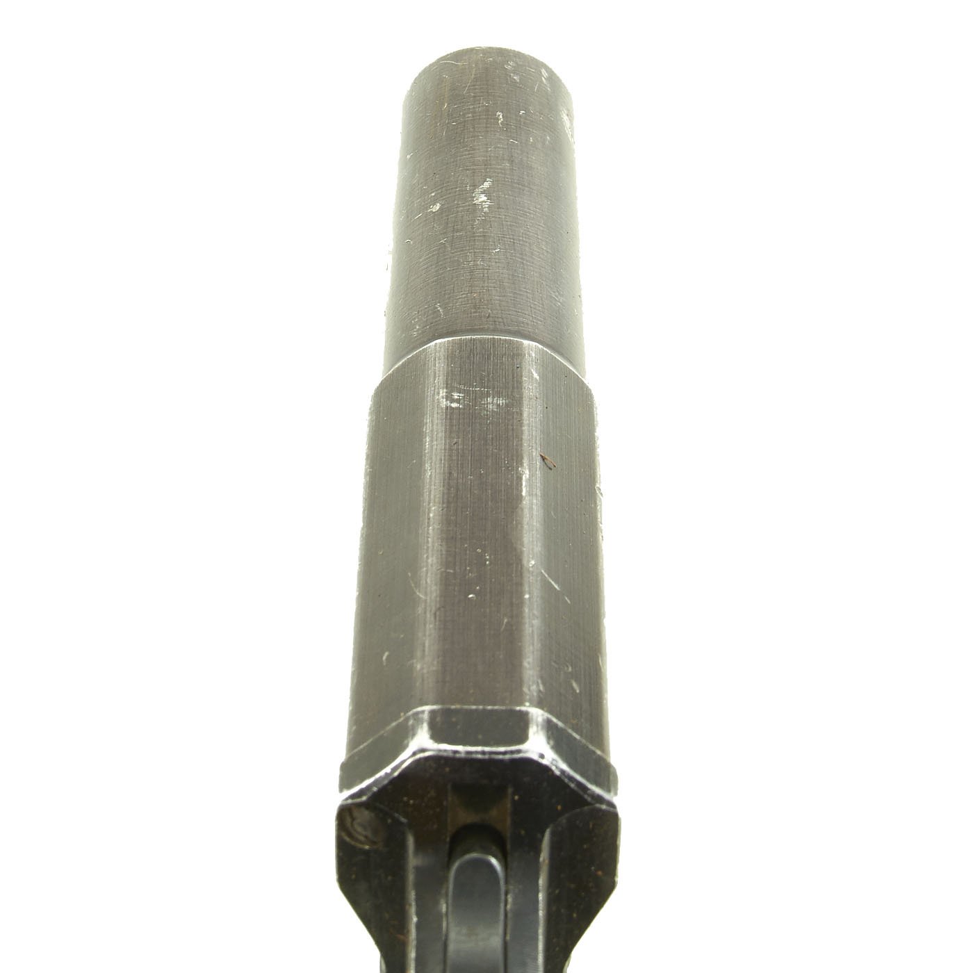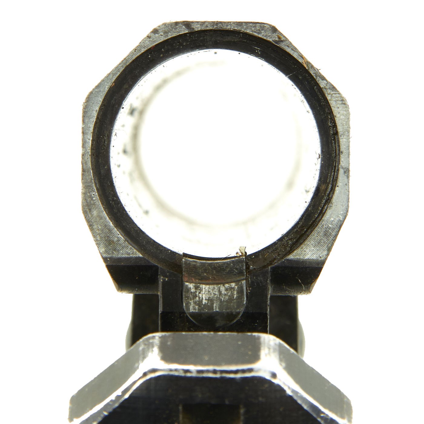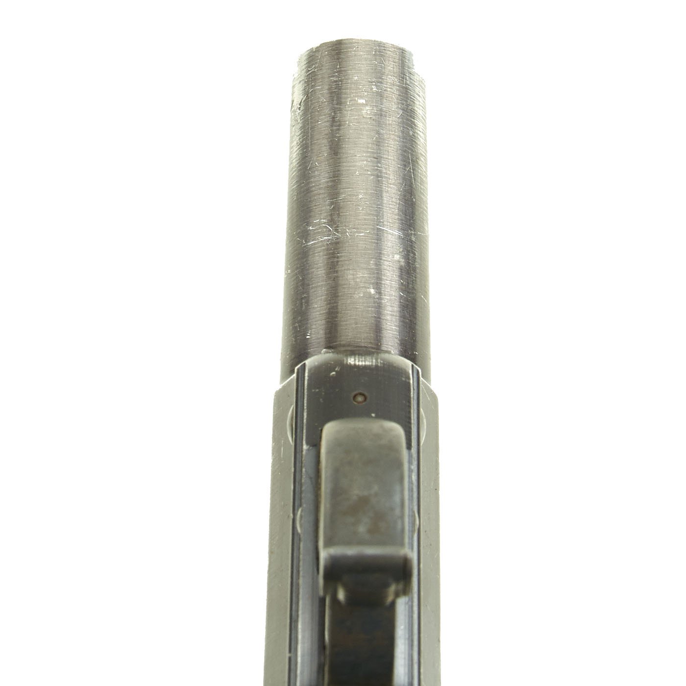 This example bears original German maker code ac, which stands for Carl Walther AG, located in Zella-Mehlis, Thuringia. Walther is the original developer of the LP 28 and 34 pistols, as well as the famous line of PP Pocket Pistols, and the P-38 Service pistol. Below this is it stamped with the manufacture date of [19]43, and it has serial number 2190 above the trigger guard and on the barrel hinge. It is nicely Waffenamt marked on the right side of the frame and barrel, with inspector number 359. It also has the interesting Eagle over a "Tree inside Inverted Heart" stamping, which is apparently for Thuringia, the "Green Heart" of Germany.