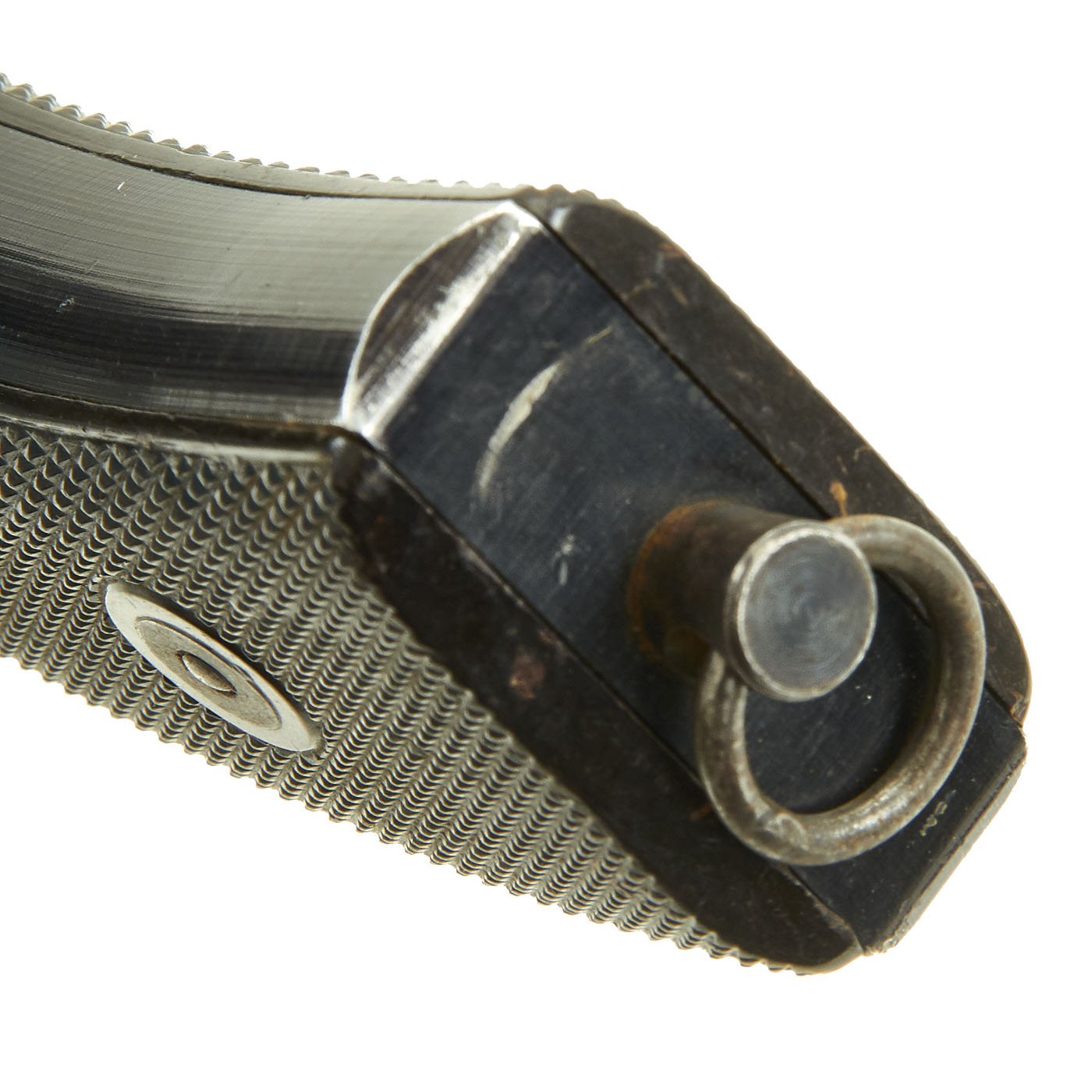 Completely Original German WWII manufacture in good complete condition with later war flat-sided black bakelite checkered grip panels with rounded edges, which are in excellent condition.