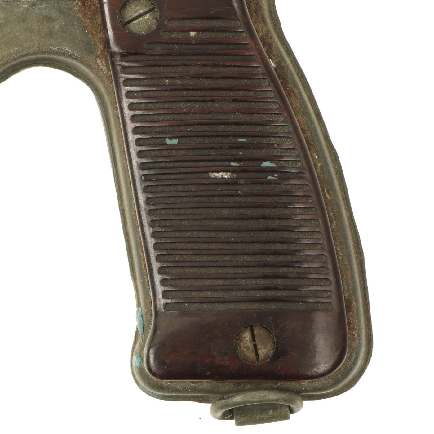 Completely Original German WWII manufacture in very good complete condition with lovely brown / red bakelite ribbed grip panels. The pistol is very clean, and even still has much of the original zinc finish, matured to a lovely patina. There are no other import markings such as from the UK or Israel, unlike most we have seen recently. The pistol breaks open correctly with ejection, has an intact firing pin, and dry fires. It also has the "loaded" indicator on the rear of the breech. This really is a prime example!