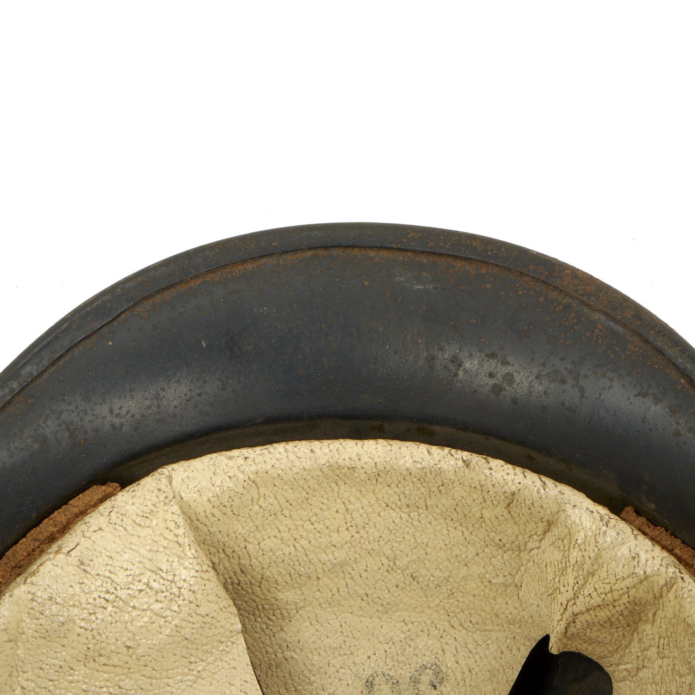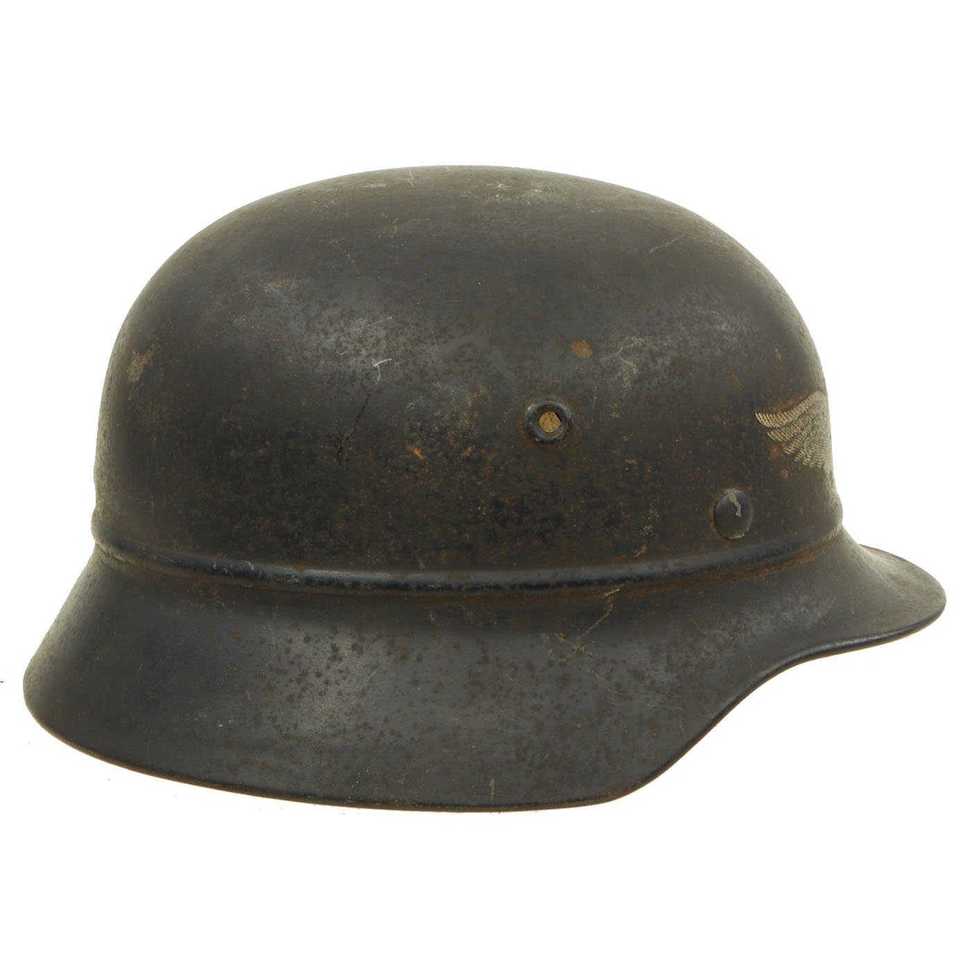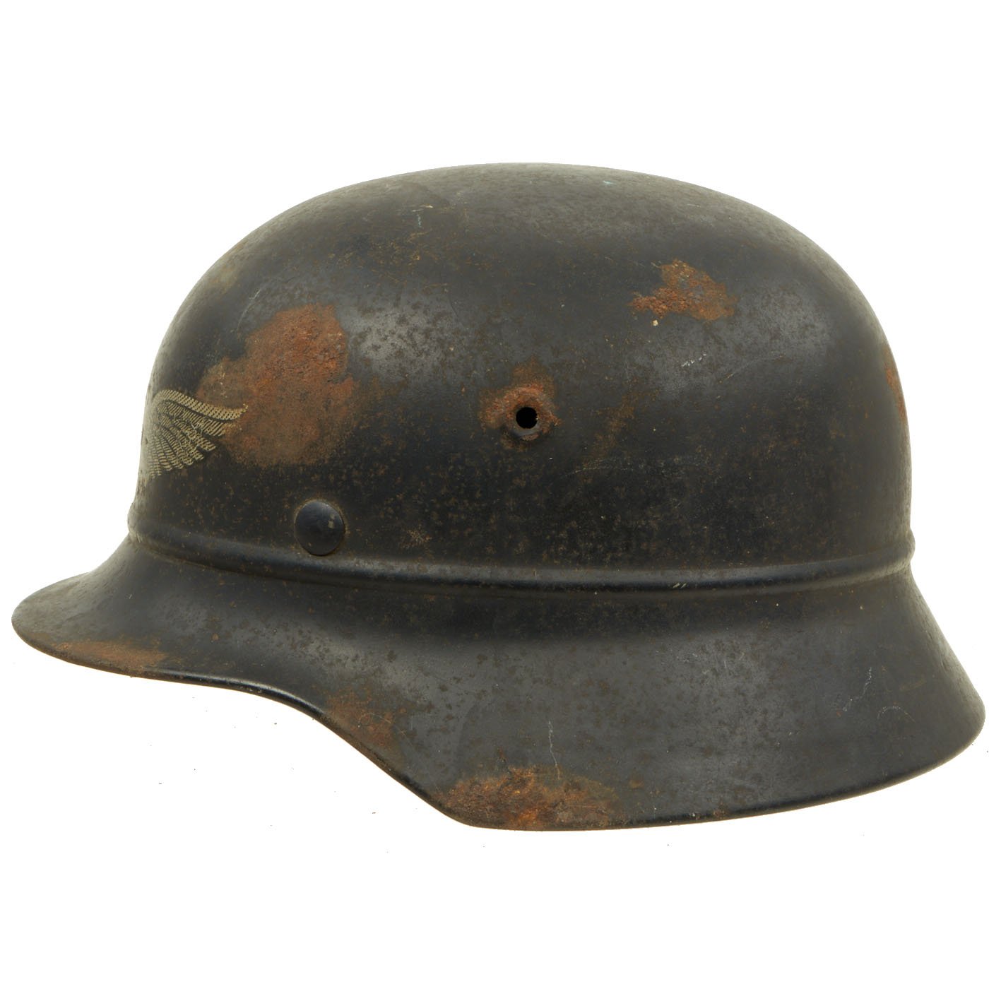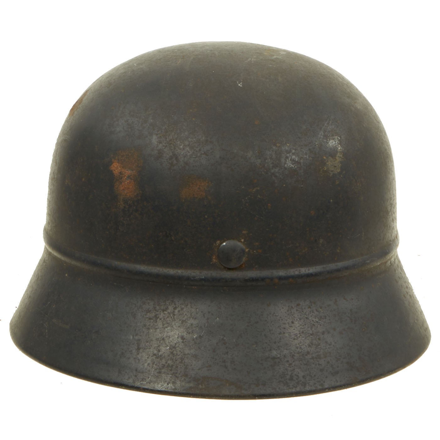 Original Item: Only One Available. This is a very nice and somewhat rare genuine steel construction M40 "Beaded" Third Reich helmet, outfitted for German WWII Luftschutz Civil Air Defense use. These helmets were essentially like the Military issue, however the steel was not as thick or as high quality. They were given a "bead" around the edge, to avoid mixing them up with the military version.