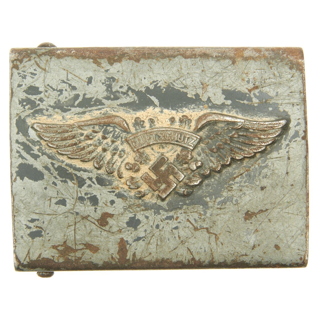 Original Item: Only One Available. This is a rare WW2 German Luftschutz steel belt buckle. The Air Protection Warning Service (Luftschutzwarndienst-LSW) was a civilian organization whose purpose it was to alert the population of impending air raid attacks. The buckle is in very good condition, and there does appear to be a marking on it, but it is no clear enough to decipher the maker. A rare belt with an exceptional eye appeal!