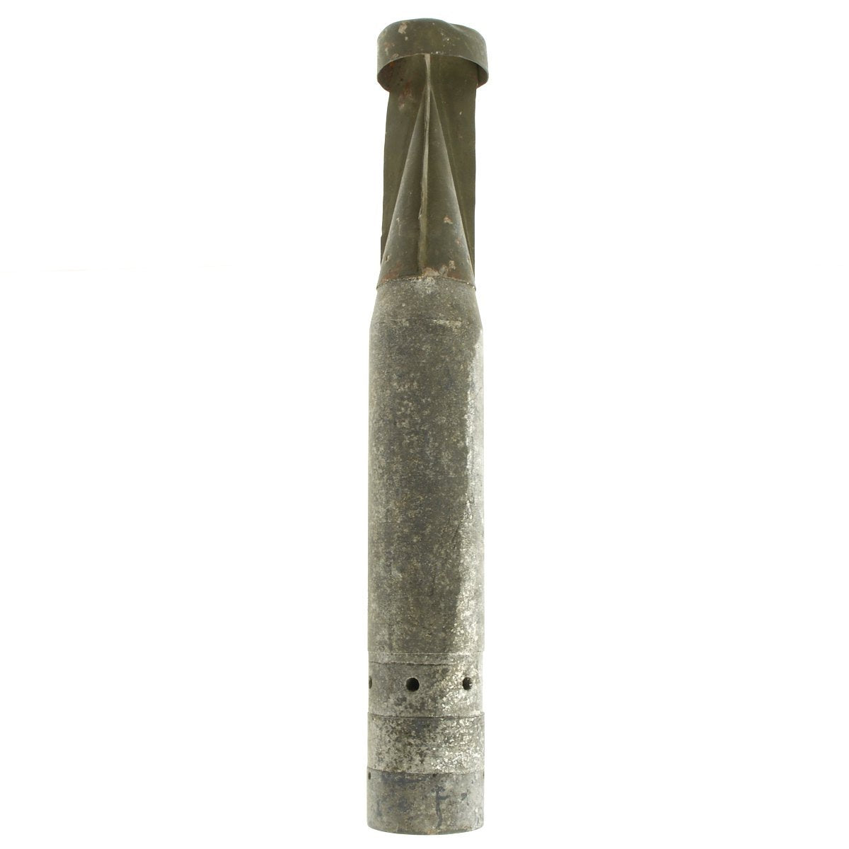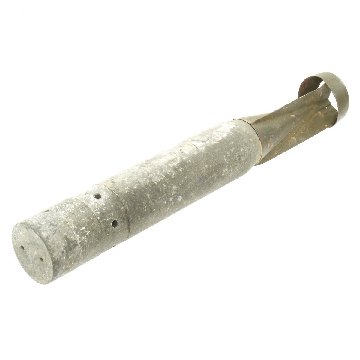 This genuine now inert example in very good condition retains all of its original features in clouding a complete fin set (often damaged or missing), magnesium body, and well marked end cap. The end cap is waffenamt stamped and reads: