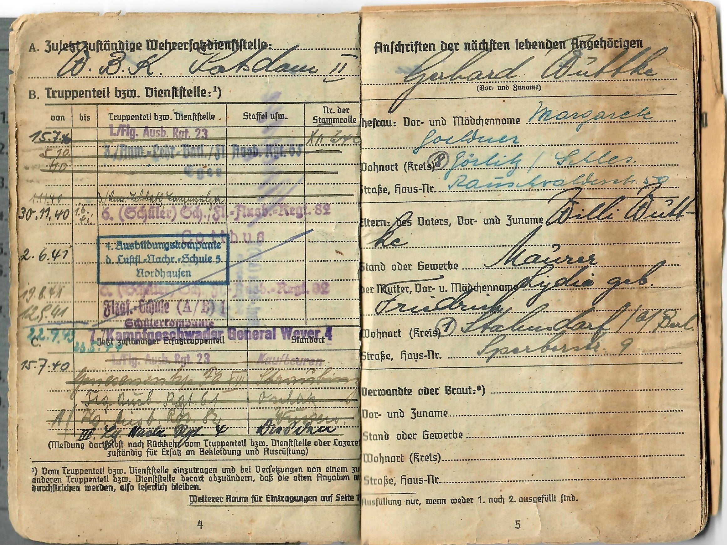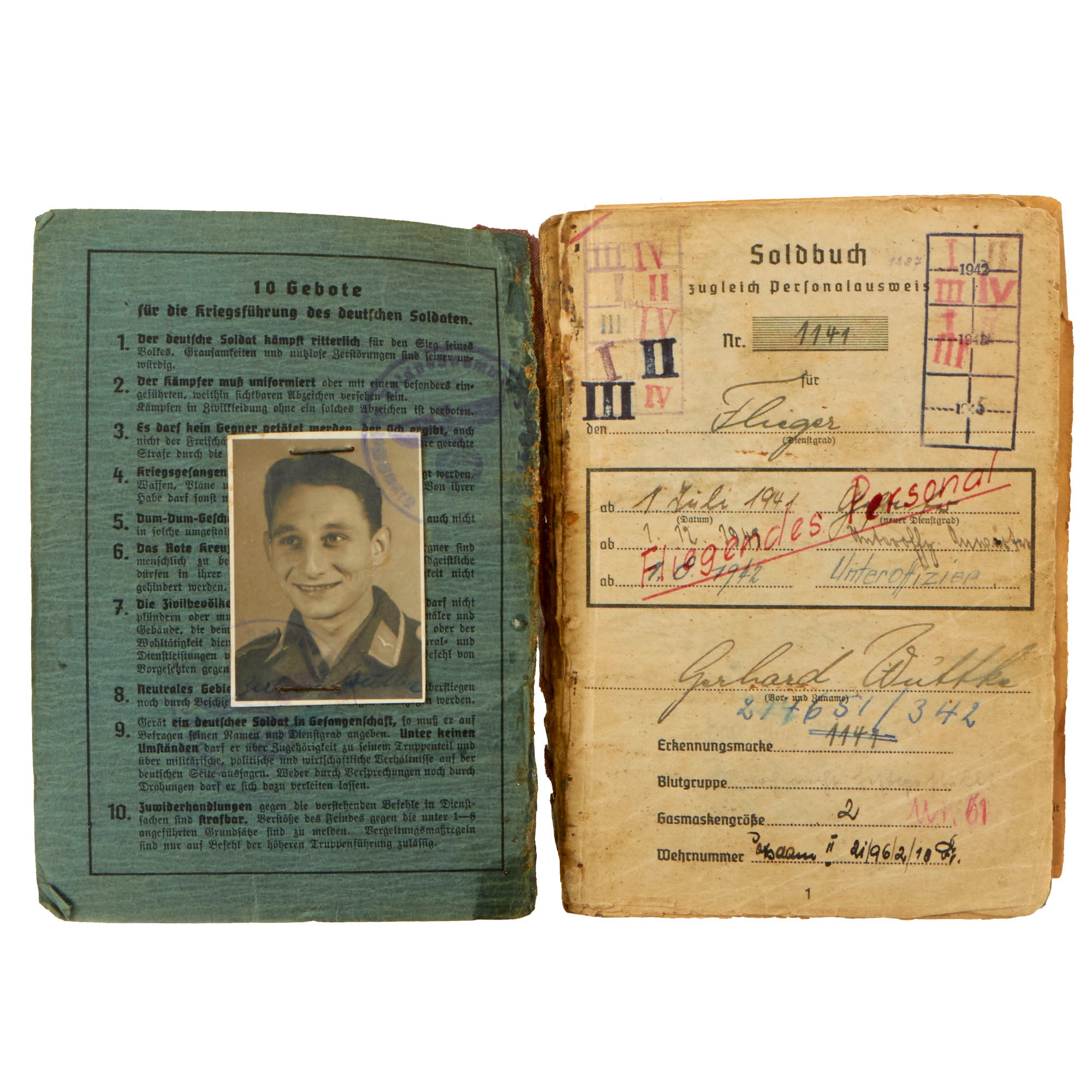 Original Items: One of a Kind Set. Here we have a magnificent German WWII Luftwaffe Document and Photo Collection, most of it directly related to Unteroffizier Gerhard Wuttke, who was a Gunner on Heinkel He 111H Medium bombers during the war. It includes his Luftwaffe Soldbuch, as well as his Luftwaffe Flugbuch flying records.