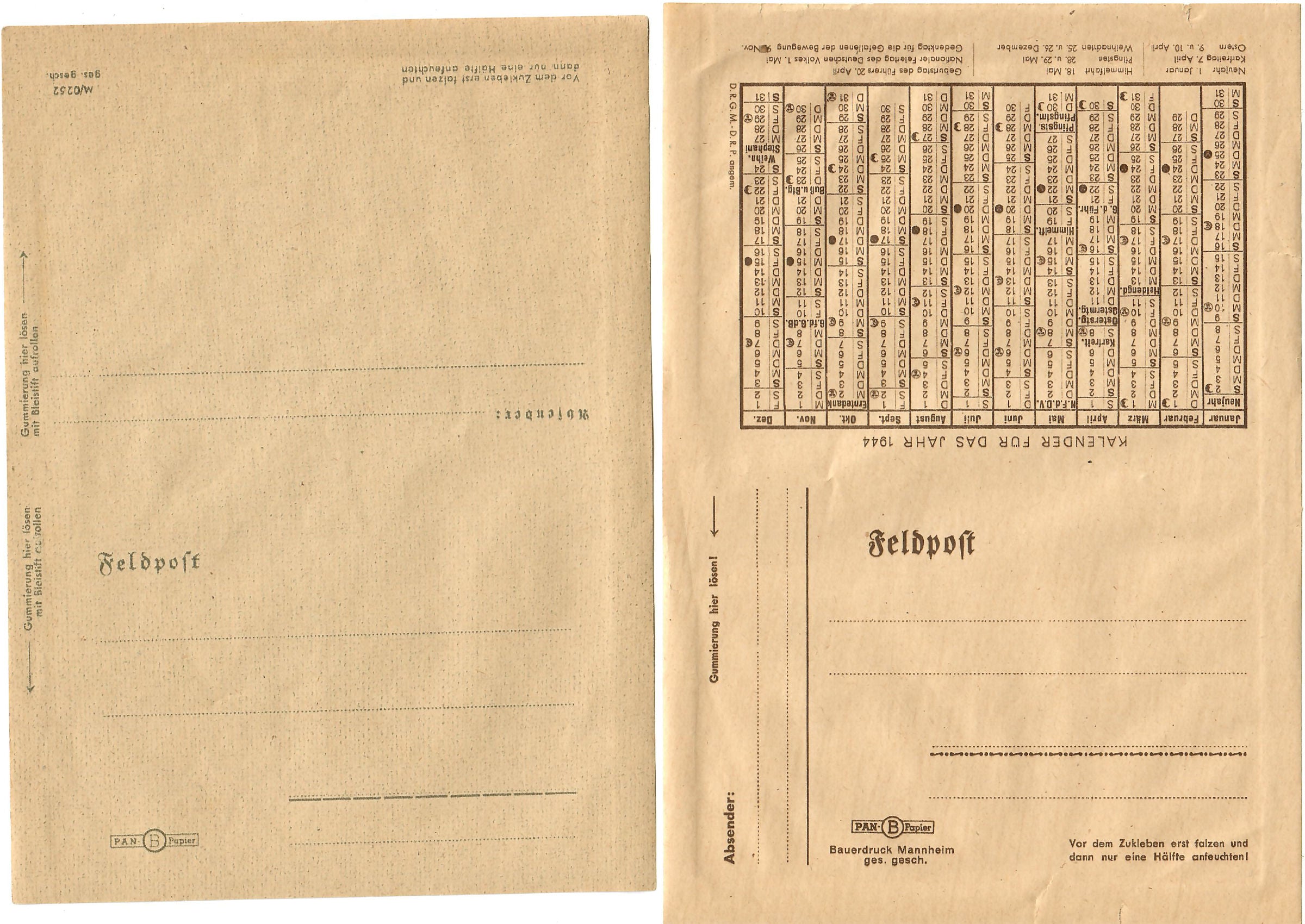 - Some unused Feldpost address labels, which still look to have unused adhesive on the edges.