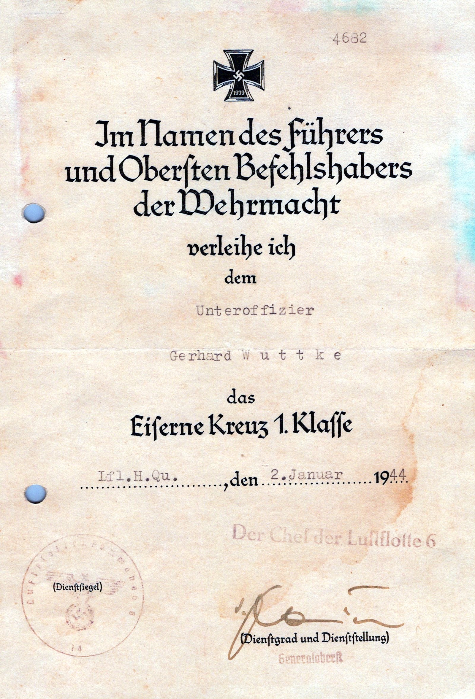 - Eisernes Kreuz 1. Klasse (Iron Cross 1st Class) – awarded January 2, 1944