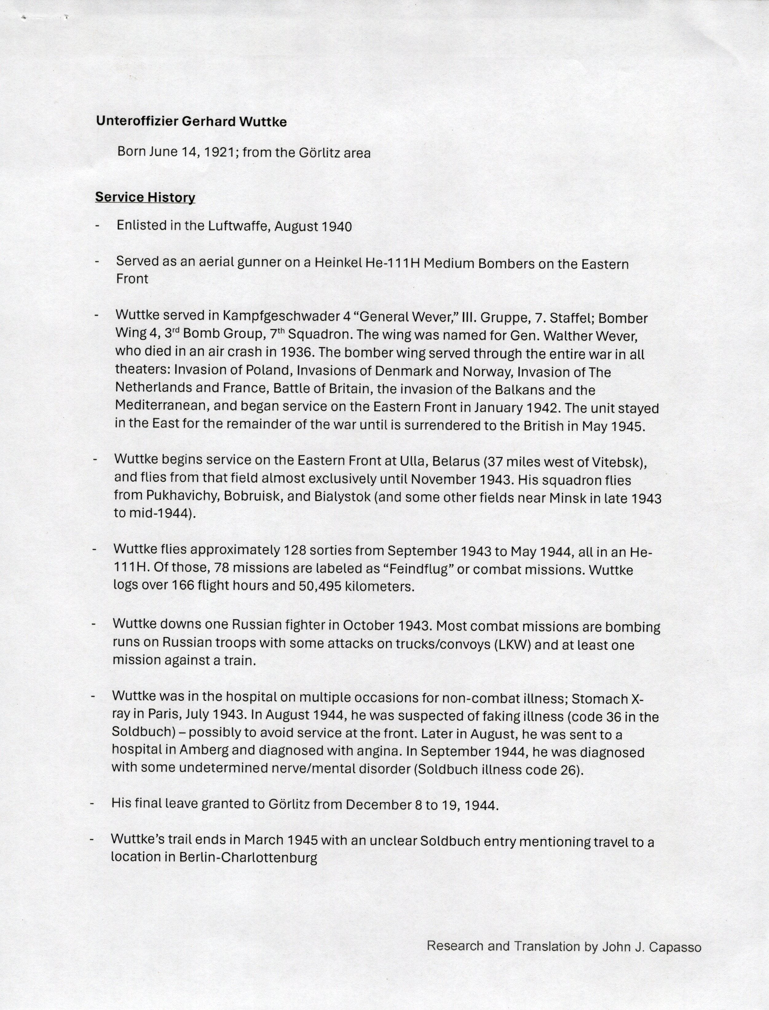 - Served as an aerial gunner on a Heinkel He-111H Medium Bombers on the Eastern Front