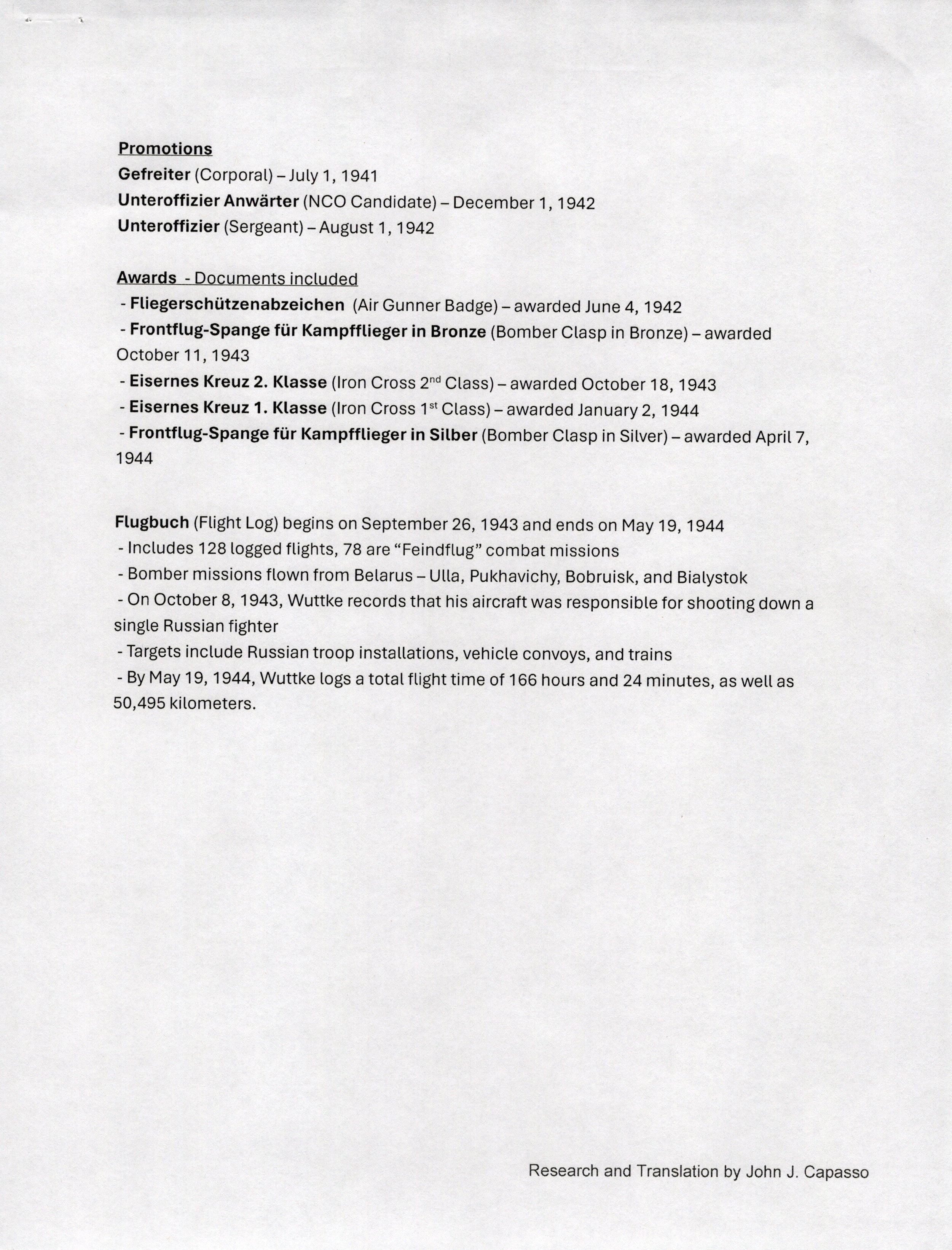 - Includes 128 logged flights, 78 are “Feindflug” combat missions
