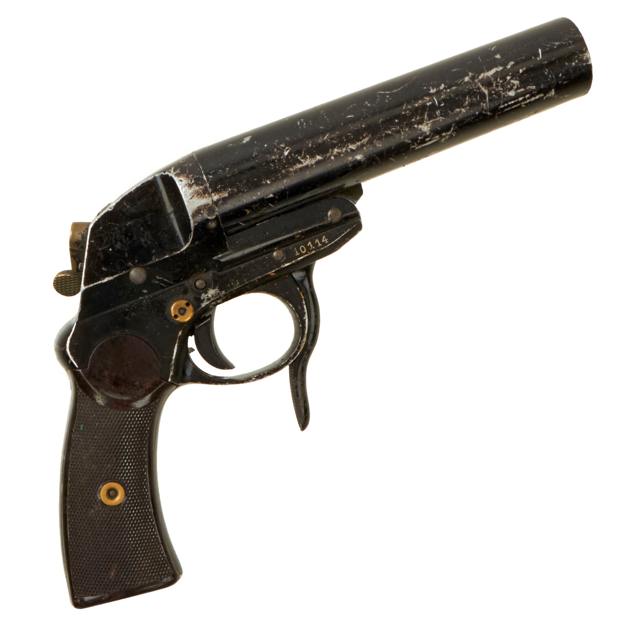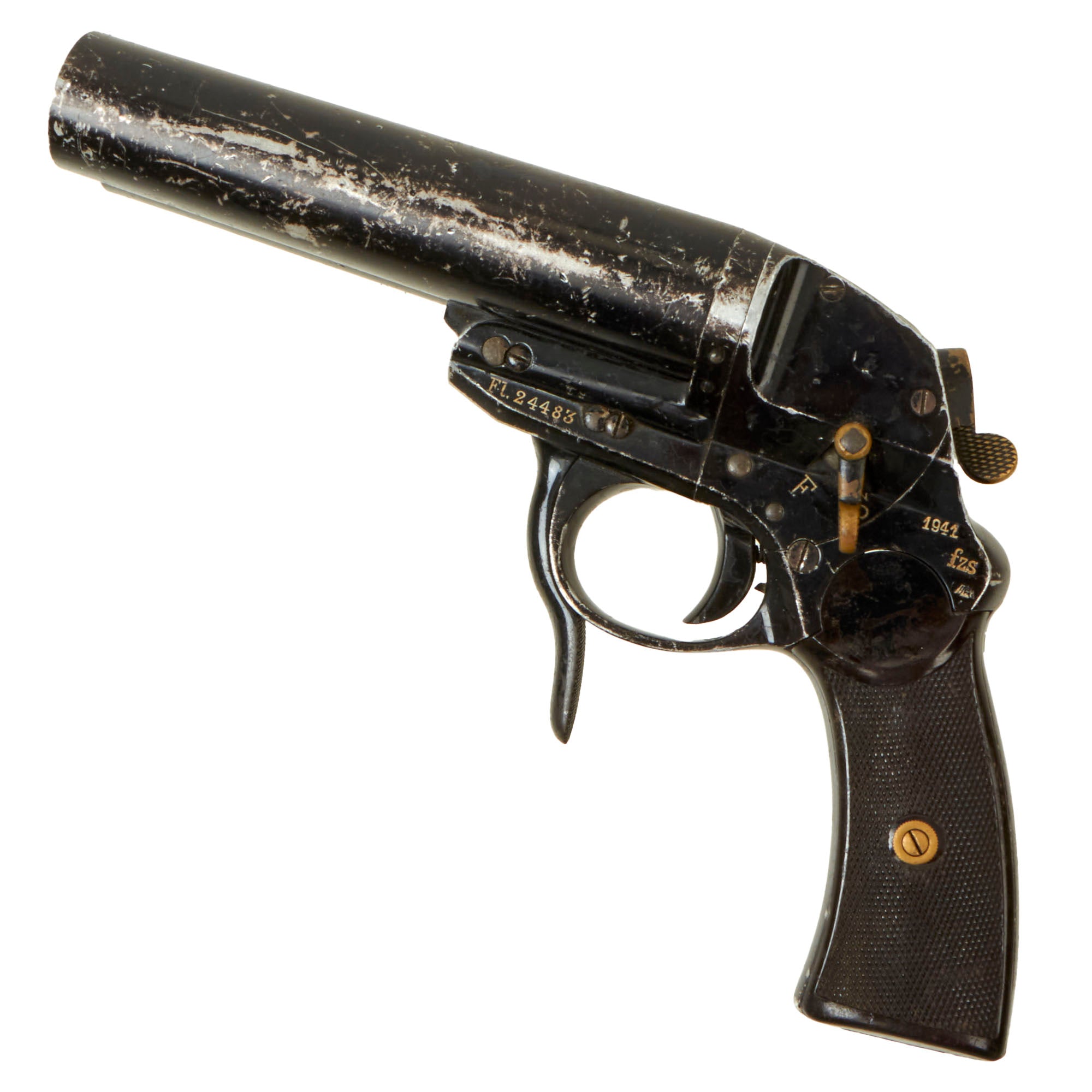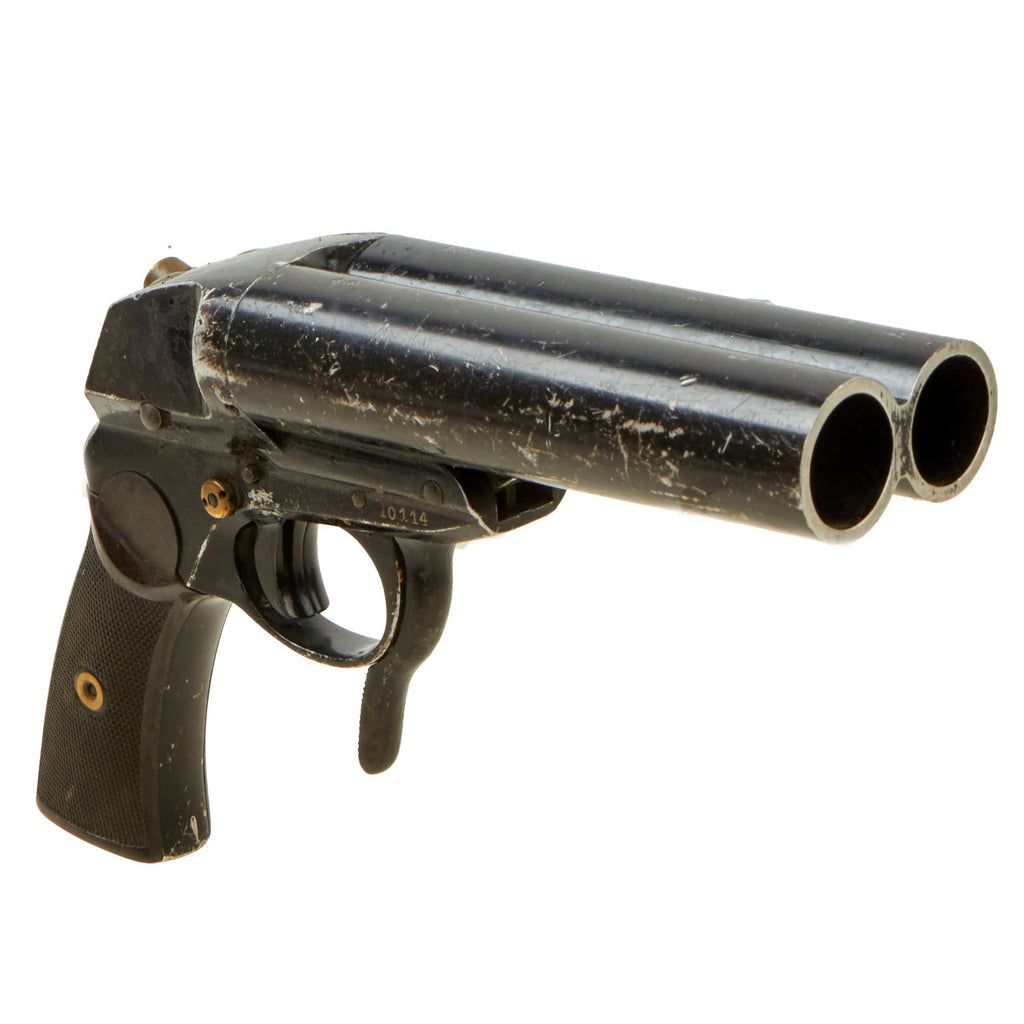 Original Item: Only One Available. This is a good conditioned example of the Luftwaffe Flieger-Leuchtpistole L or Aviators Flare Gun L. These double-barreled, 26.5mm (4 Bore) signal pistols were issued to Luftwaffe aircrews in order to give them a method of communication that did not rely on their radio transmitters.