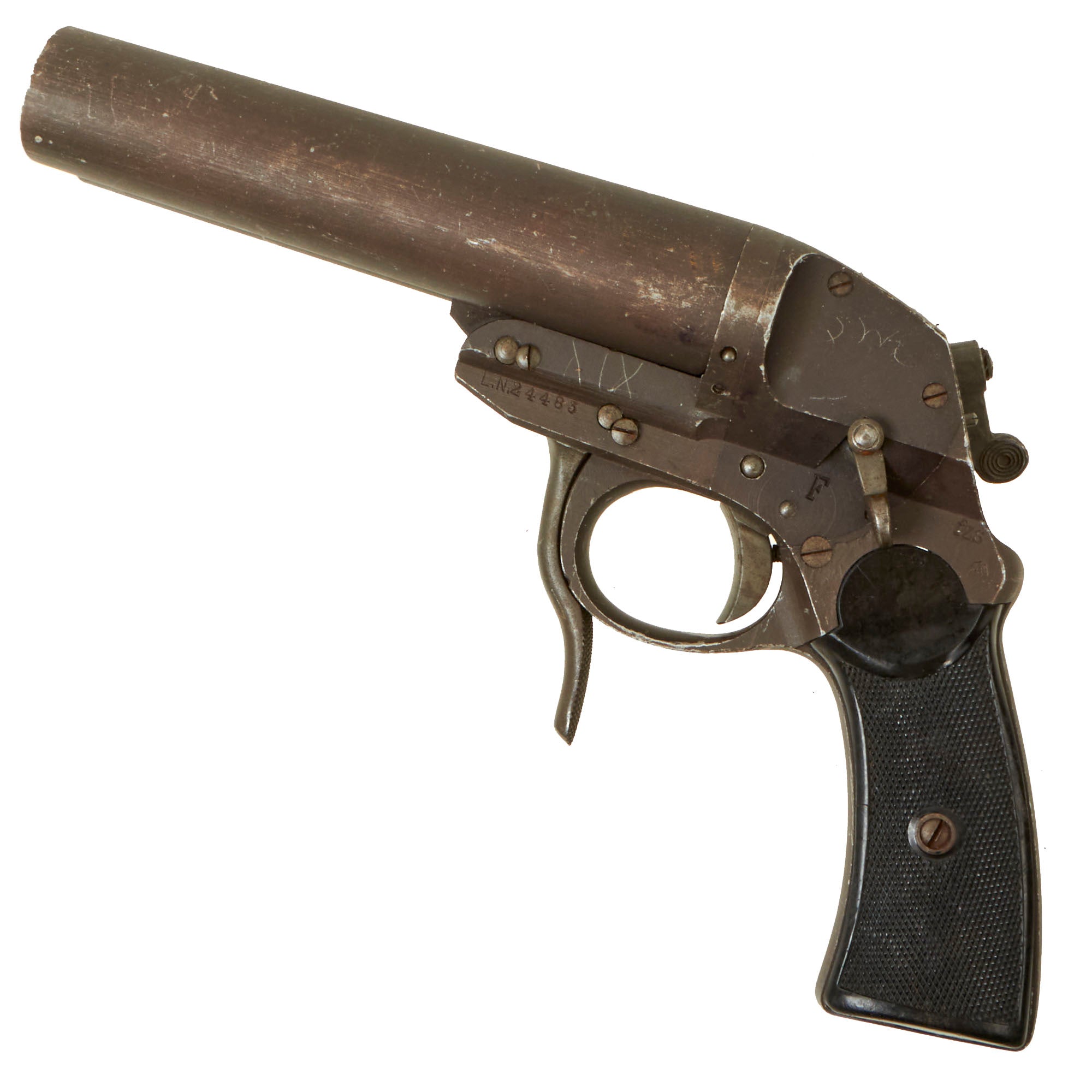 Original Item: Only One Available. This is n excellent condition example of the Luftwaffe Flieger-Leuchtpistole L or Aviators Flare Gun L. These double-barreled, 26.5mm (4 Bore) signal pistols were issued to Luftwaffe aircrews in order to give them a method of communication that did not rely on their radio transmitters.