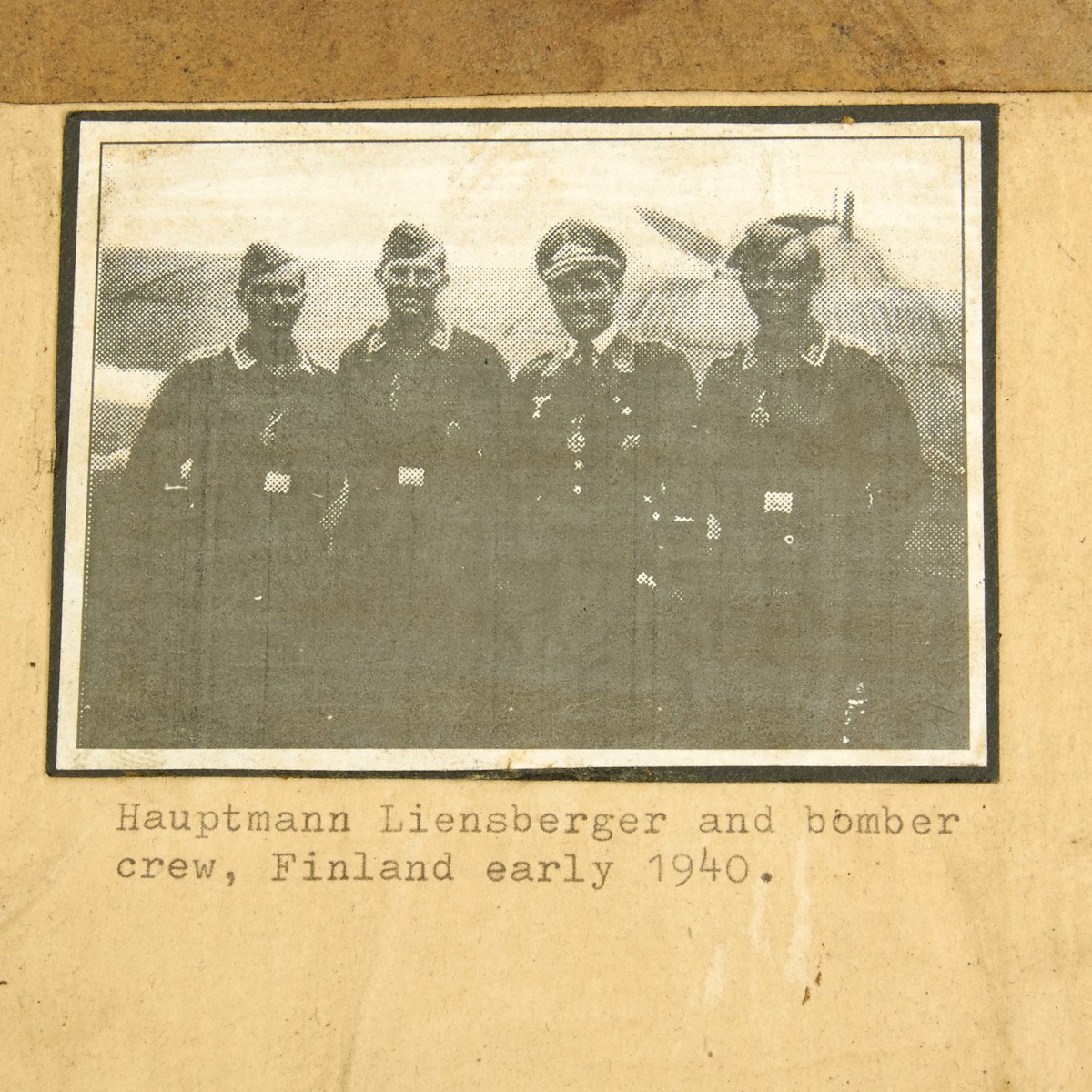 Reverse of board has photo of Hauptmann Horst Liensberger with crew in Finland 1940