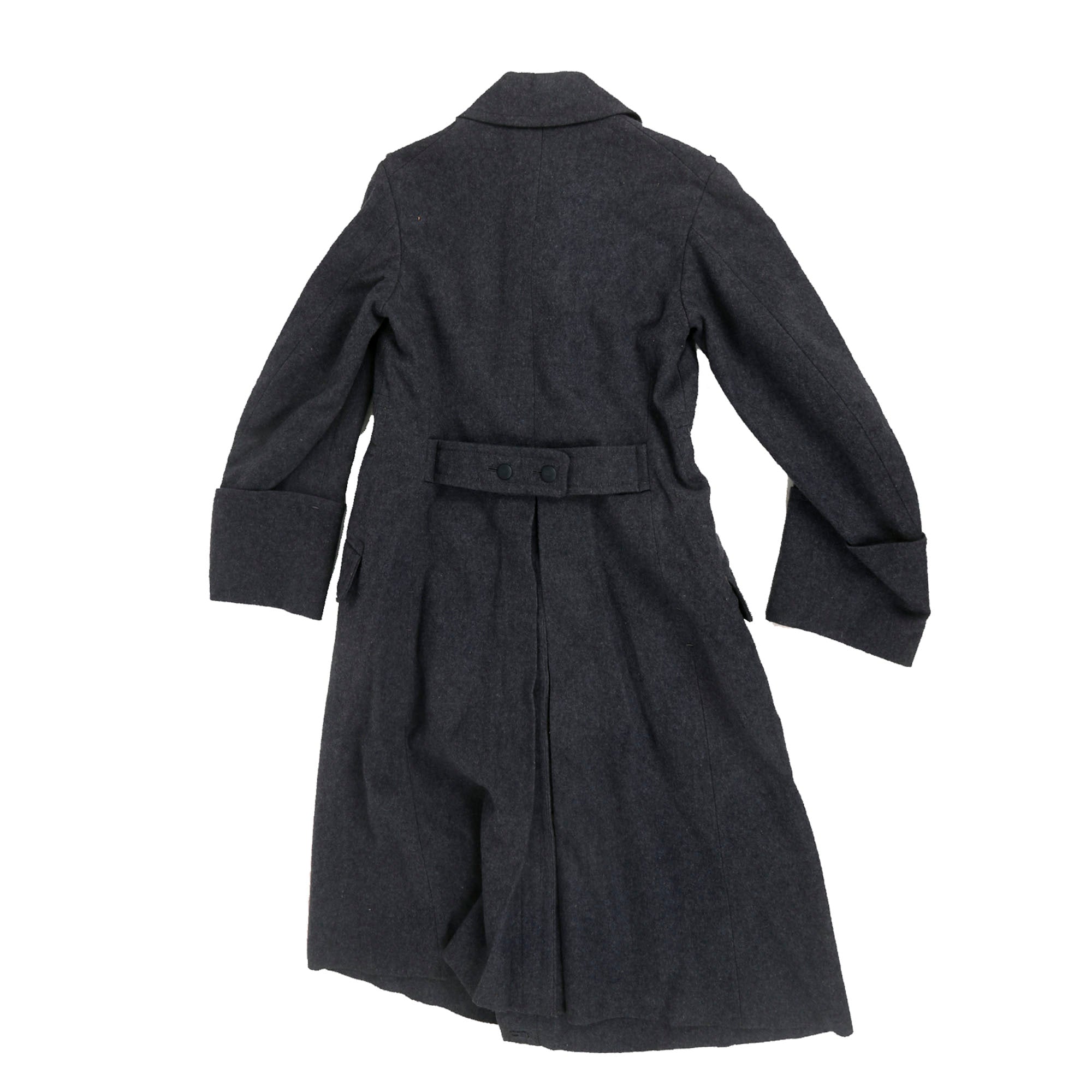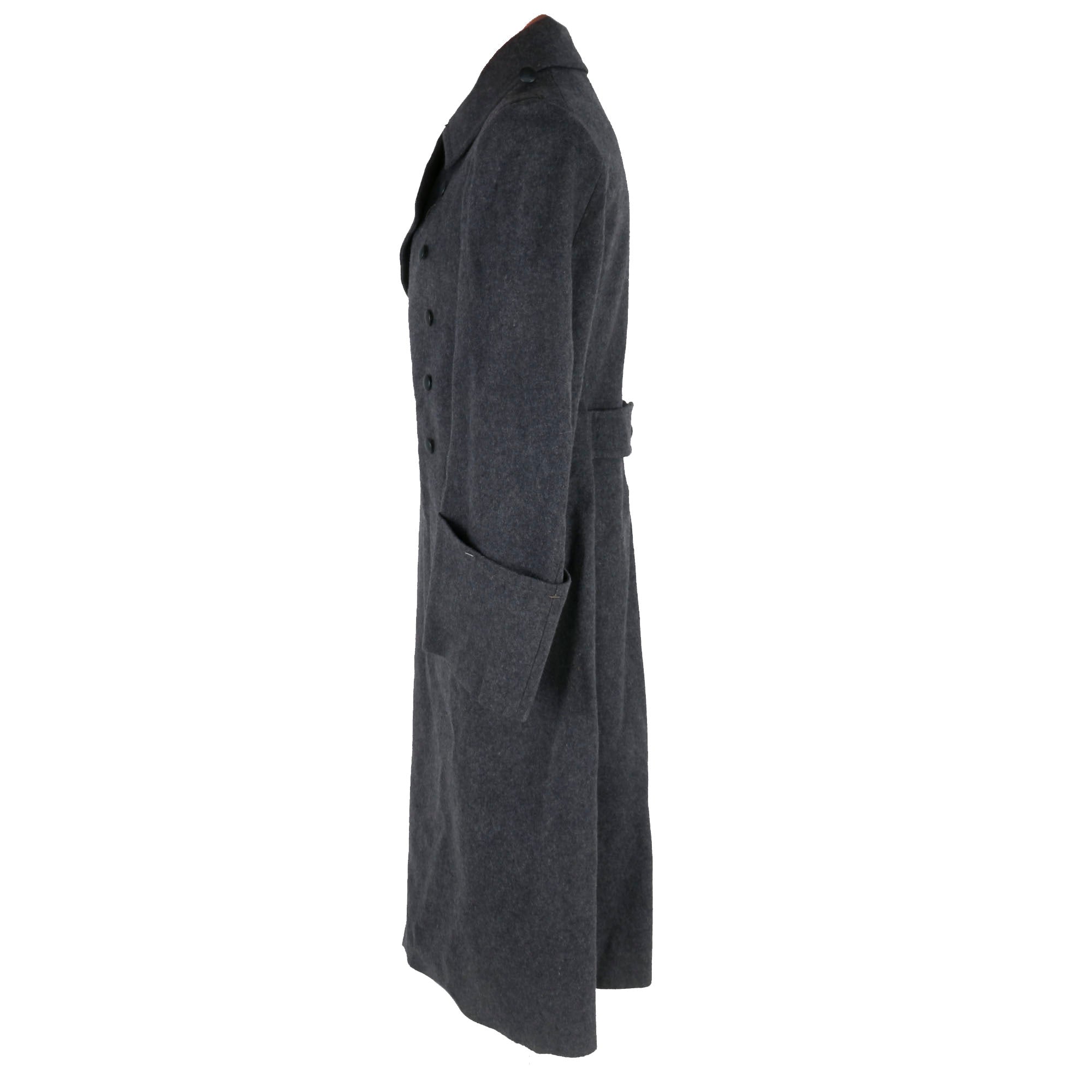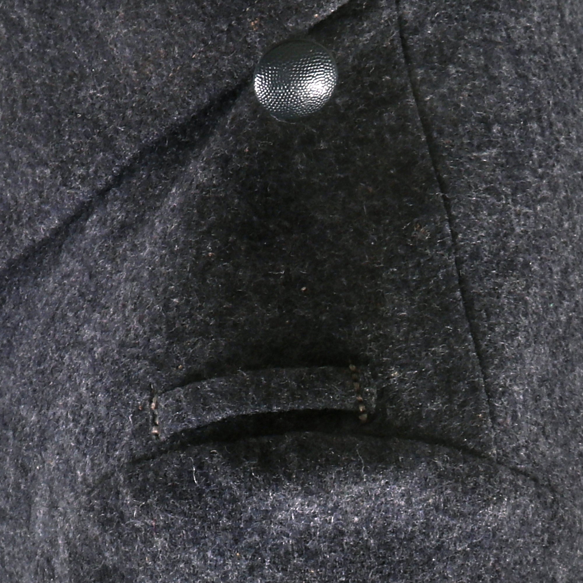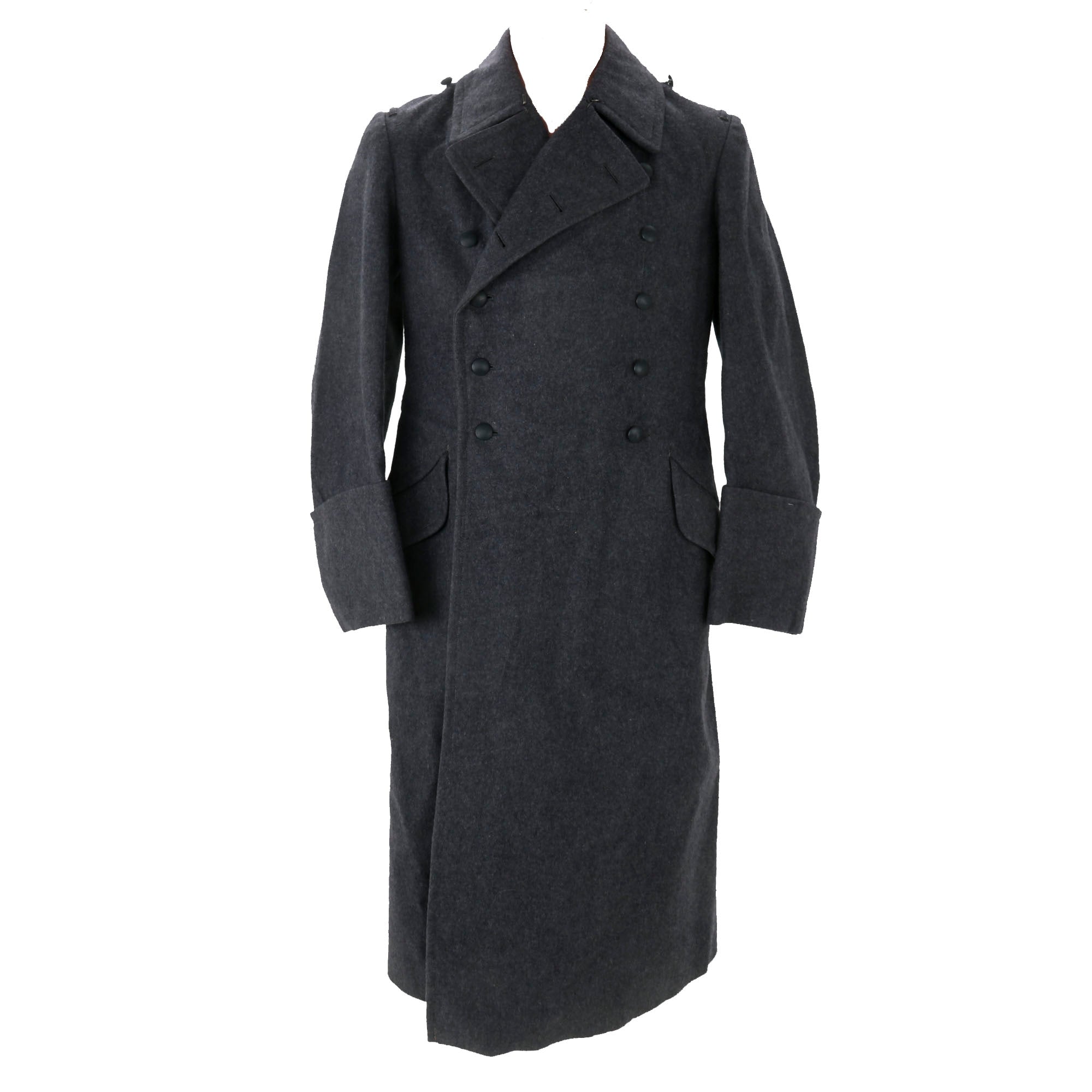 Original Item: Only One Available. This is a lovely WWII manufactured Luftwaffe greatcoat for a Luftwaffe Enlisted Man or Non-Commissioned Officer (NCO). It is offered in very good condition and constructed of Luftwaffe fliegerblau (flyer's blue) blue grey wool with a lightweight canvas lining in the same color. It features two flap covered waist pockets and the classic double-breasted front closure, with 5 buttons on each side. All of the buttons are non-magnetic, and look to be made possibly from zinc alloy. They are painted Luftwaffe blue, and all look to be maker marked on the back.