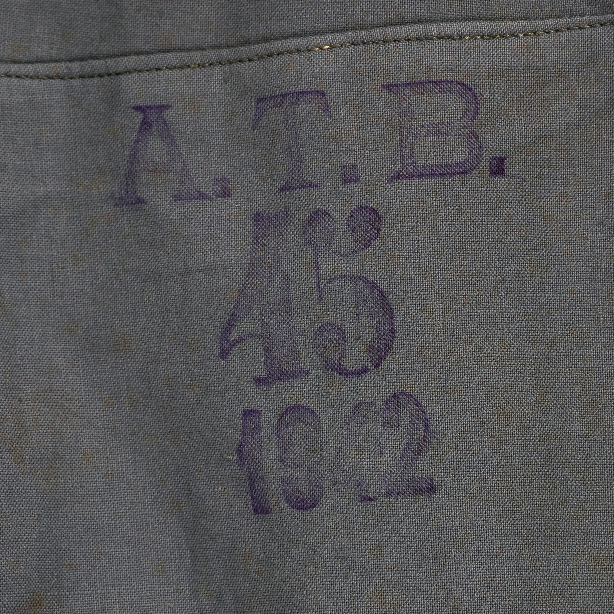 The left breast interior pocket is nicely ink stamped with the maker and date information: