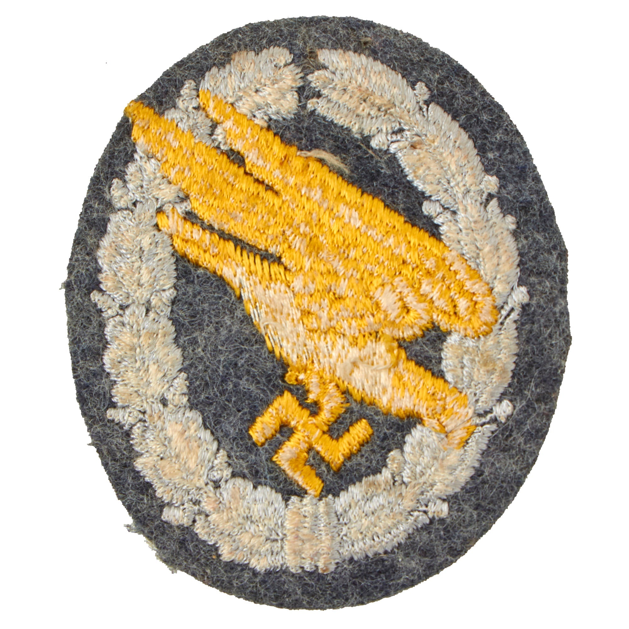 Original Item: Only One Available. The Parachutist Badge (Fallschirmschützenabzeichen) was a badge awarded to qualified parachutists of the Wehrmacht and the Waffen-SS of NSDAP Germany. The badge was first established by order of Hermann Göring on 5 November 1936. It was originally awarded to Luftwaffe personnel after completion of the required number of six jumps. After this they were eligible to become a Fallschirmjäger (paratrooper).
