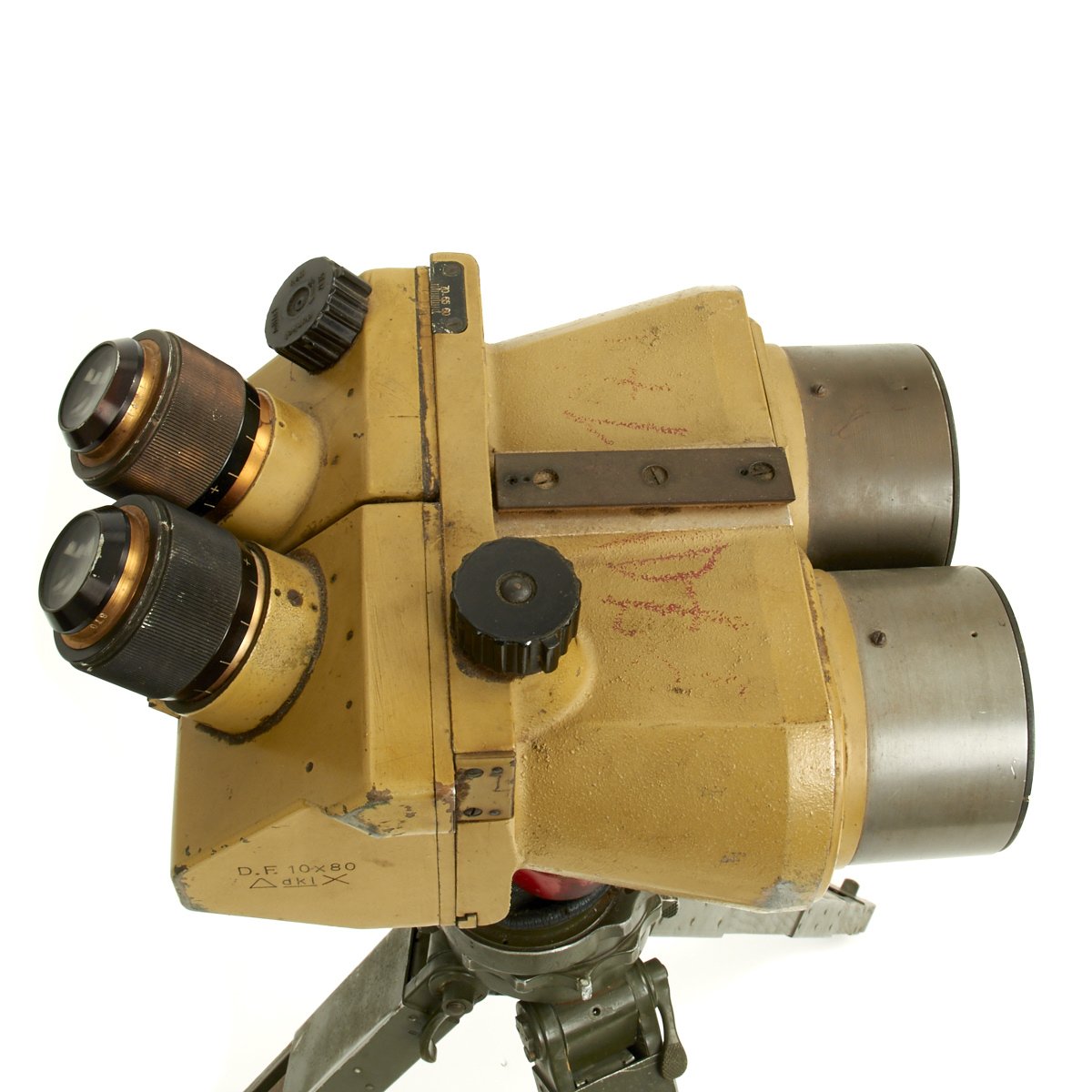 Original Item: Only One Set Available. This is a great German World War Two Doppelfernrohr (double telescope) 10 x 80 German Luftwaffe Flak issue painted gun sight binoculars, produced by Josef Schneider & Co. optics. These were used for direction sighting on the German Flak 36 (88 mm) Gun, and come complete with head rest, offered in excellent condition.
