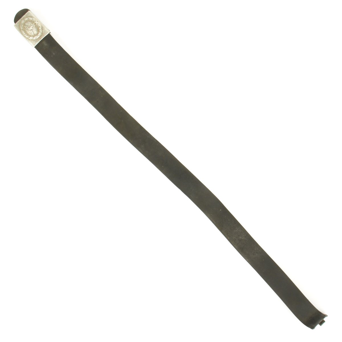 The thick black leather belt is in excellent condition and is nicely stamped: