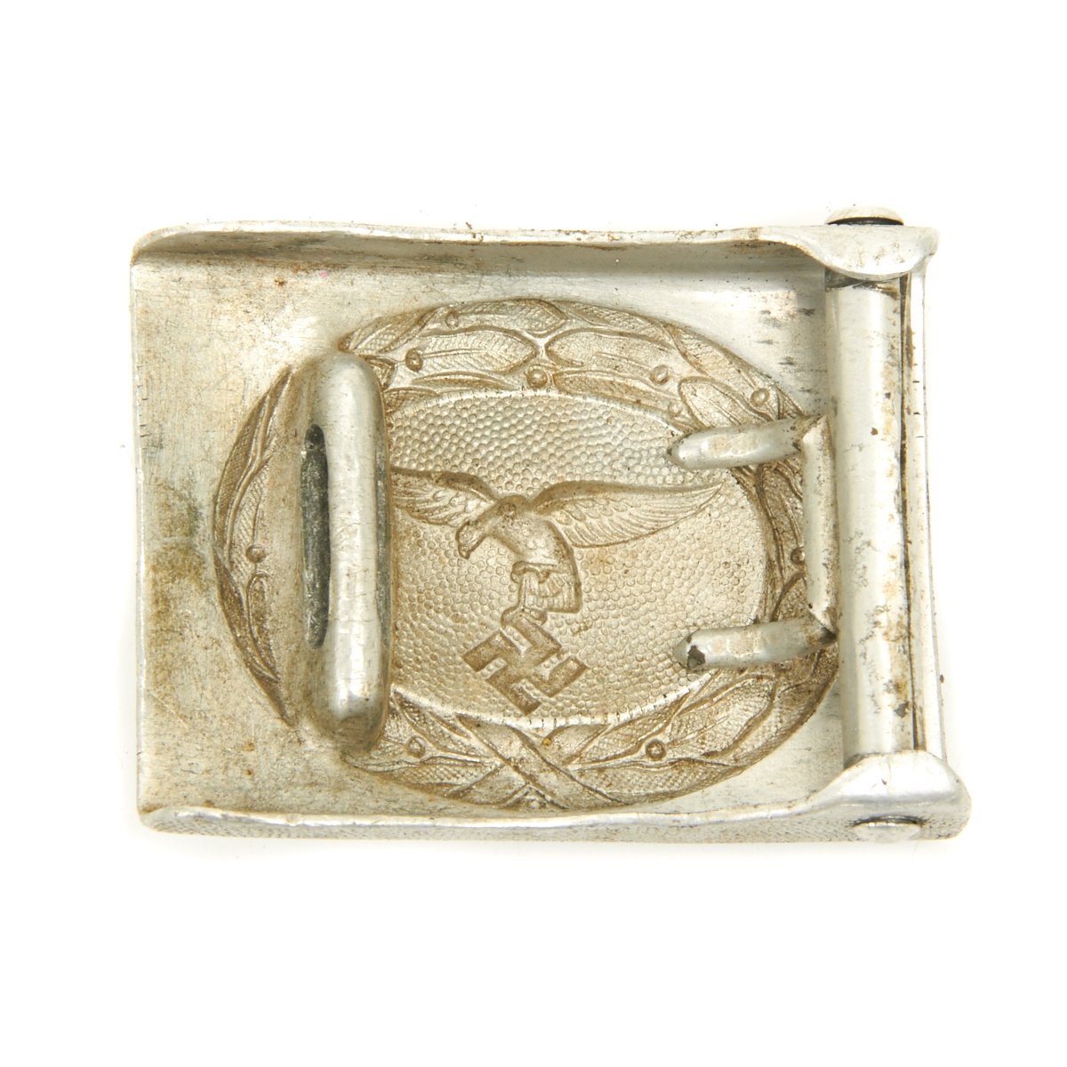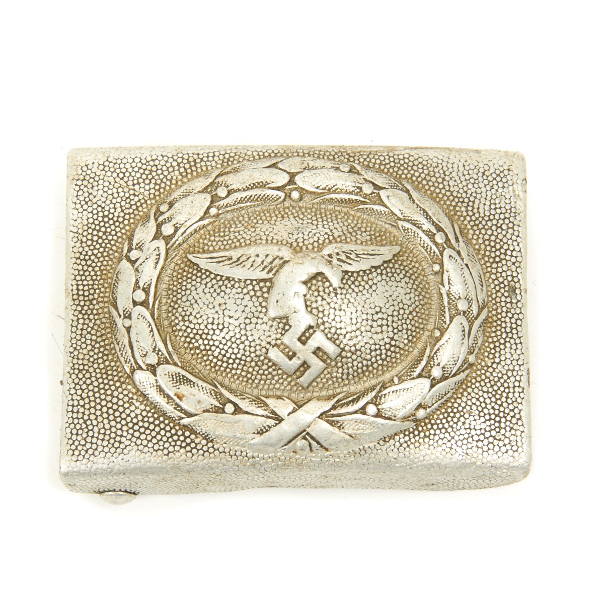 Original Item: Only One Available. This is a very nice WWII German Wehrmacht Luftwaffe EM/NCO's Belt Buckle (Koppelschloß). It is embossed with the early Luftwaffe droop tail eagle. Nice aluminum construction box buckle with a pebbled background. The buckle is in very condition, the underside is not maker marked.