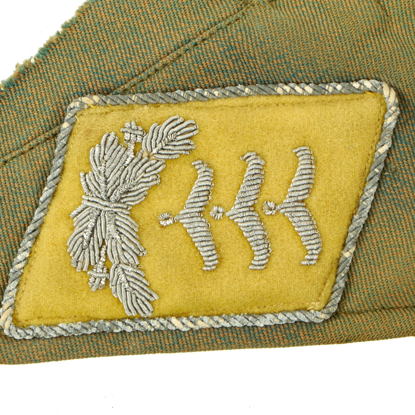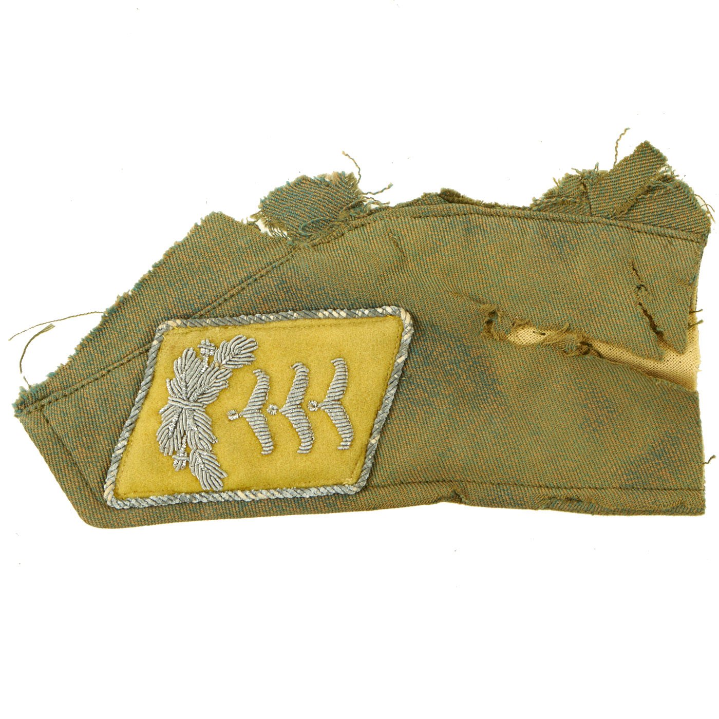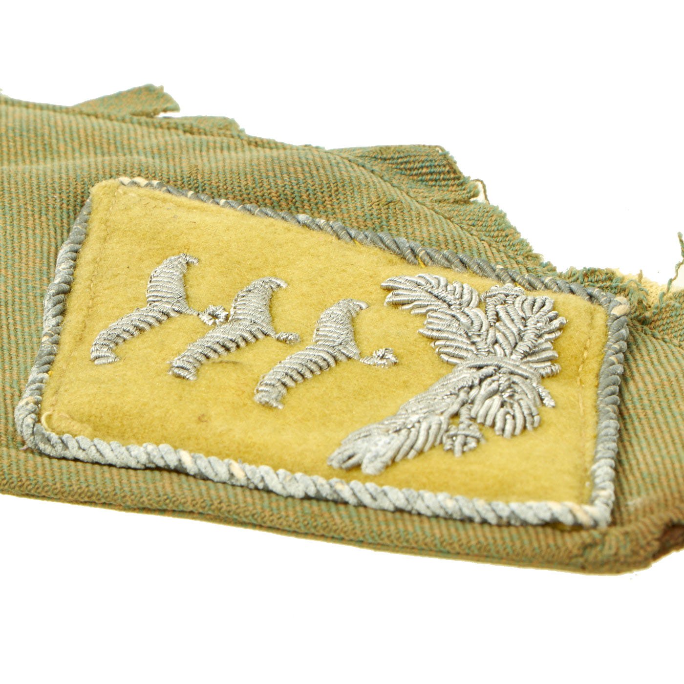The collar and insignia both show some lovely service wear, with some tearing and wear through on the fabric. This definitely looks to be taken off a captured uniform used in service, not something found unissued after the war. Very decorative and ready to display!