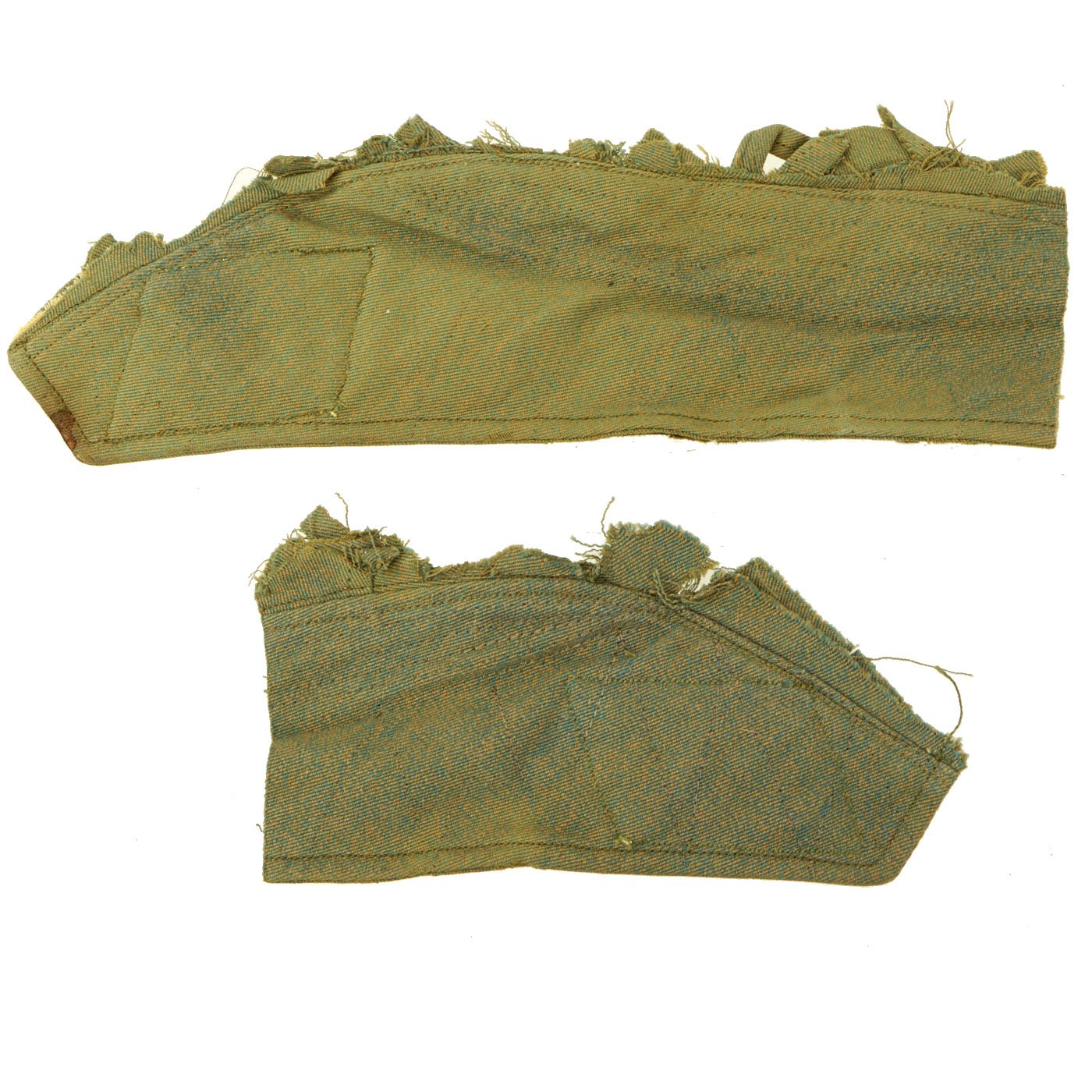 Original Items: Only One Set Available. Here we have a very nice German WWII Luftwaffe Uniform collar, which was cut off the uniform, and also then cut through about 2/3 of the way through, probably to make it easier to display. The unique camouflage pattern on it looks to be typical of the stippled type used on the drop uniforms for Fallschirmjäger (paratroopers) during WWII. This is further reinforced by the yellow color collar flaps that are still installed.