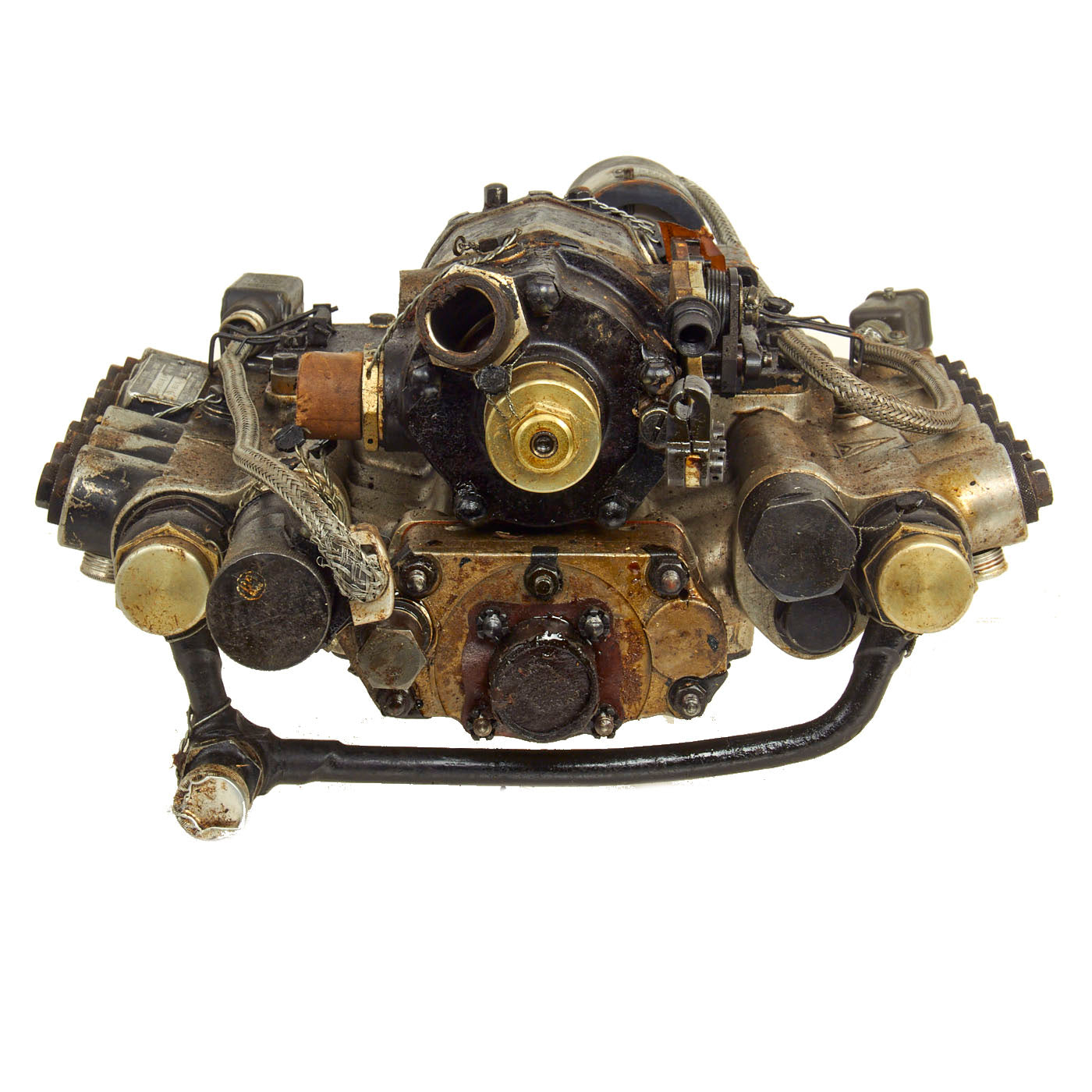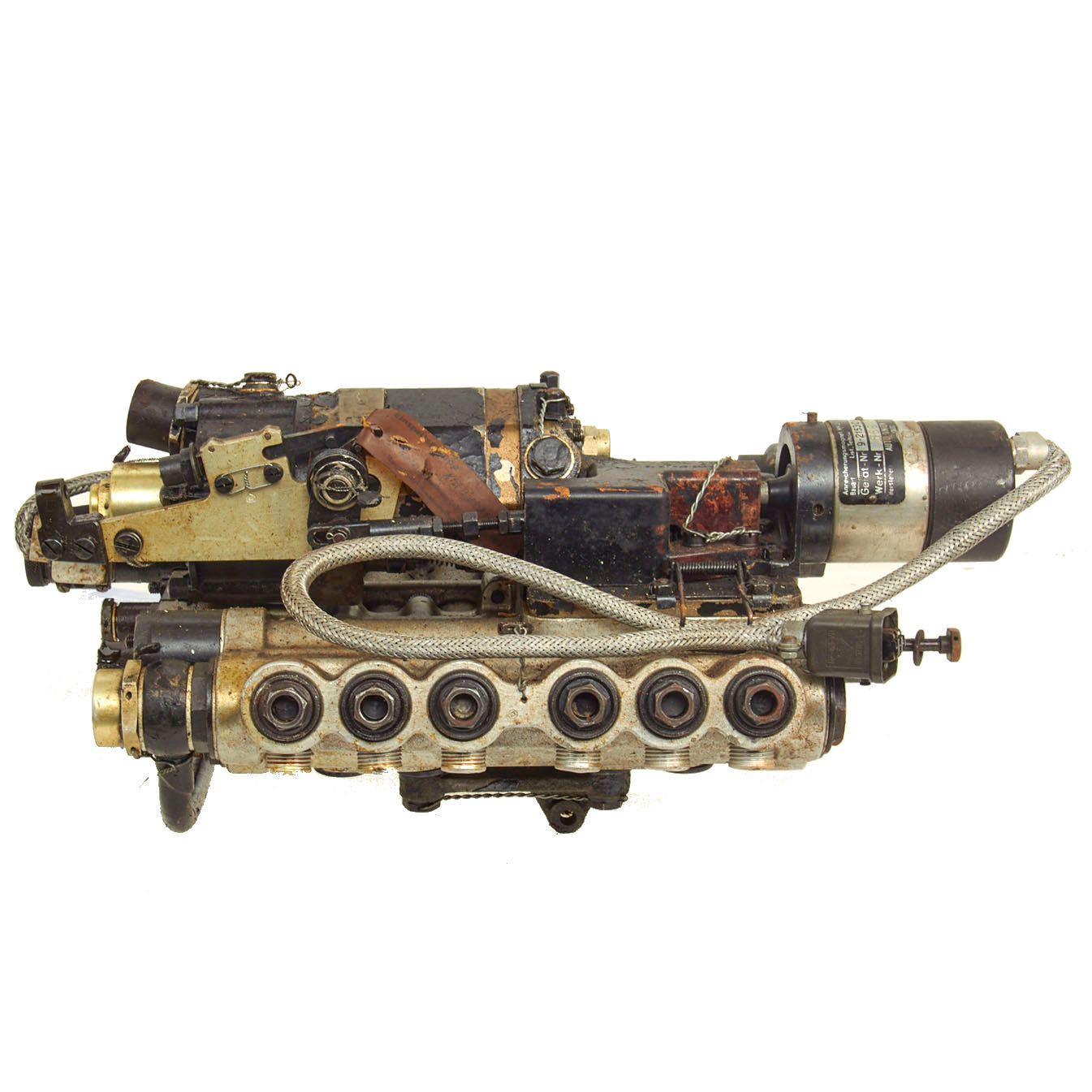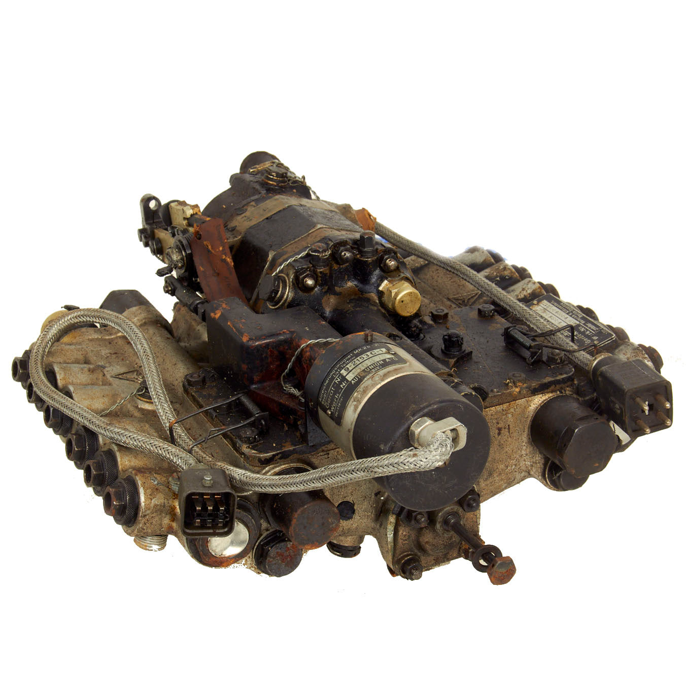 Original Item: Only One Available. This is a fuel injection pump model 9-2009 D-1 manufactured by Junkers Flugzeug- und Motorenwerke AG (Junkers Aircraft and Motor Works) more commonly Junkers which was a major German aircraft and aircraft engine manufacturer. It produced some of the world's most innovative and best-known airplanes over the course of its fifty-plus year history in Dessau, Germany. It was founded there in 1895 by Hugo Junkers, initially manufacturing boilers and radiators. During World War I, and following the war, the company became famous for its pioneering all-metal aircraft. During World War II the company produced some of the most successful Luftwaffe planes, as well as piston and jet aircraft engines, albeit in the absence of its founder, who had been removed by the regime in 1934.