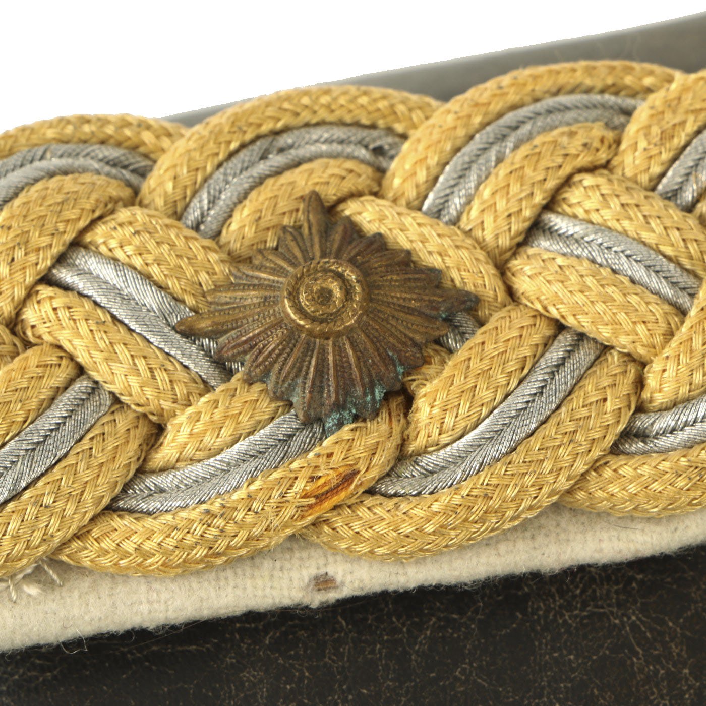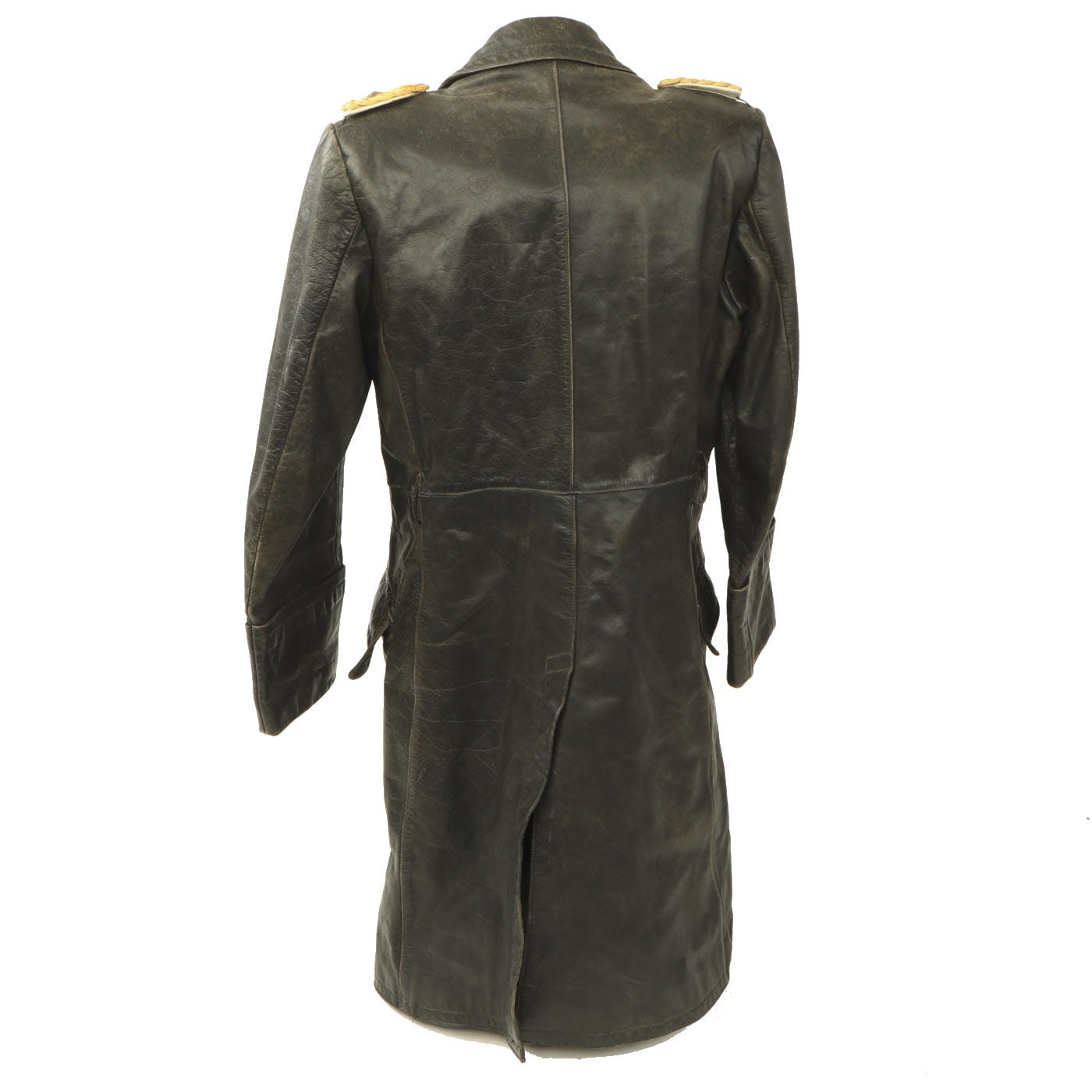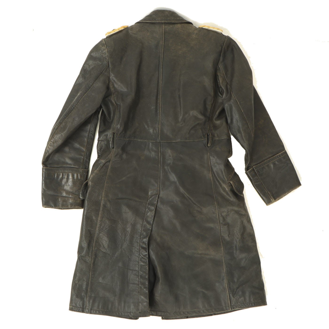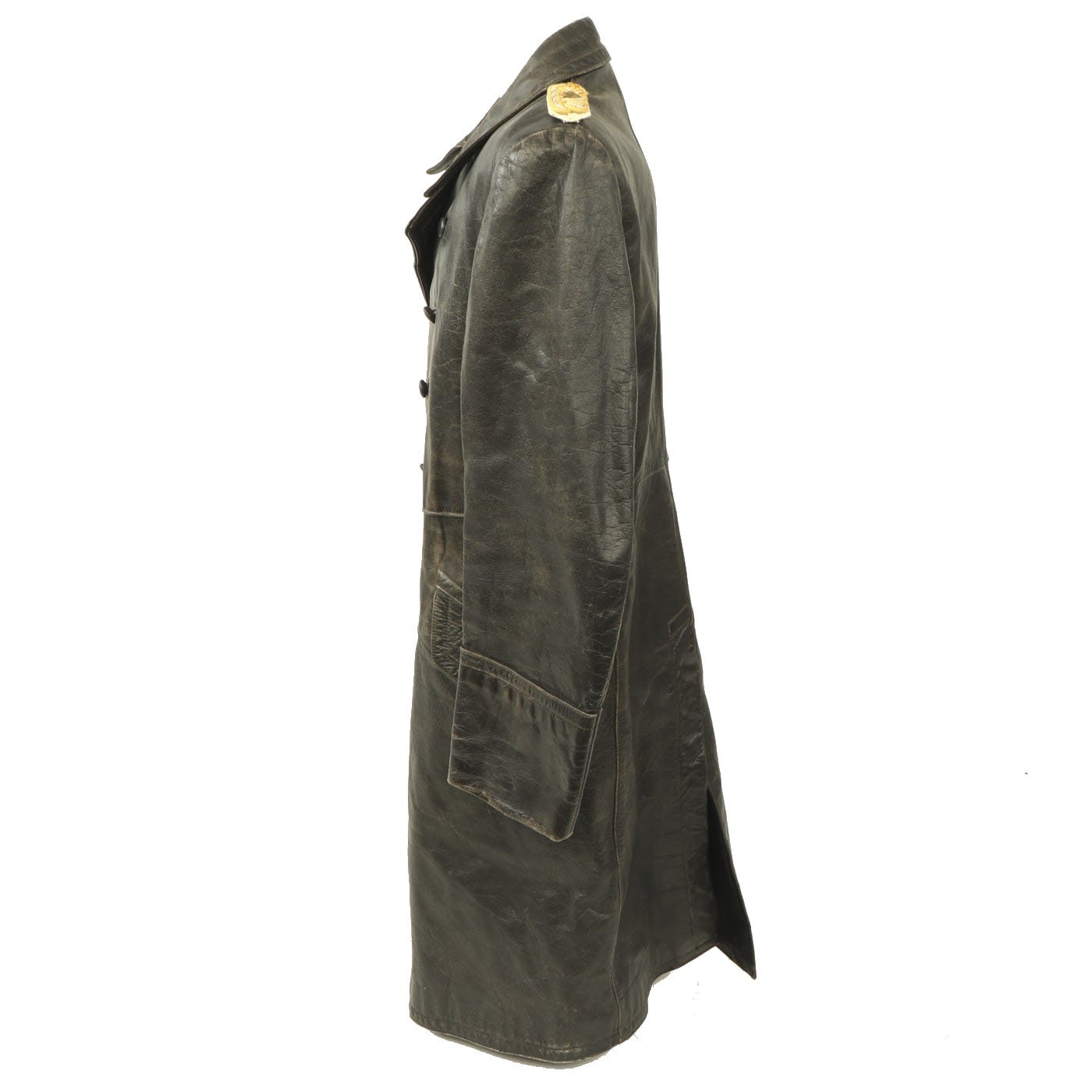 This extremely rare leather overcoat or greatcoat was a typical pattern used by officers in the German Wehrmacht. It is heavy grade leather with a quilted internal lining, manufactured with excellent quality and offered in very good condition. Interior HANNOVER tailor label and PRYM buttons, making this consistent with a genuine German mid-war production of a private purchase uniform piece. Also of particular note are very nice Russia braid Epaulets with one pip indicating a rank or Lieutenant General (Generalleutnant). Generals' shoulder boards were constructed similarly to those of field-grade officers, but comprised a length of silver Russia braid between two braided cords of gold bullion or Celleon. Since the resulting combination was wider, generals' boards were plaited in four 'loops' rather than five. Their buttons were gilt, and rank was indicated by zero to three silver pips, or crossed batons in the case of field marshals. The underlay was scarlet, except (from 1944) for generals of staff corps, who were instructed to wear Waffenfarbe instead. As was the case with Generalleutnant Hückel as he worked as an administrator for the majority of the WWII career.