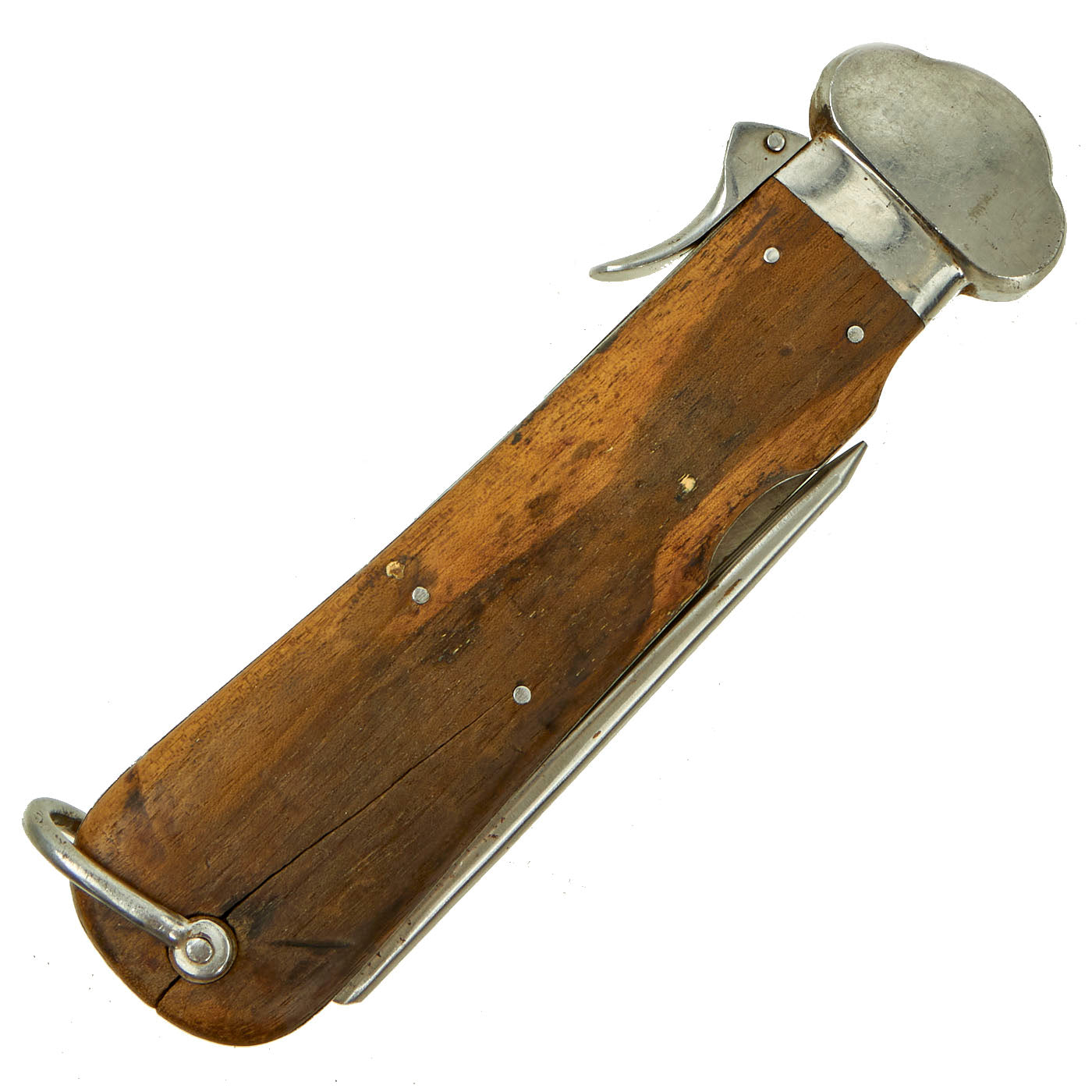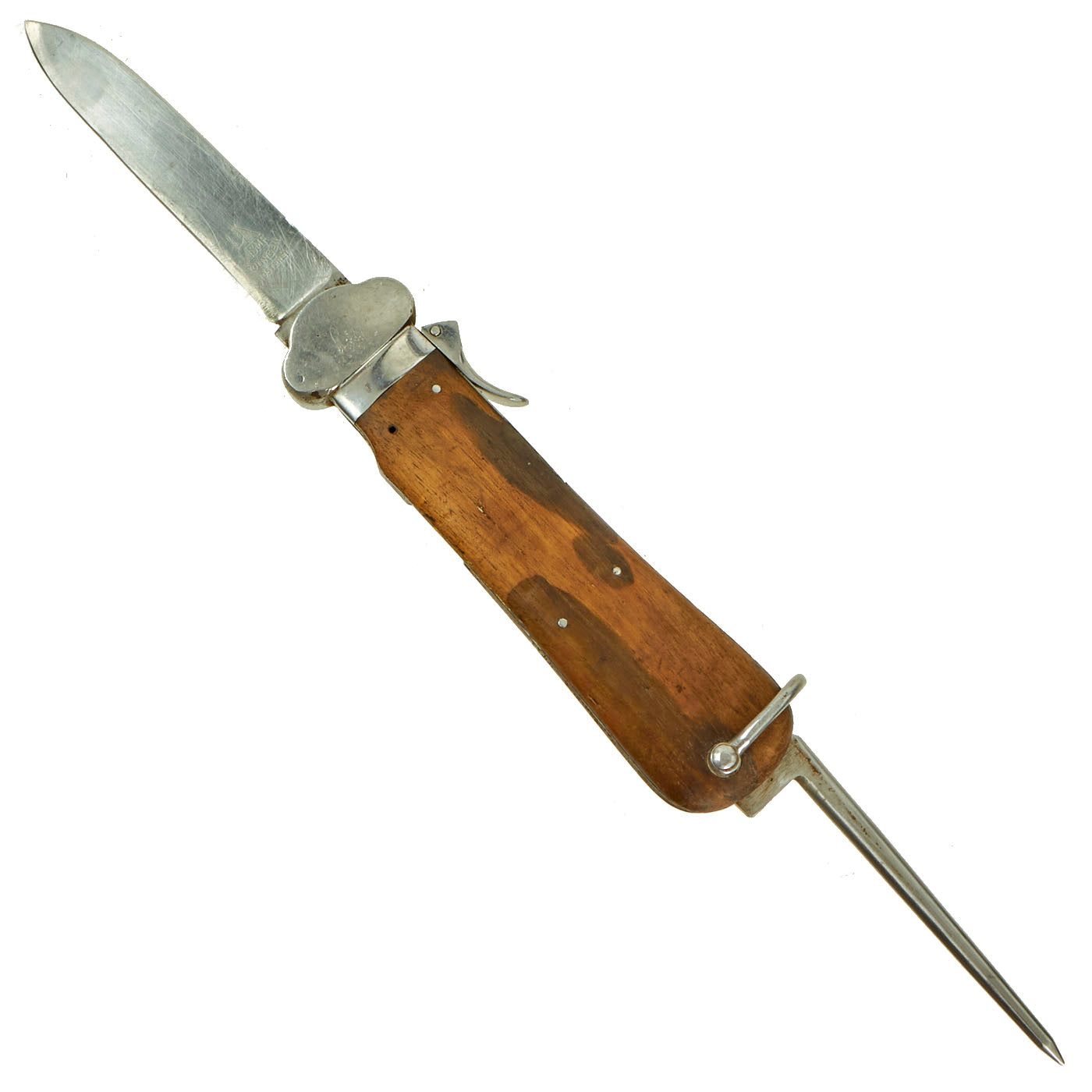 There are three principal types of wartime-era Luftwaffe Fallschirmjäger-Messers. The Type I FKm has wood scales (handle), was made from 1937-1941, and unlike successive models, has no 'takedown' capability. The Type II FKm is the same knife, but with takedown features, and was produced from 1941 to the end of World War II.