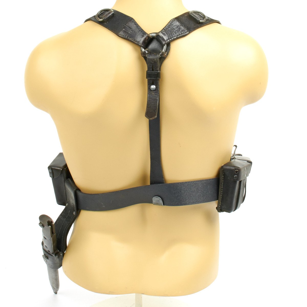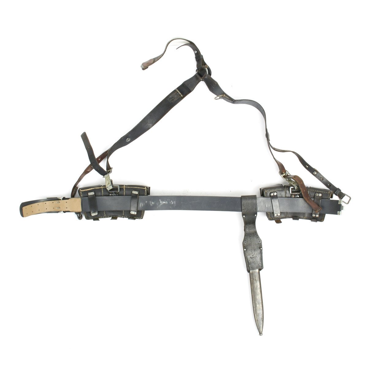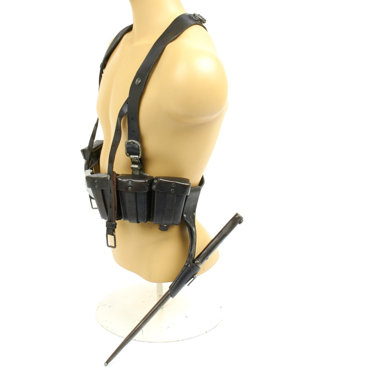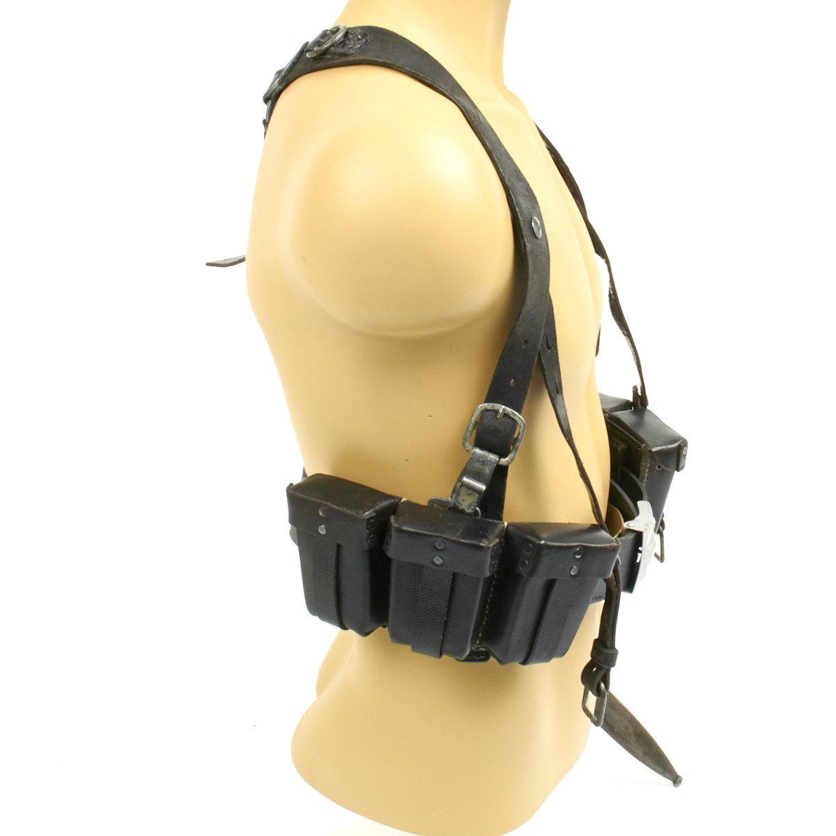 Original pair of two 98k black leather triple pouches with numeral codes to rear.