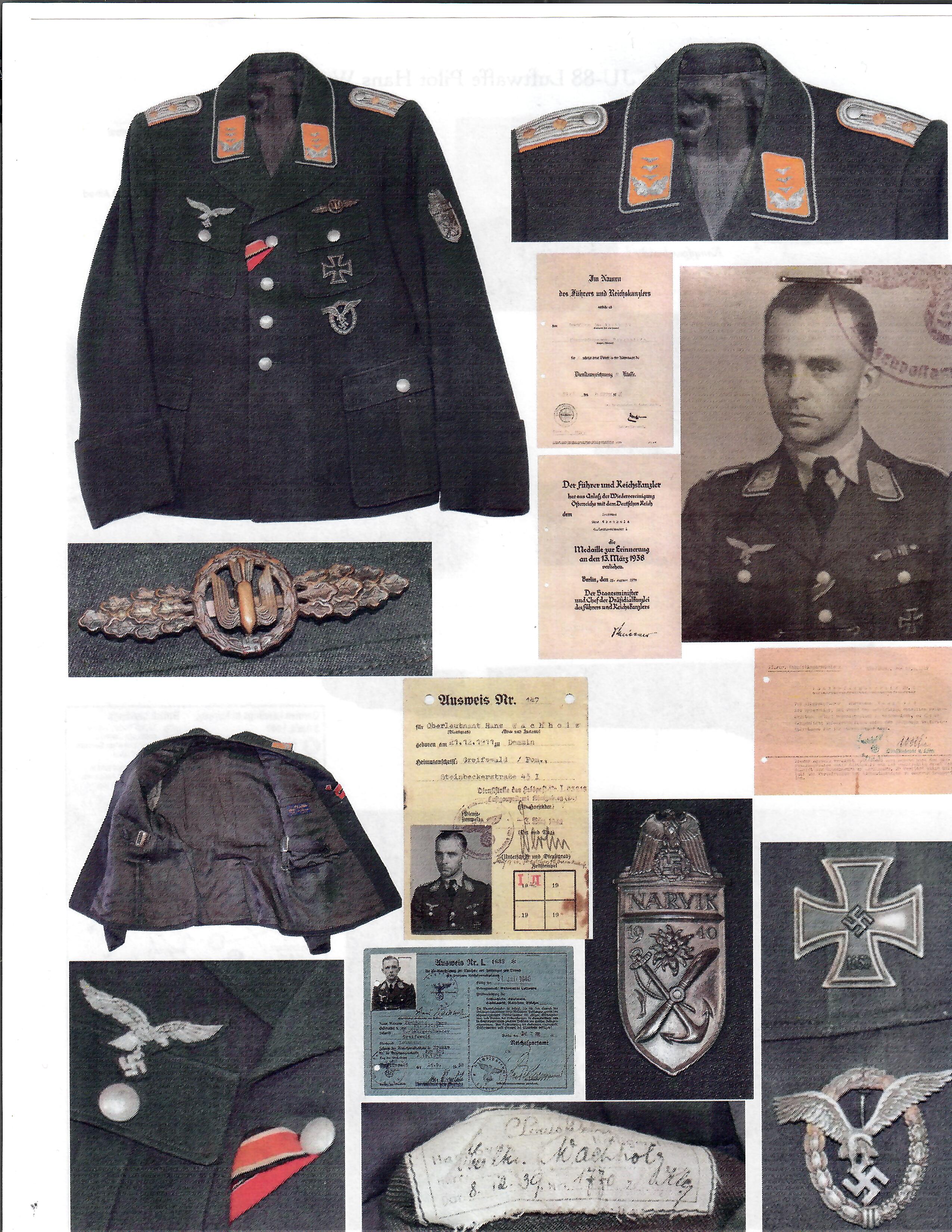 Original Item: Only One Available. This is an incredible German WWII Luftwaffe grouping, the likes of which we rarely get to see! This great grouping is named to Hans Wachholz, a member of the Luftwaffe who rose through the ranks from an NCO to attain the officer rank of Hauptmann (Captain), and was a pilot of the Junkers Ju 88 Bomber. It includes his Flight Blouse Tunic, various awards, identification and award documents, and even some historical information in the included binder. If you looking for a great fully researched Luftwaffe pilot grouping for your collection, this is it!