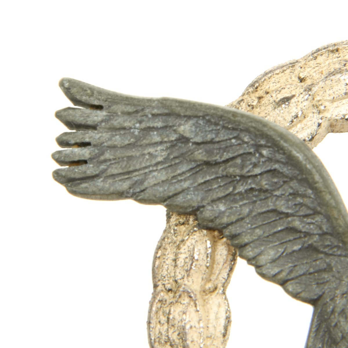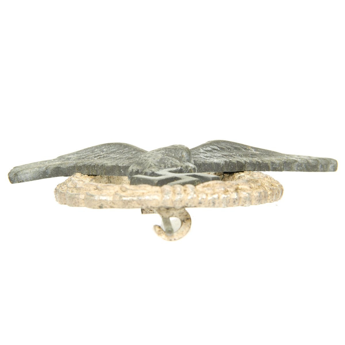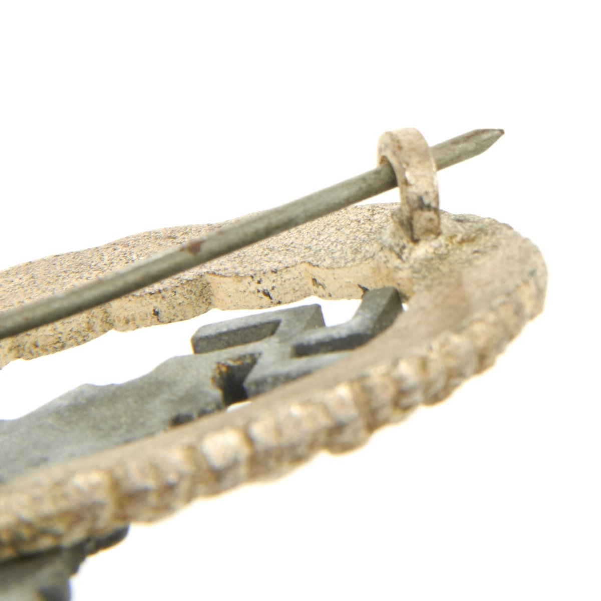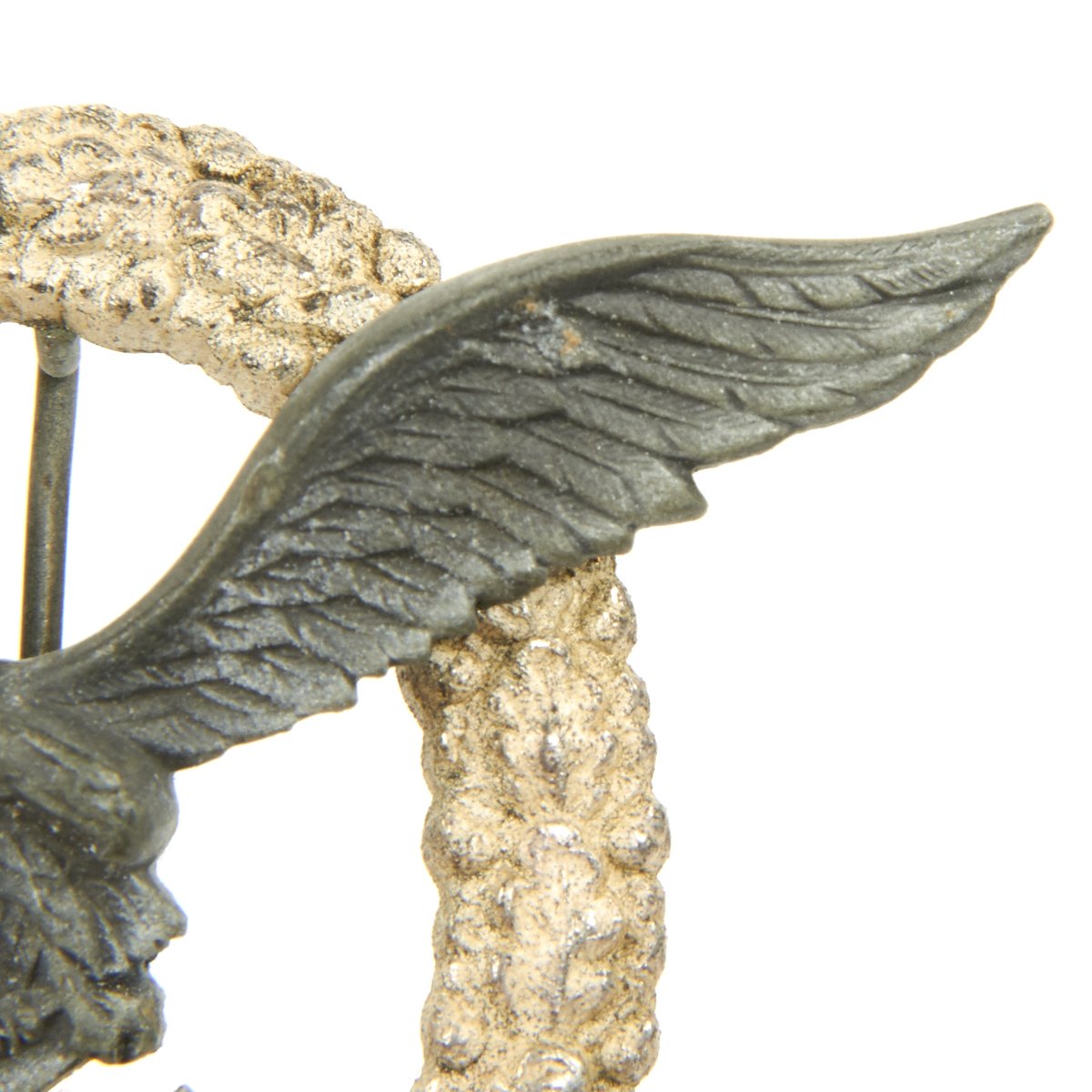 Original Items: Only One Available. This is a very nice condition badge two-piece construction, silvered zinc, magnetic pin, unmarked, 53 mm x 65.3 mm, vertical pin back, much silvering retained on wreath with minor surface wear, offered in very good condition. Complete with original pin.