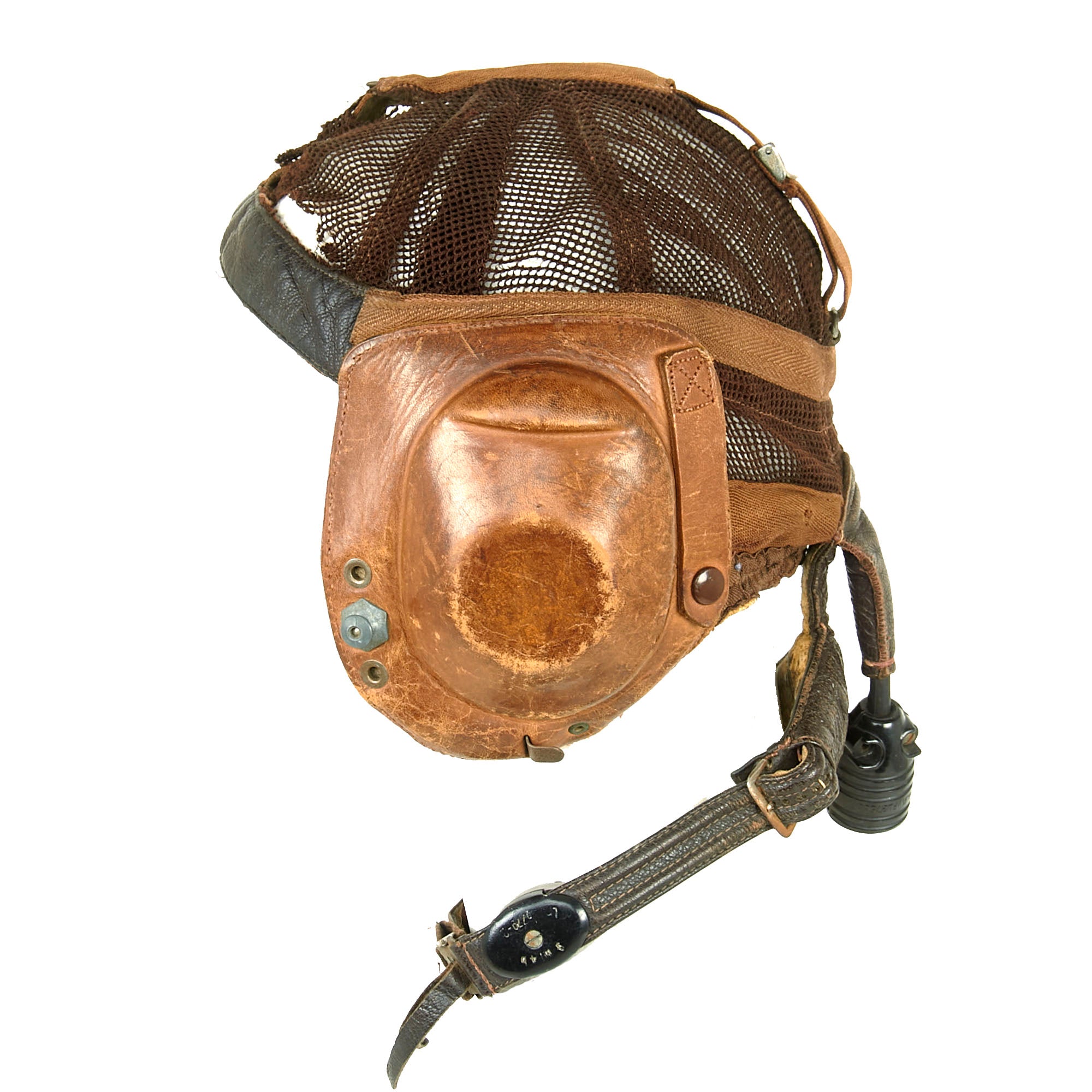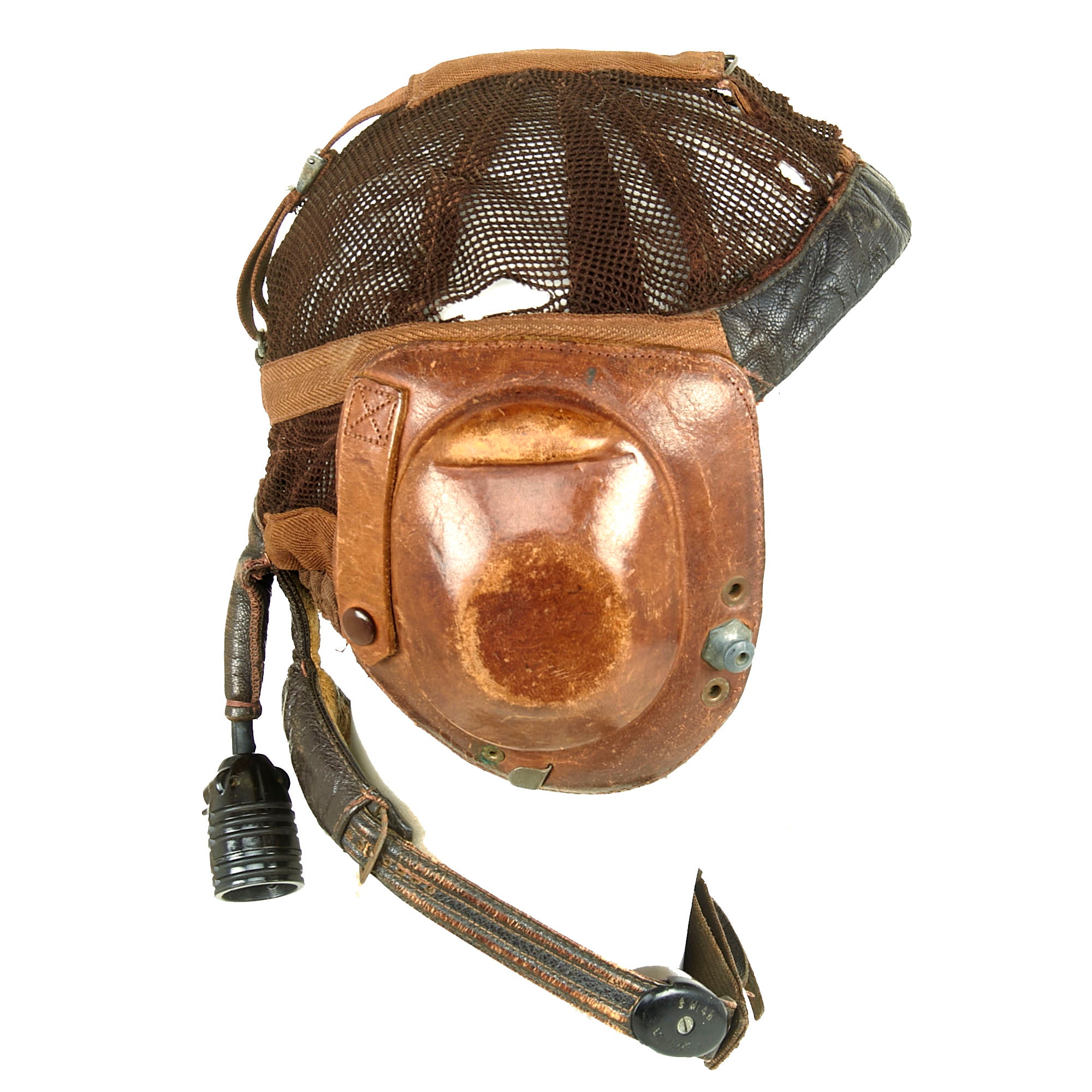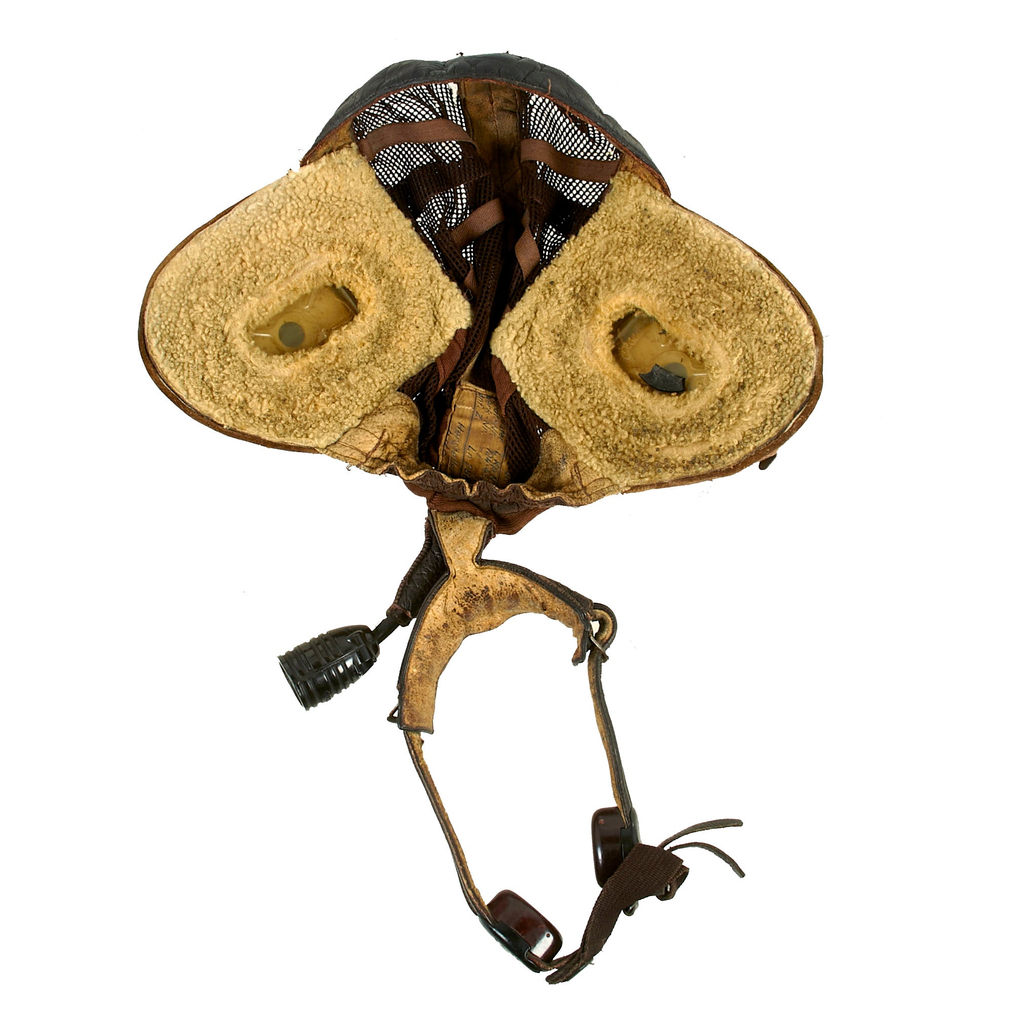 Original Item: Only One Available. The famous net-top helmet proved popular with Luftwaffe pilots as it was designed for comfort and without the restriction of a chinstrap. This classic mesh flying helmet which has become synonymous with Luftwaffe fighter pilots in WW2. This example has a manufacturers label coded hdc indicating it was produced by the firm of Luftfahrtgeraetewerk Hakenfelde GmbH, Berlin-Spandau. Overall condition is good with some tearing in the net as shown. This example includes the original Avionics.