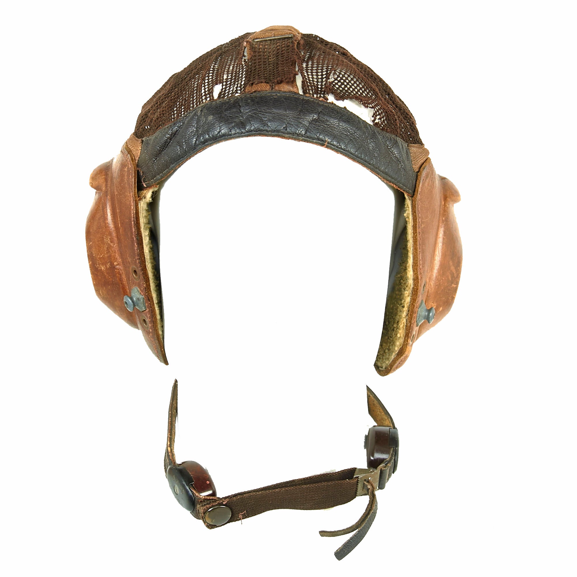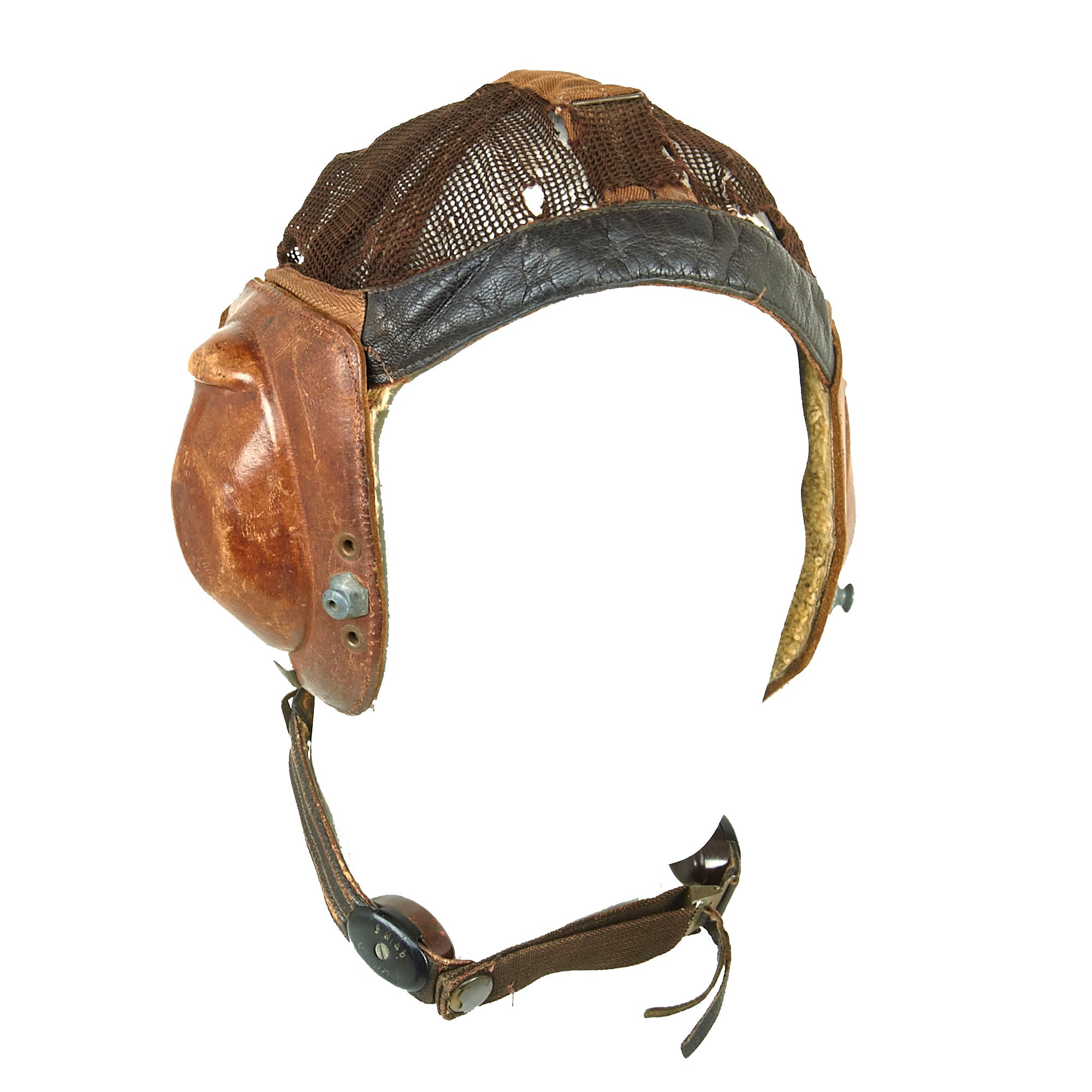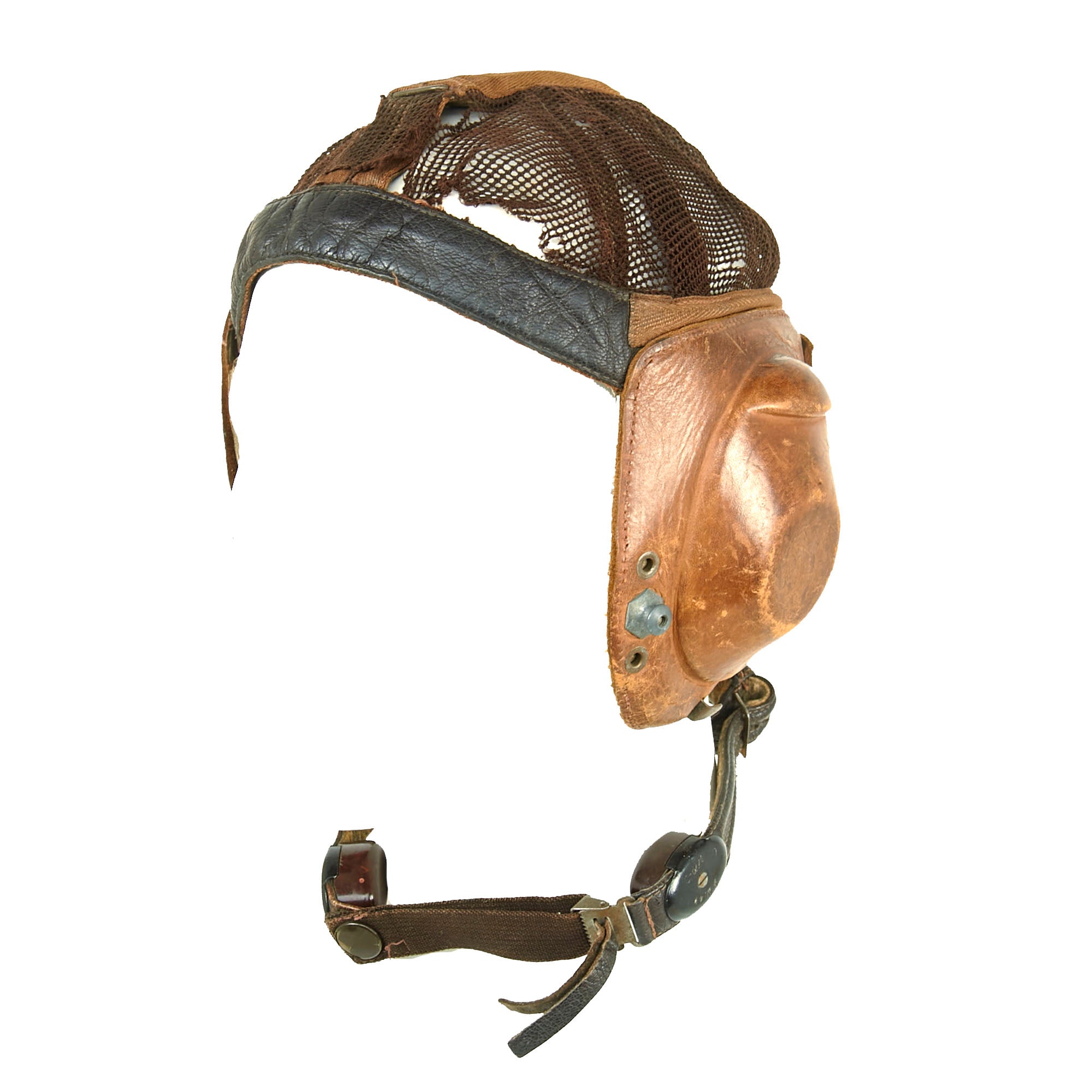 Original Item: Only One Available. The famous net-top helmet proved popular with Luftwaffe pilots as it was designed for comfort and without the restriction of a chinstrap. This classic mesh flying helmet which has become synonymous with Luftwaffe fighter pilots in WW2. This example has a manufacturers label coded hdc indicating it was produced by the firm of Luftfahrtgeraetewerk Hakenfelde GmbH, Berlin-Spandau. Overall condition is good with some tearing in the net as shown. This example includes the original Avionics.