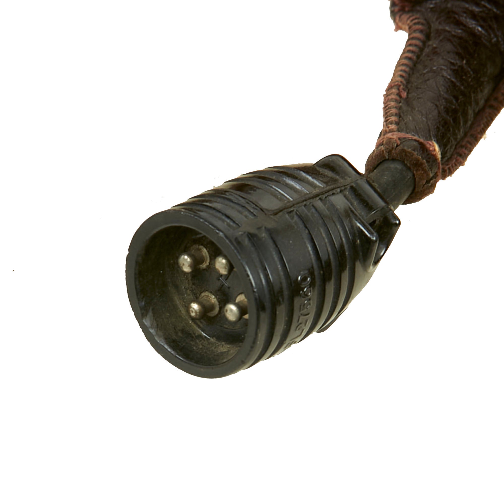 The throat microphones are marked Mi4b and Ln 26779-2 meaning the avionics are comprised of oval Mi4b magnetic type throat microphones with four-pole break coupling/plug. The helmet carries the short communication cord favored by fighter pilots and is fitted with a plug that is nicely marked BLK v F 127560.