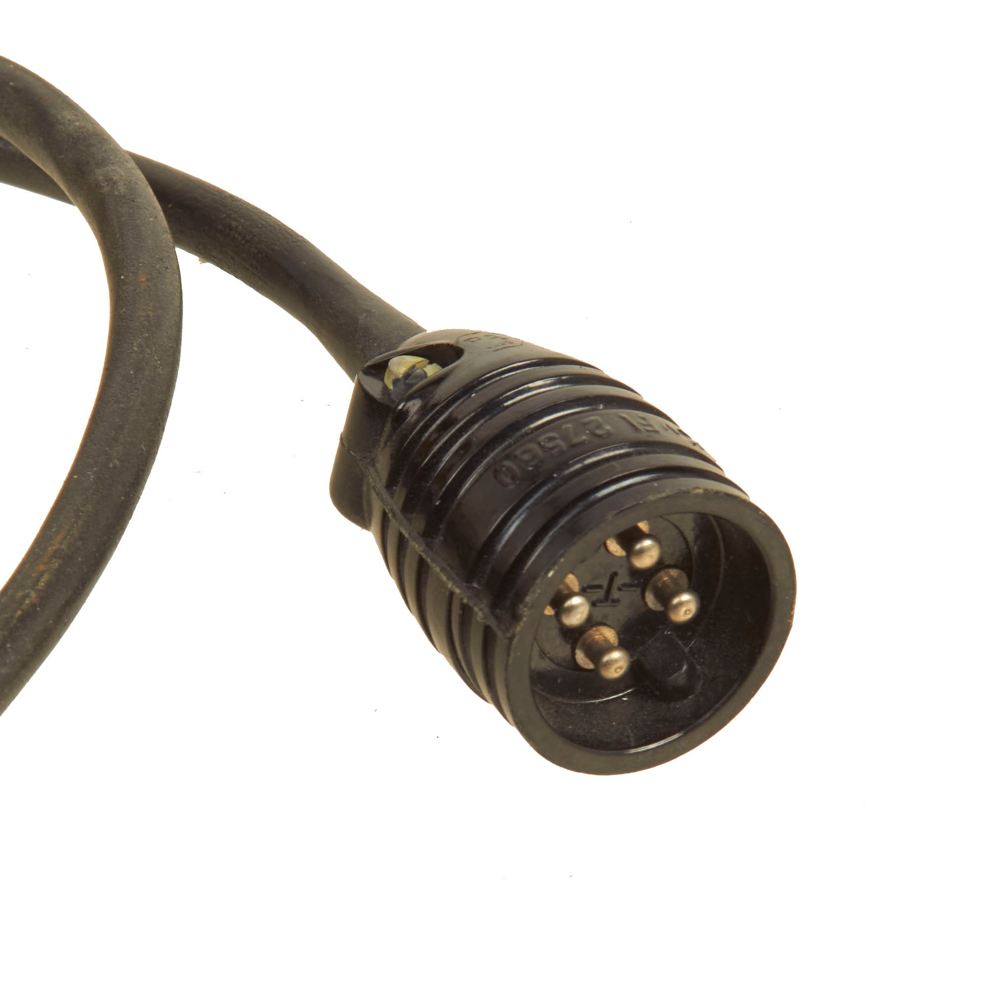 The throat microphones are marked Mi4c and Ln 26779-3 meaning the avionics are comprised of round Mi4c magnetic type throat microphones with four-pole break coupling/plug. Both are also marked with the bxo three letter code of DeTeWe. It carries the short communication cord favored by fighter pilots and is fitted with a plug that is nicely marked BLK v Fl 27560.