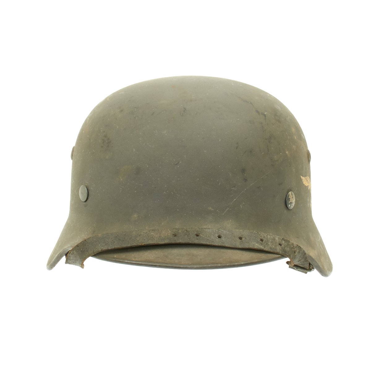 Overall an incredibly clean and crisp 100% genuine M35 Single Decal Luftwaffe helmet! M35 helmets of this quality are always the hardest to find on the market. This is an item that will only continue to appreciate in value over time.