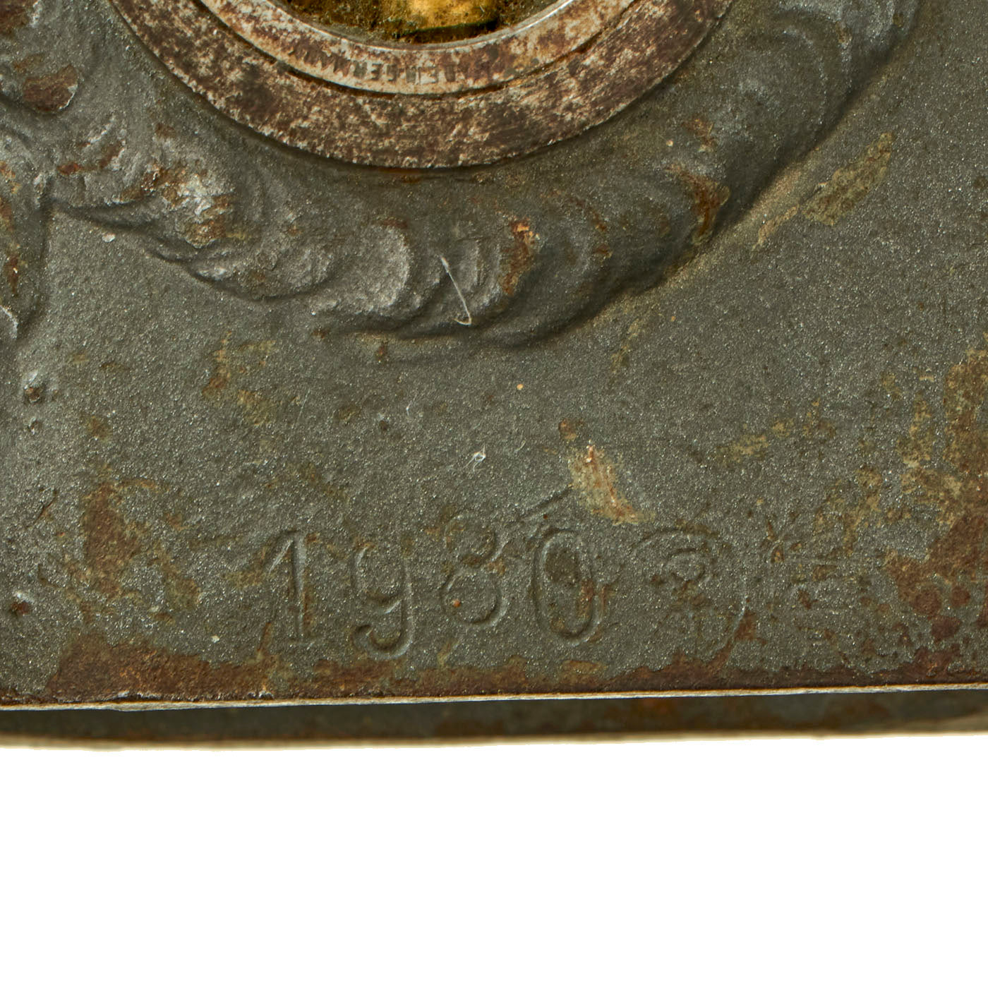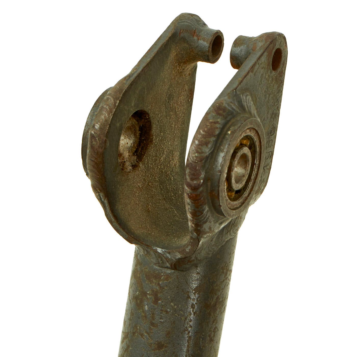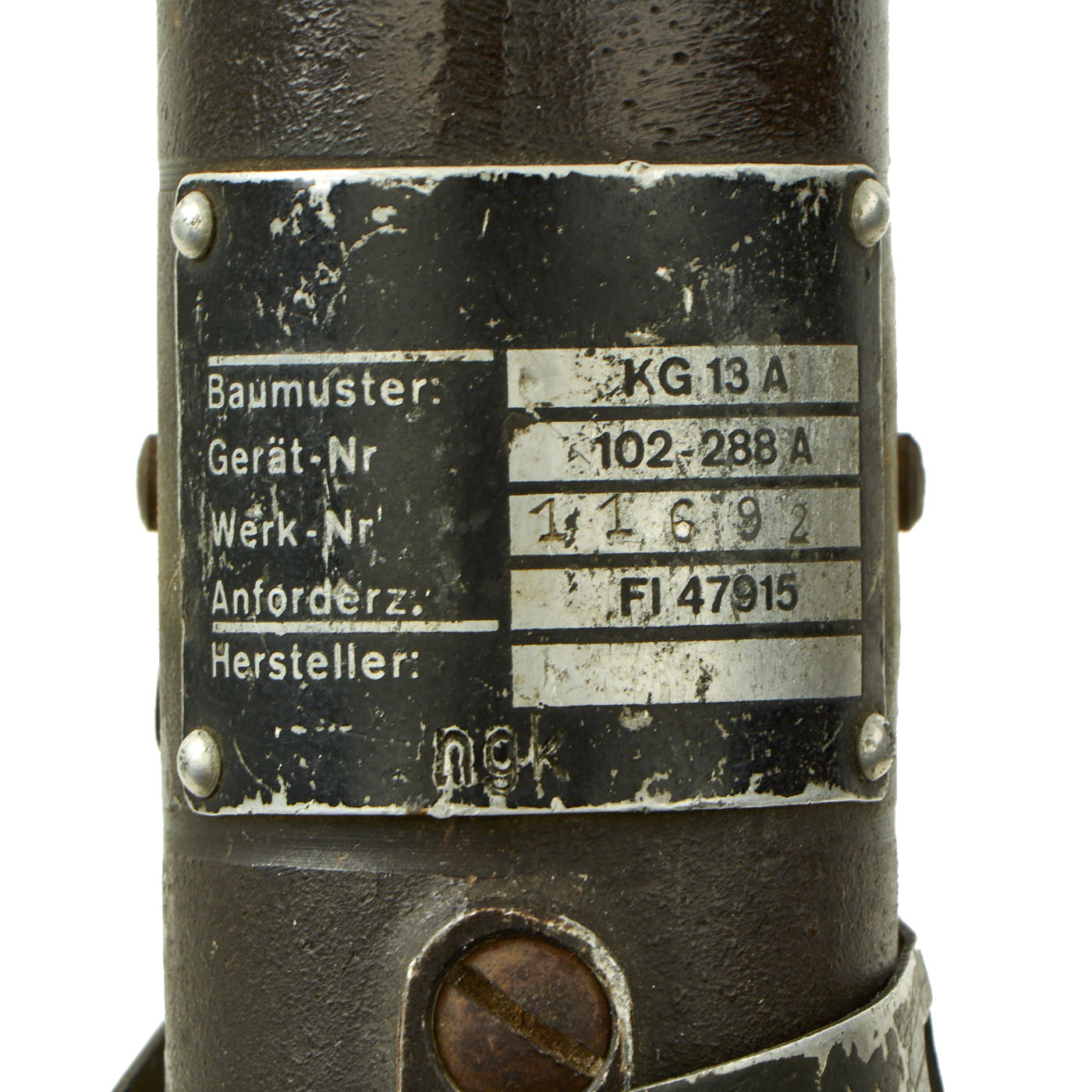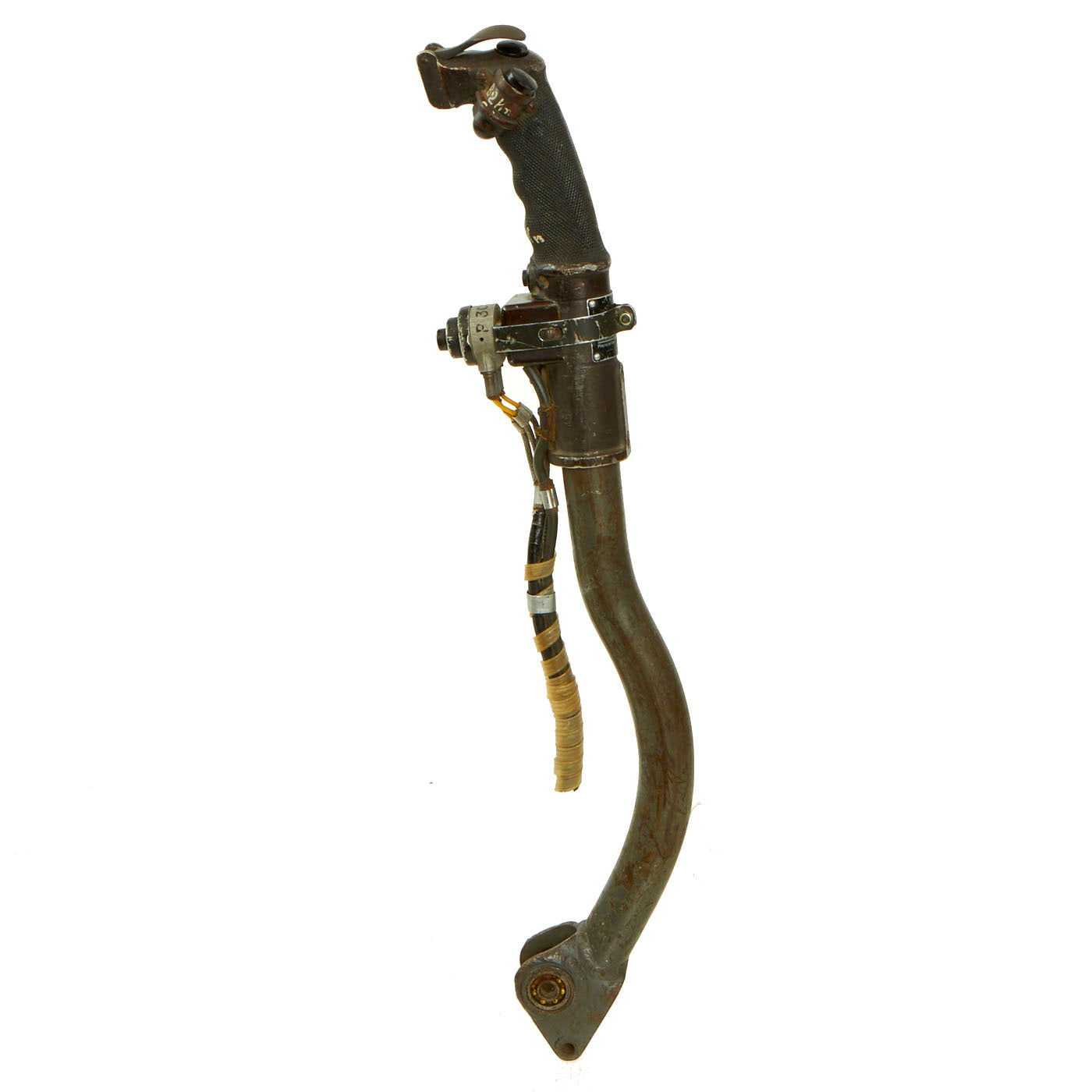 This is an incredibly rare Messerschmitt Bf 109 Control Stick, complete with machine gun flip down trigger! This particular KG13 A was produced by Luftfahrt-Apparatebau GmbH (which also produced various instruments for the Luftwaffe) in Berlin as indicated by three letter code ngk. The Geräte-Nummer is 102-288 A. The letter "A" was stamped into the data plate and was the designation for the sub-type of the KG13, obviously the KG13A. A KG13A had an "A" instead of an "E" but the same Fl-number. Fl.-Nr. is 47915. The KG13A didn't has a so-called B2-button which the earlier KG12 did not have. There was only the top trigger and push button. Some early Me 109 had an additional button at the top attached by a clip or strap that was used for dropping bombs which is present on this example! The KG13A was used by multiple airplanes including the Me 109 E, Ju 87 B and other aircraft. This example is offered in excellent condition. It measures 25 inches tall and is still mounted on the “stick”.