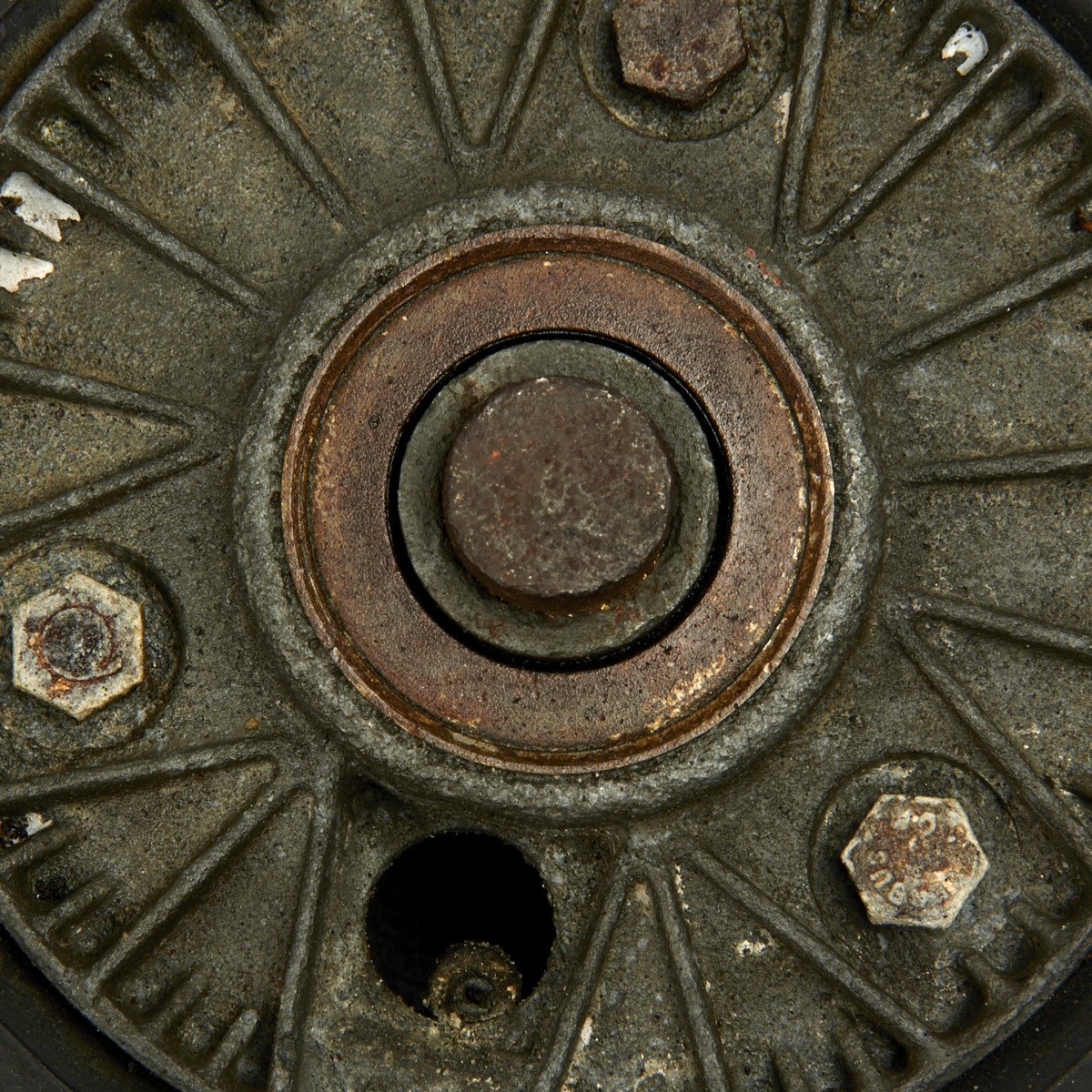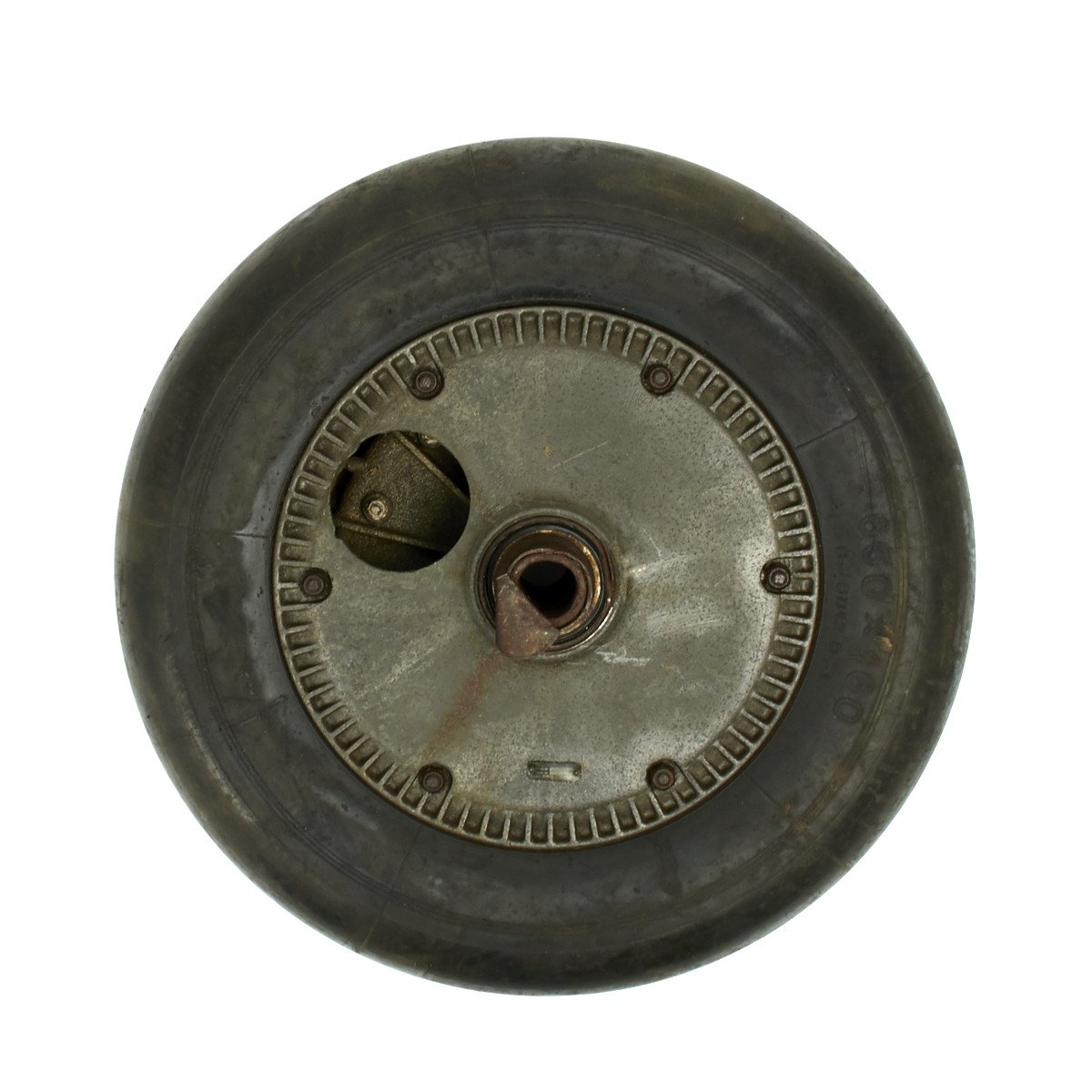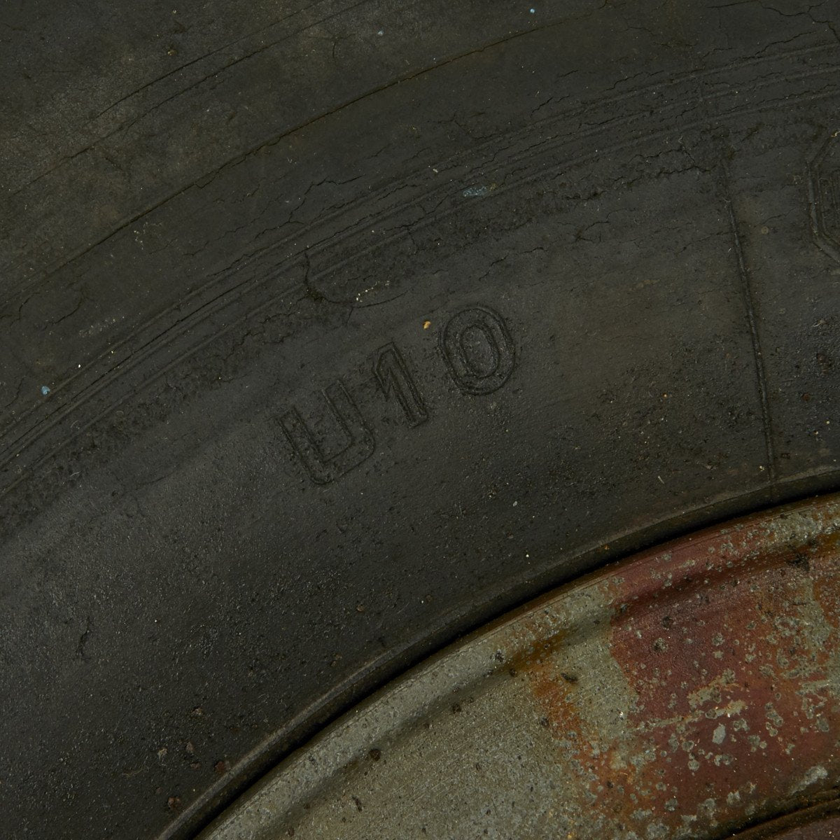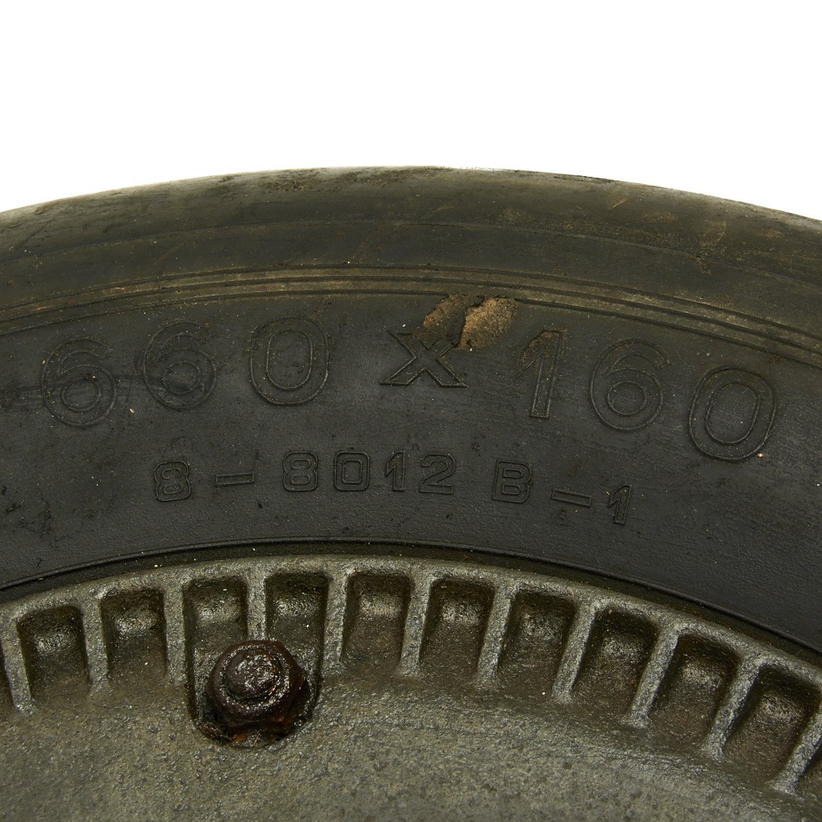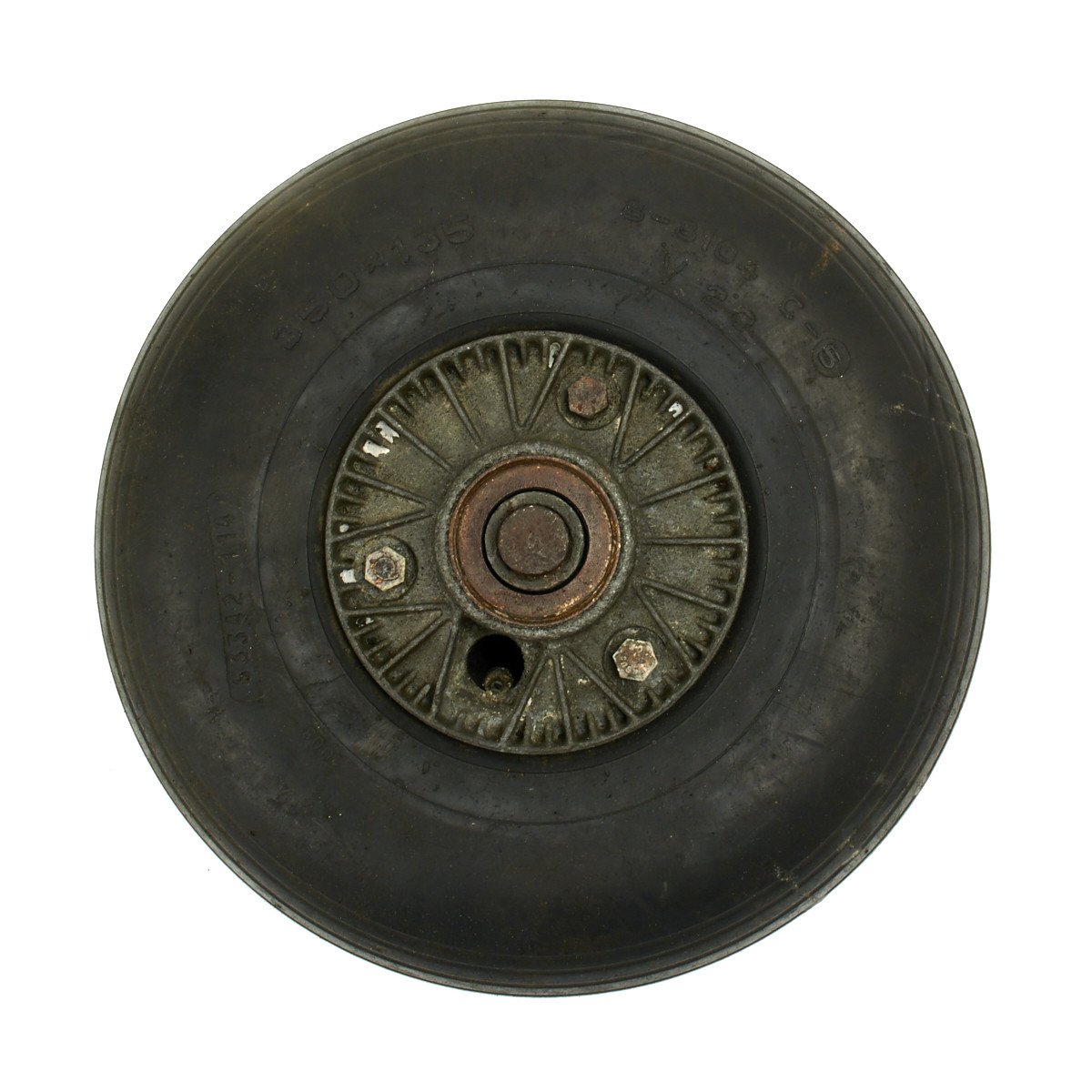 This is a set of 2 wheels, front and rear, complete with rims and original rubber tires. The large where has approximately a 25 diameter and the small has approximately a 13 diameter. They are both marked nicely as follows: