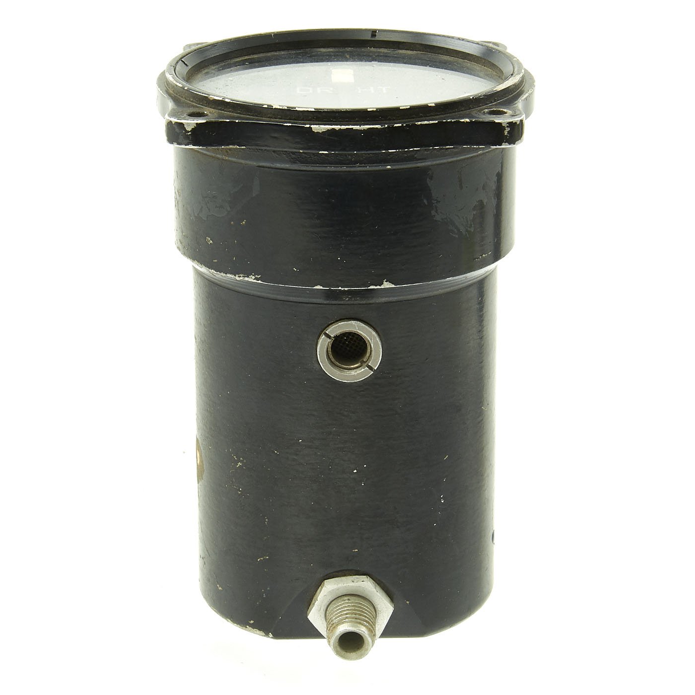 Condition is very good, and it has a data plate on the side with all of the manufacturer and contract information. The glass is in great shape, and there is no damage of any type that we can see. In addition to the Me 109, this instrument was also used in the WWII-era Luftwaffe aircraft Me-110, and Ju-87, as well as others.