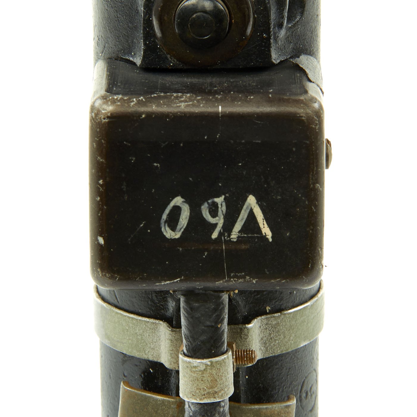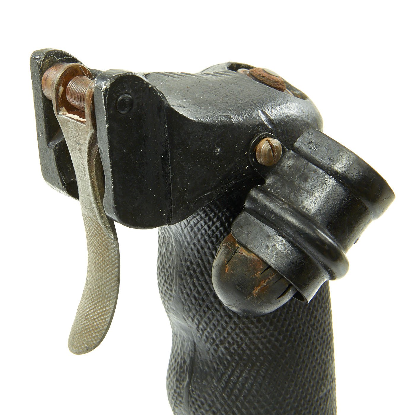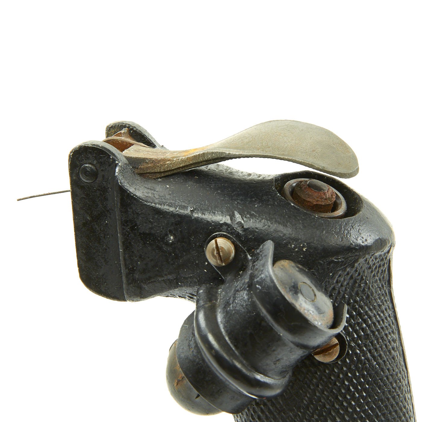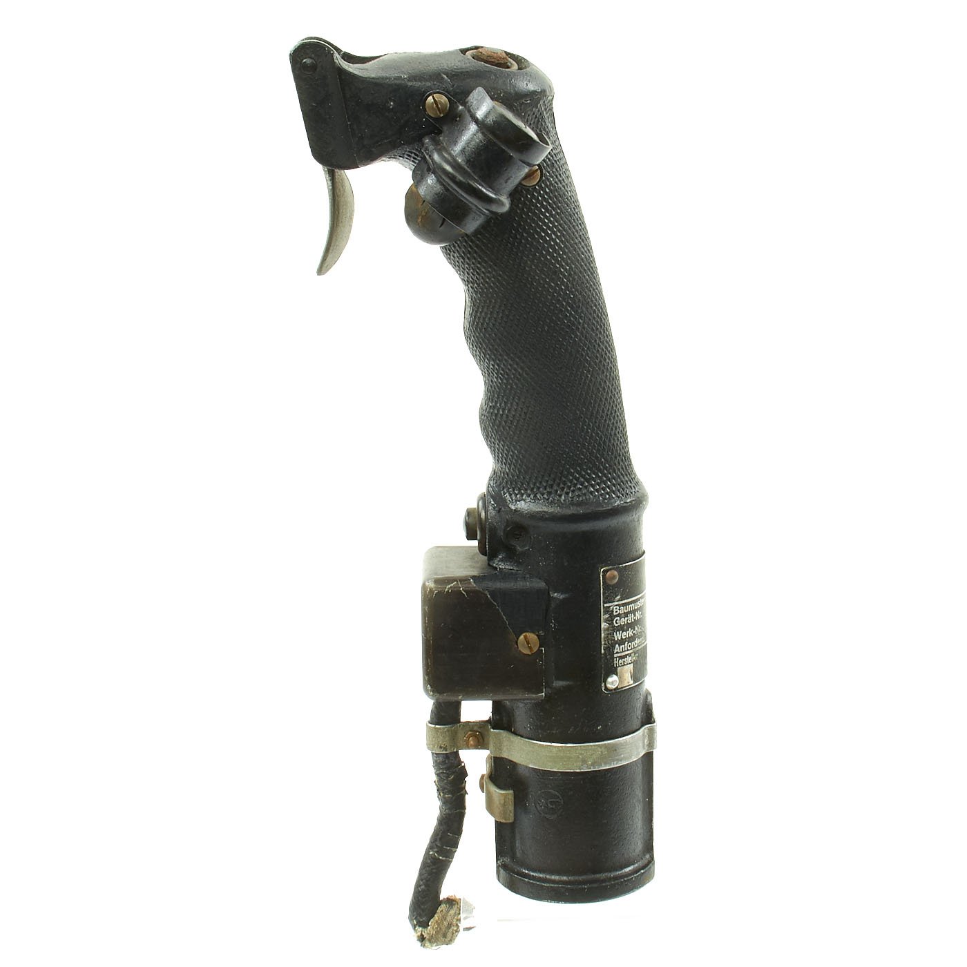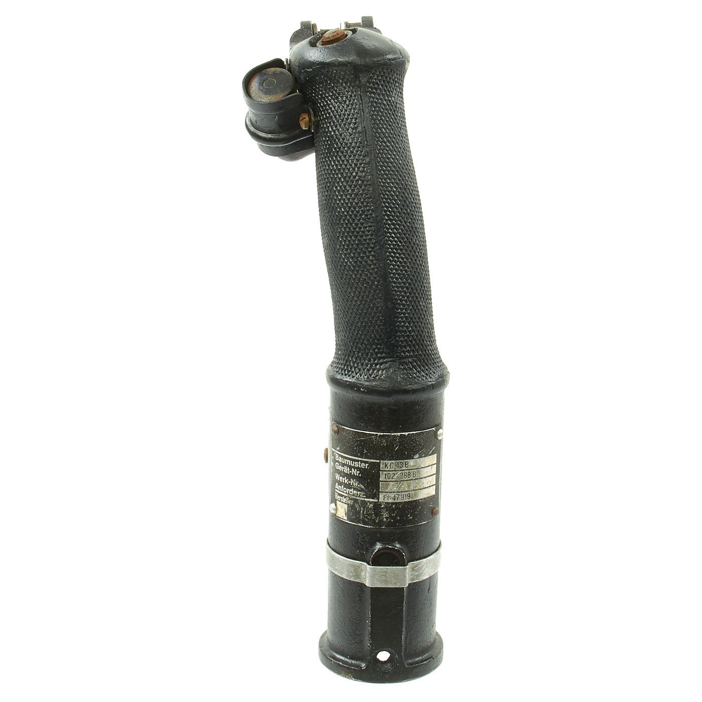 Original Item: Only One Available. This is an incredibly rare Messerschmitt Bf 109 Control Stick, complete with machine gun flip down trigger! This particular model is a KG13B. The Gerat-Nummer is 102-288 B. The letter "B" was stamped into the data plate and was the designation for the sub-type of the KG13, obviously the KG13B. There is also a B.A. stamp (Bauaufsicht Luftwaffe) that shows that it went through Luftwaffe quality control. Fl.-Nr. 47919. Features a B2-button which the KG13 has at the top left, plus a top trigger and push button. The KG13B was used multiple airplanes including the Me 109 E, Ju 87 B and other aircraft. This example is offered in excellent condition. It measures 10.25 inches tall. A truly rare and wonderful piece of WW2 aviation history!
