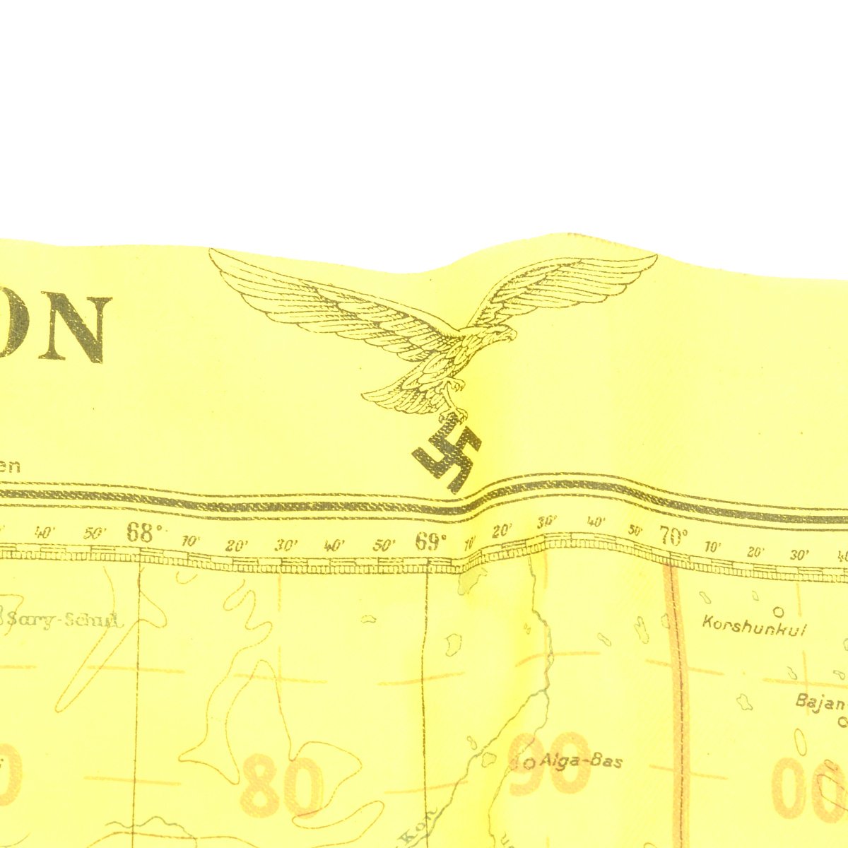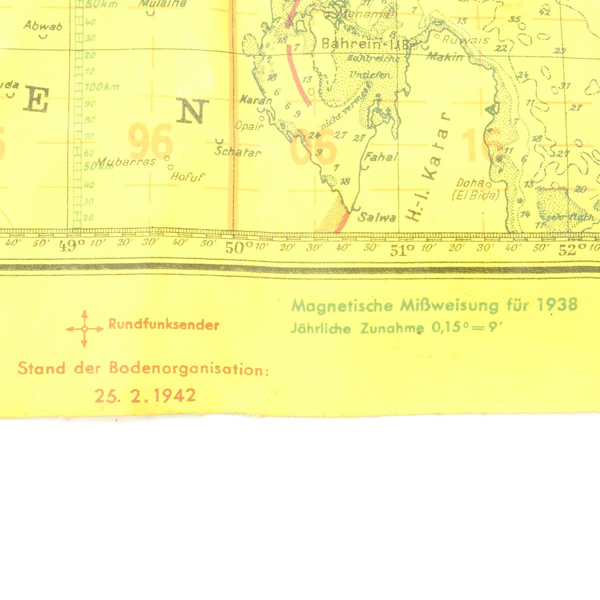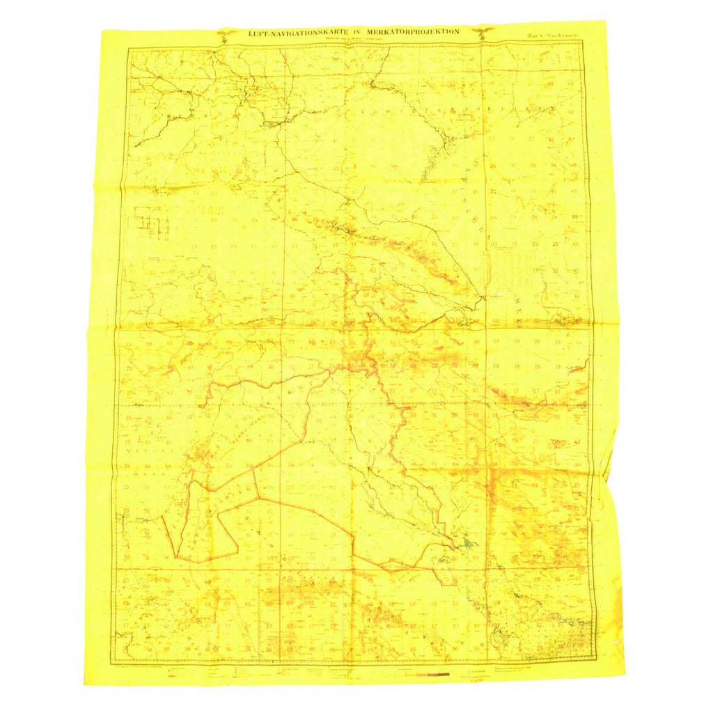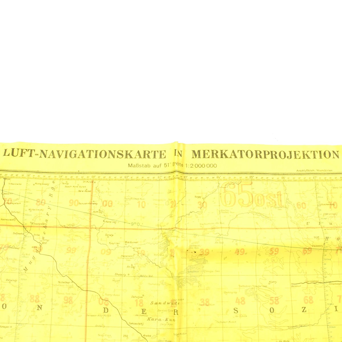 This is a wonderful waterproof map with Luftwaffe Eagle and Luft-Navigationskarte in Mercatorprojektion across the top. This double sided map is of the Middle East including Palestine and Turkey and of South Eastern Russia and the Ukraine.